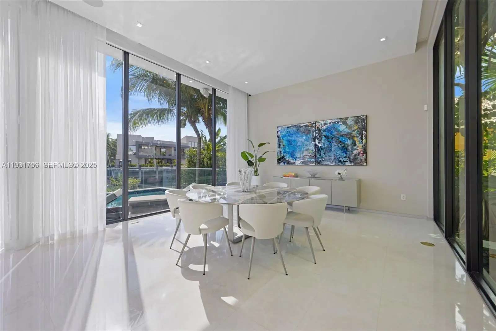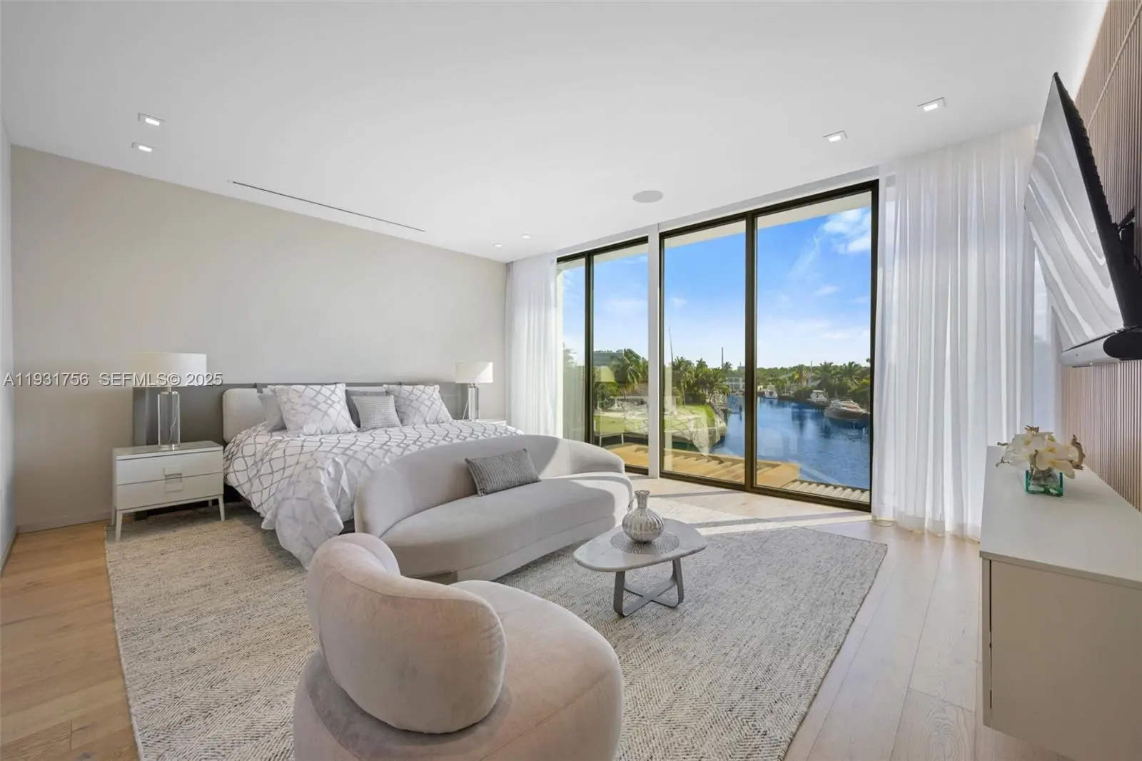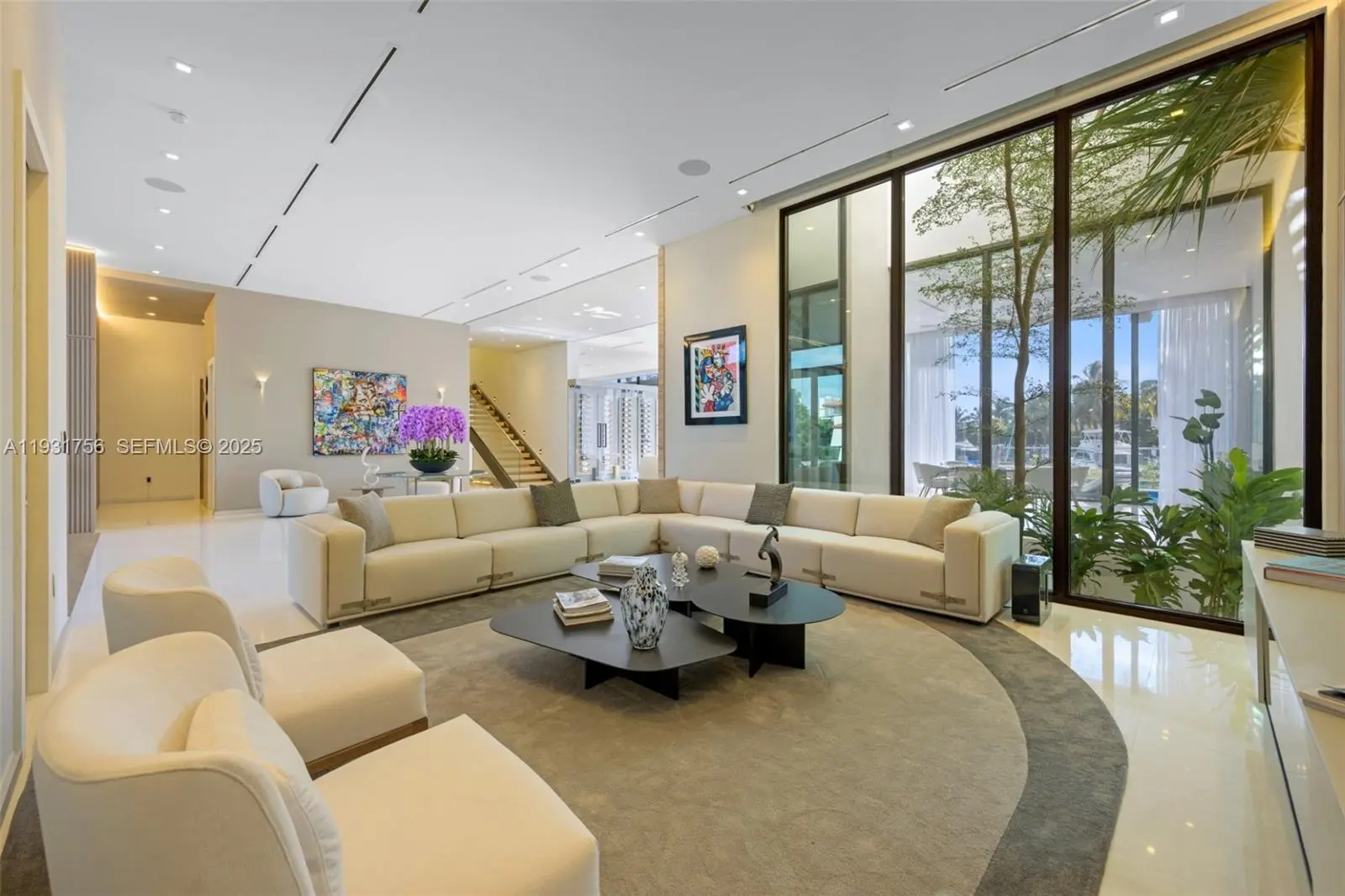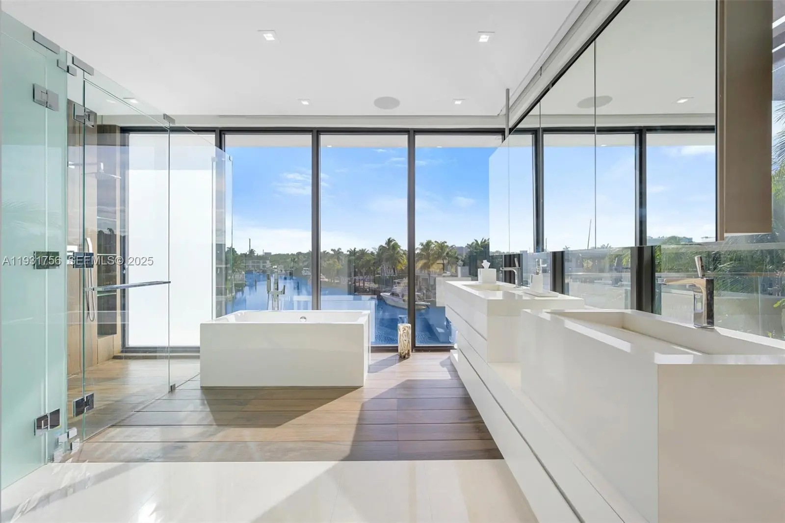 Introducing a rare ultra-luxury waterfront home within the gated Eastern Shores community. This fully furnished Artefacto-designed property offers four bedrooms and four and a half bathrooms, plus maid’s quarters with a full bathroom, across approximately 5,500 SF of refined modern living space. Dramatic 14-foot ceilings, elegant marble flooring, and private elevator access define the residence, enhanced by a glass-enclosed wine display and custom bar. The home is equipped with advanced smart home technology and a whole-home SONOS audio system for seamless living and entertainment. The primary suite is a private haven, featuring a spa-style bathroom, outdoor sauna, and private balcony. Thoughtfully designed bathrooms include premium smart toilets throughout. Designed for effortless indoor-outdoor living, the property showcases a rooftop terrace with sweeping water views, a resort-style pool, and a fully equipped summer kitchen ideal for entertaining. An 80-foot private dock provides direct access to the Intracoastal and Atlantic Ocean. Offered turnkey and impeccably furnished, this is an exceptional opportunity to experience elevated waterfront living.