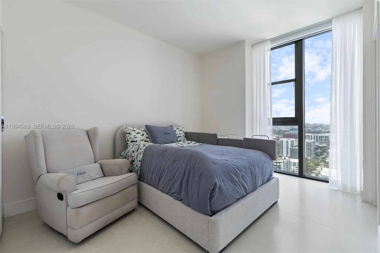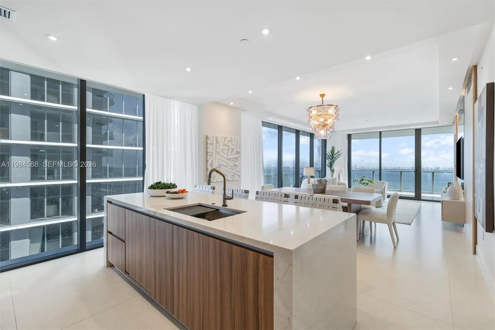 Newly delivered and completely renovated 4-bedroom + den, 5.5-bath northeast corner residence at Aria Reserve South on the 32nd floor with forever unobstructed Biscayne Bay and ocean views from an expansive terrace. The only fully renovated residence of its kind in the building, featuring brand-new custom imported flooring and a custom PEDINI chef’s kitchen with premium Thermador appliances and quartzite countertops, complemented by custom doors, millwork, motorized window treatments, wallpaper, and built-out closets throughout. Every detail considered, no expense spared. All bedrooms feature redesigned en-suite bathrooms, while the primary suite includes dual sinks and an oversized walk-in closet. The residence also includes a private elevator entry with foyer, service entrance with storage, and a den. Residents enjoy 2 acres of world-class amenities, including 3 pools, sauna, steam and massage rooms, fitness center, game room, children's room, conference center, putting green, and sport courts for tennis, basketball, and pickleball. Prime Edgewater location near Margaret Pace Park with easy access to Miami Beach and Downtown.