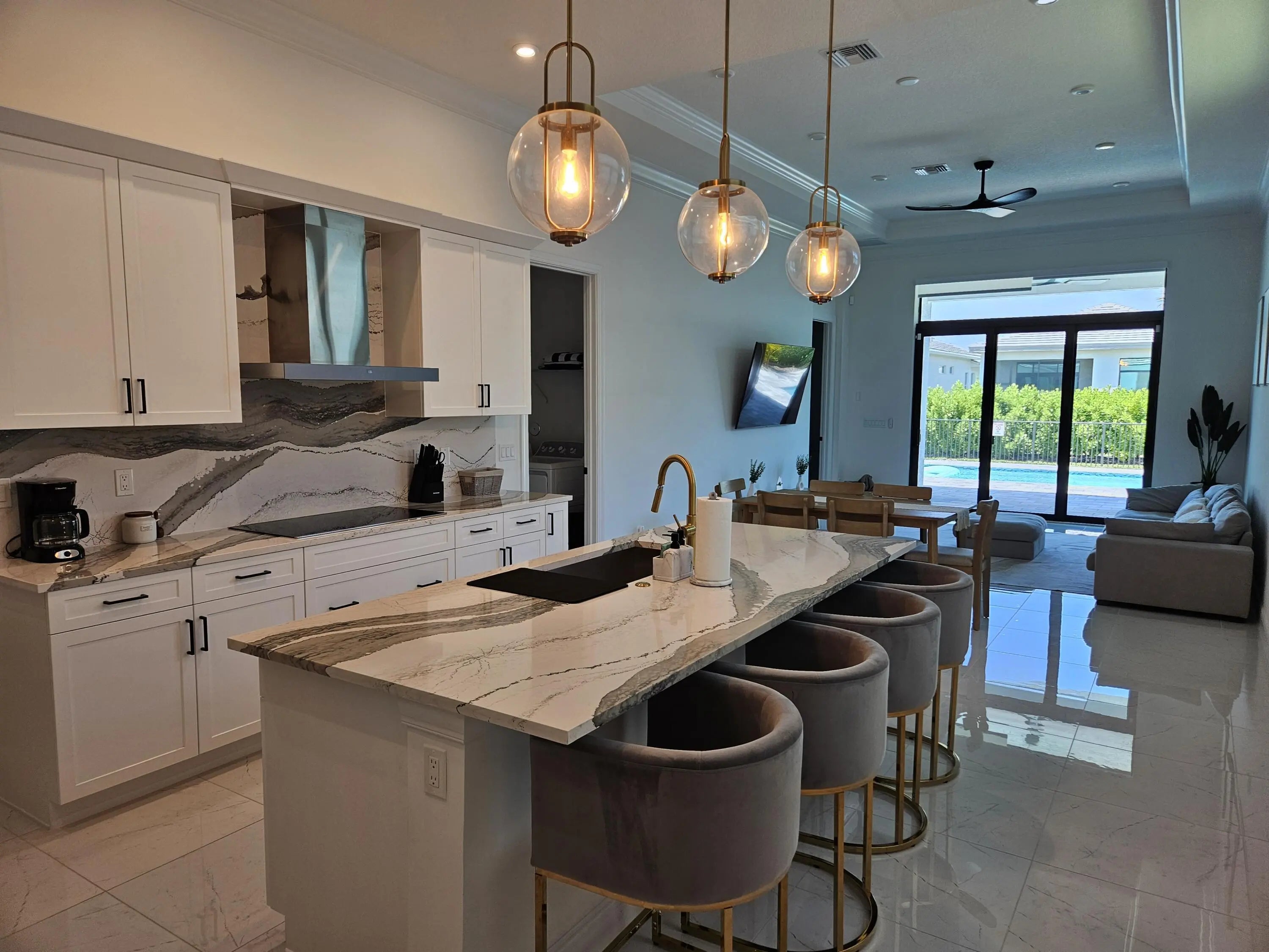 Enjoy life to the fullest in this beautiful 3 bed, plus den-office home fully furnished and equipped with soaring ceilings, bright and airy with open kitchen, porcelain tile throughout, no carpets, laundry inside, epoxy flooring in the garage. This home offers all hurricane impact glass windows, sliders and doors and has a fenced backyard with a private pool! All-inclusive resort amenities in PGA Verano Club Talavera, state of the art fitness center, aerobics studio, sauna & indoor heated Jr Olympic pool/spa. Incredible pickleball community w 27 pickleball courts! Five Har Tru tennis courts, 2 bocce & basketball. Lounge at the gorgeous pool w/ covered lounge & private cabanas, or swim laps in the resistance pool & enjoy the incredible fitness