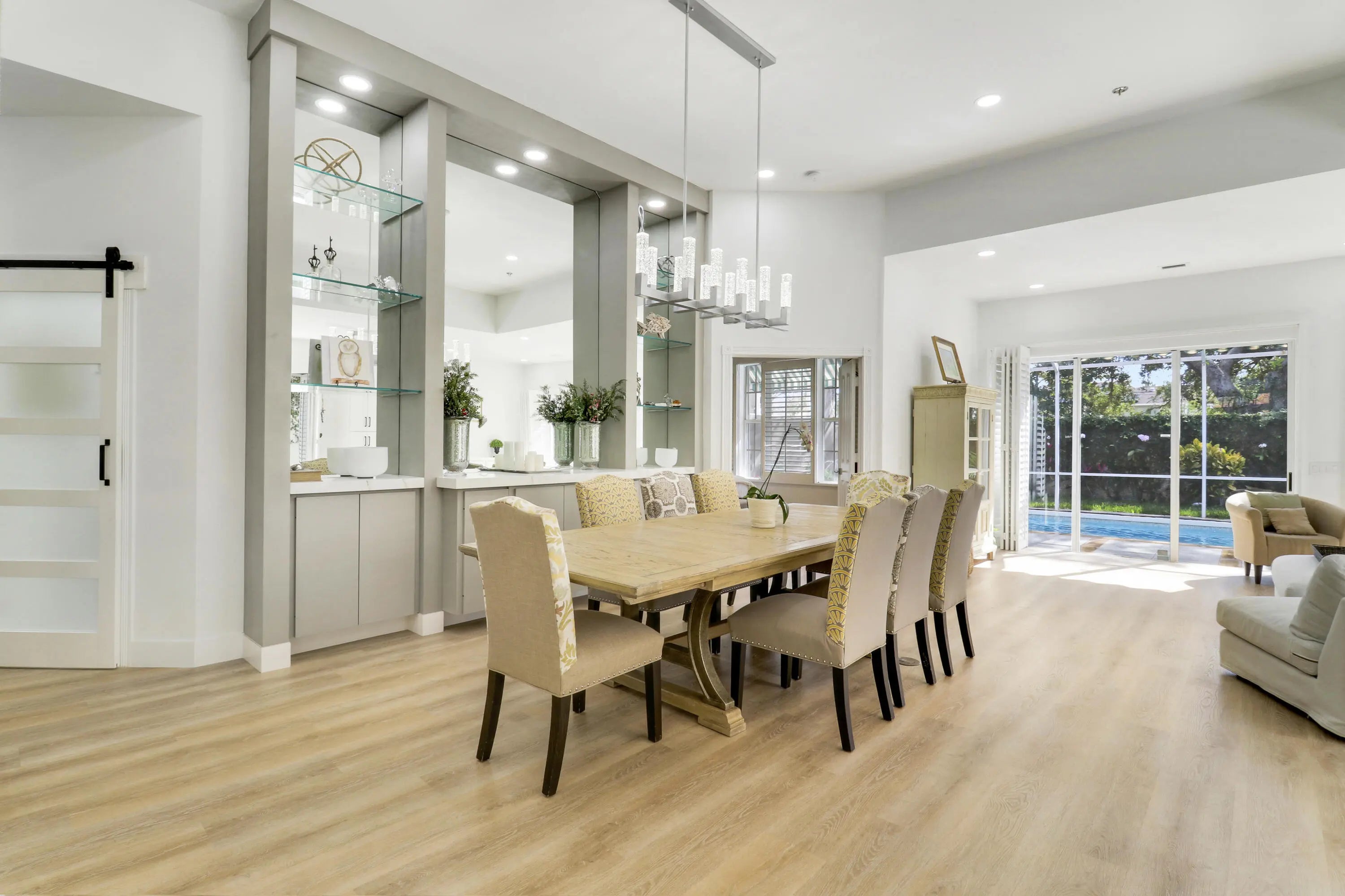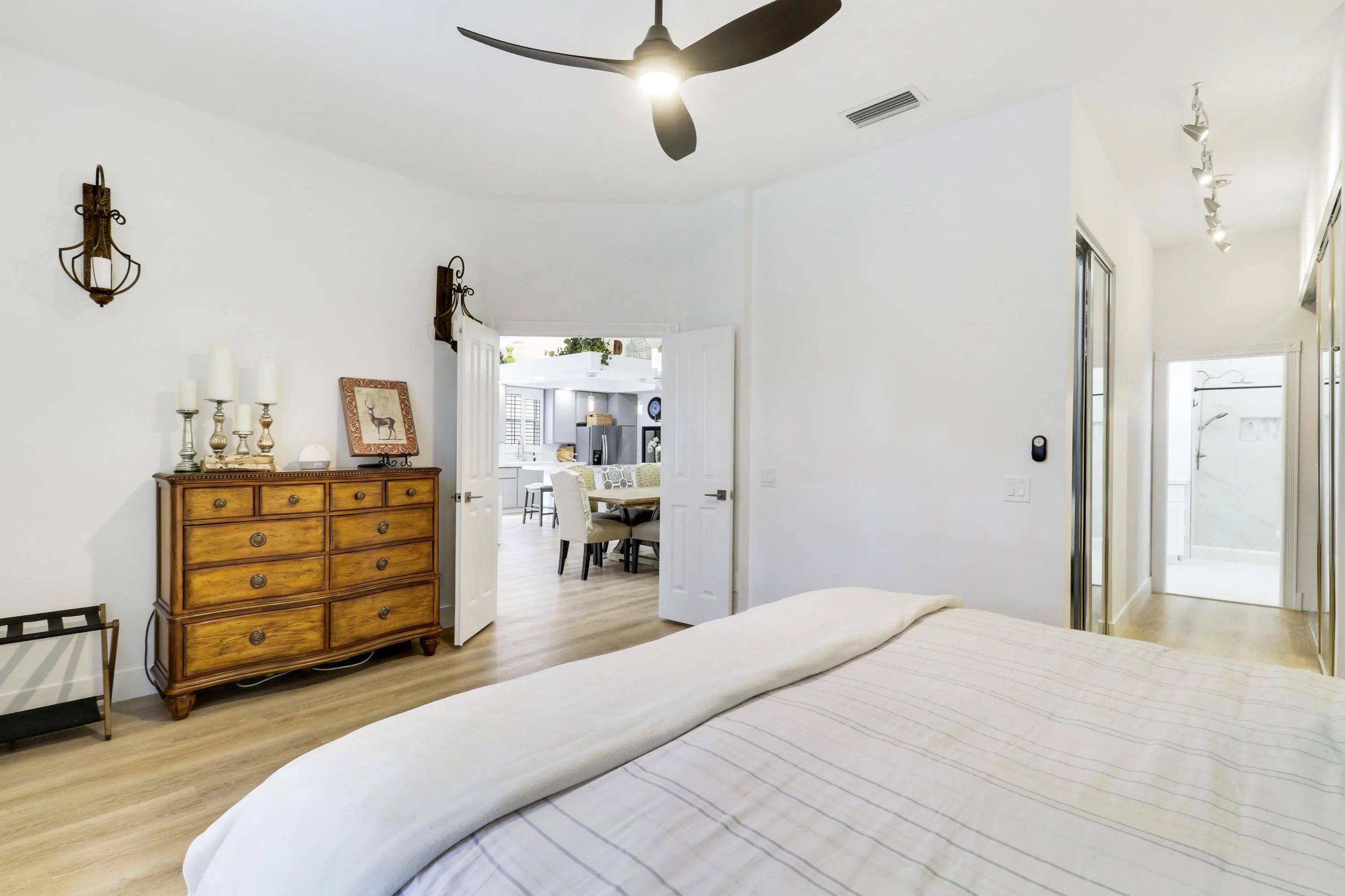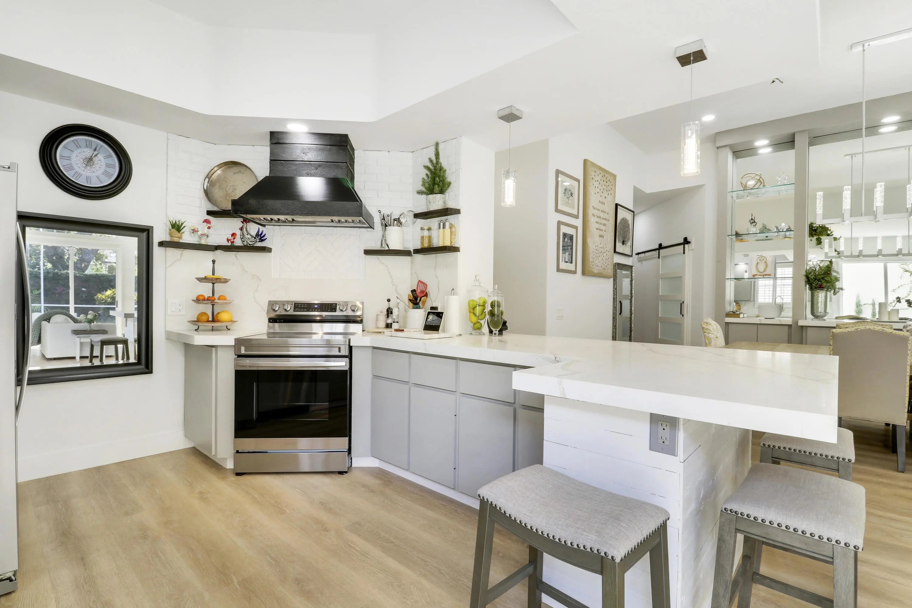 RARE 4-bedroom, 3 Full Bath, Fully renovated single-story home in Oaks East community of Palm Beach Gardens. Home features a 2021 Roof, 2024 AC, contemporary open-concept design with modern flooring, soaring 12.5' ceilings, and a chef's kitchen with stainless steel appliances, quartz countertops, and pendant lighting. PETS ALLOWED! Private backyard offers a resort-style swimming pool ideal for year-round enjoyment. UPGRADES: 2024 A/C system with new vents/returns for improved airflow, dual-bulb UV and peroxide air purification system, 2025 tankless water heater. Truly move-in ready and a must see. Gardens Mall, Palm Beach State College within 2 miles. Enjoy Oaks Park nearby with walking paths and tennis courts.