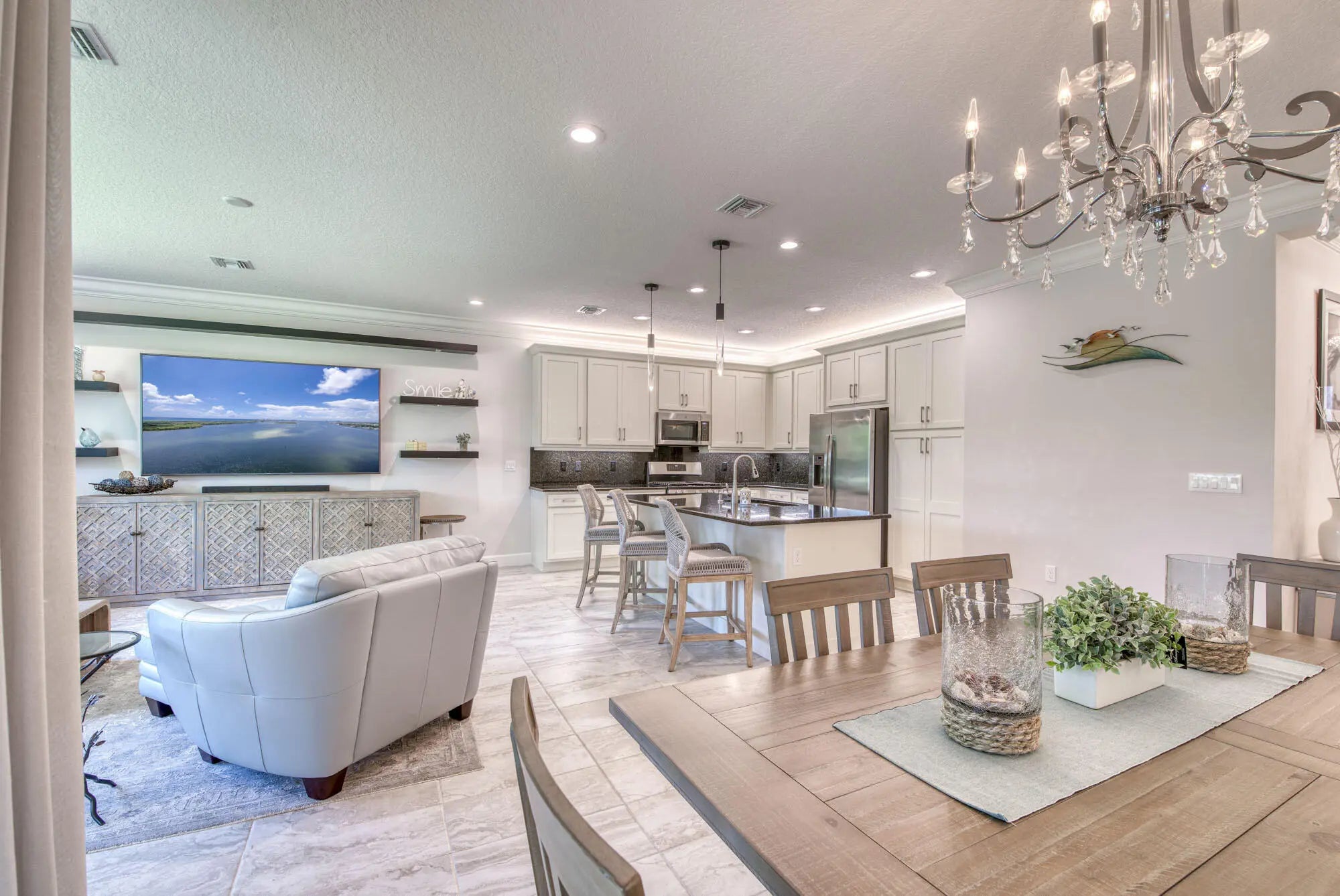 Excellent opportunity to rent in the resort style 55+ community, Valencia Cay at Riverland. Enjoy countless upgrades in this Heron model home with 2BD, 2BA and a flex room. The open concept kitchen has upgraded cabinetry, spacious island, gas range, granite countertops and matching backsplash. The spacious primary suite has a walk-in closet and an en-suite bathroom has custom painted walls with dual vanities and walk-in shower with decorative tile. Offered furnished. Residents enjoy a 34,000sqft club house with a resort style pool, arts and cultural center, state-of-the-art fitness center and so much more. The Lifestyle Director will keep your social calendar full with activities designed for active adults, 55 & better.