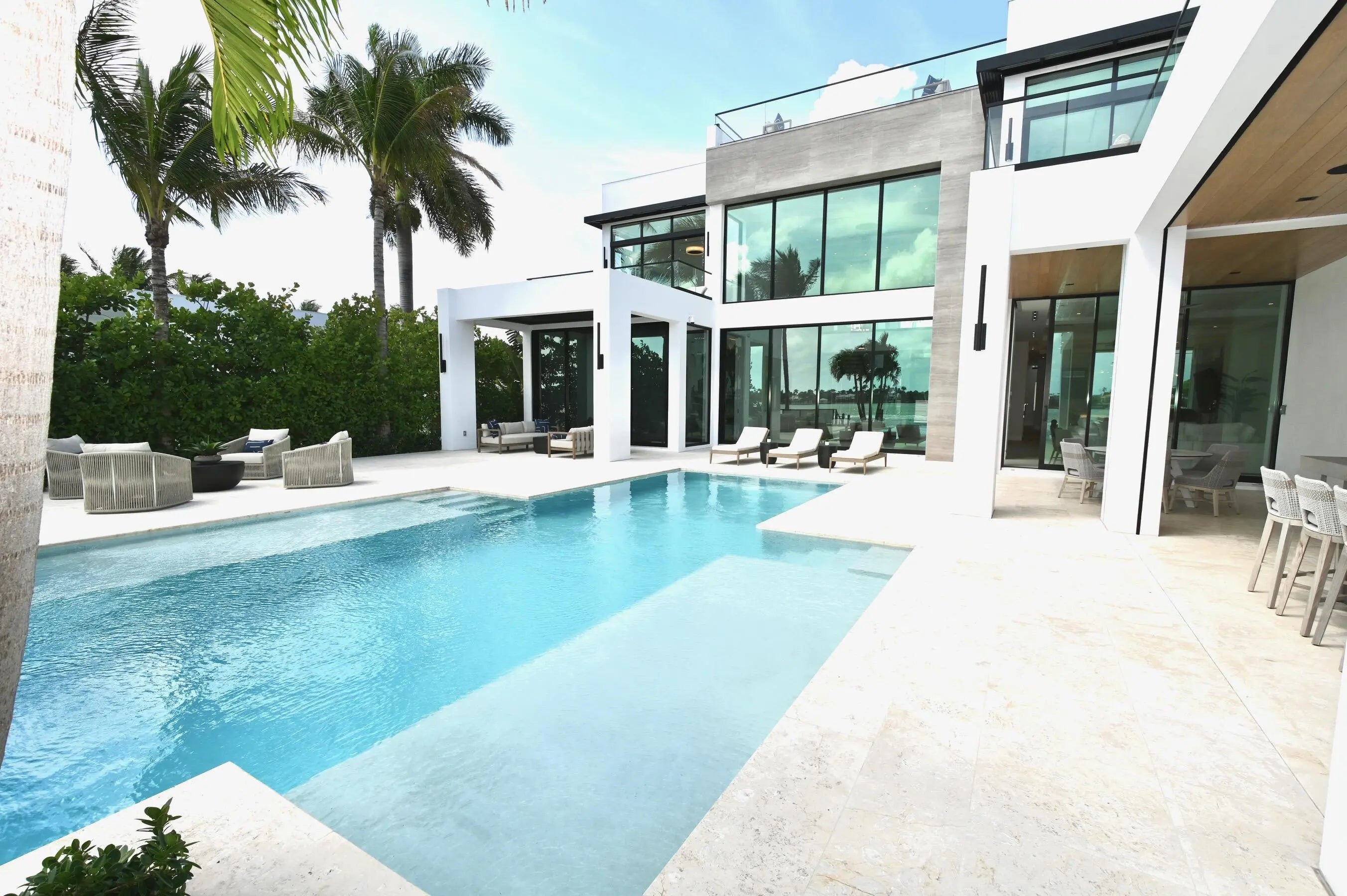 Spectacular new modern waterfront estate on the Intracoastal in West Palm Beach. Designed by architect David Lawrence, this 2024-built residence offers 12,730 total SF with 8,540 SF under air, featuring 7 bedrooms, 8 full baths, 2 half baths, elevator, 40' saltwater pool, spa, rooftop decks, fire pits, and summer kitchen. Elevated 10' above sea level on a 20,000 SF lot with 80' of direct waterfront, dock with 50k lb lift, no fixed bridges, and ocean access. Chef's kitchen, multiple living areas, media room, sauna, and in-law suite. Impact glass, 150KW whole-house generator, 3-car garage, and security system. No HOA. Minutes to beaches, Palm Beach Island, The Square, and PBI. A true Intracoastal showpiece.