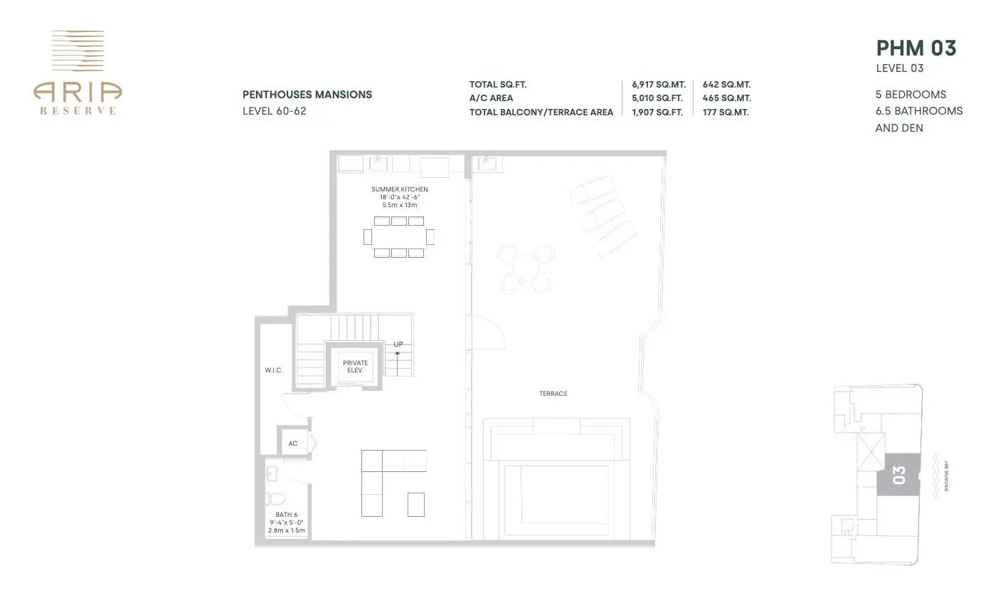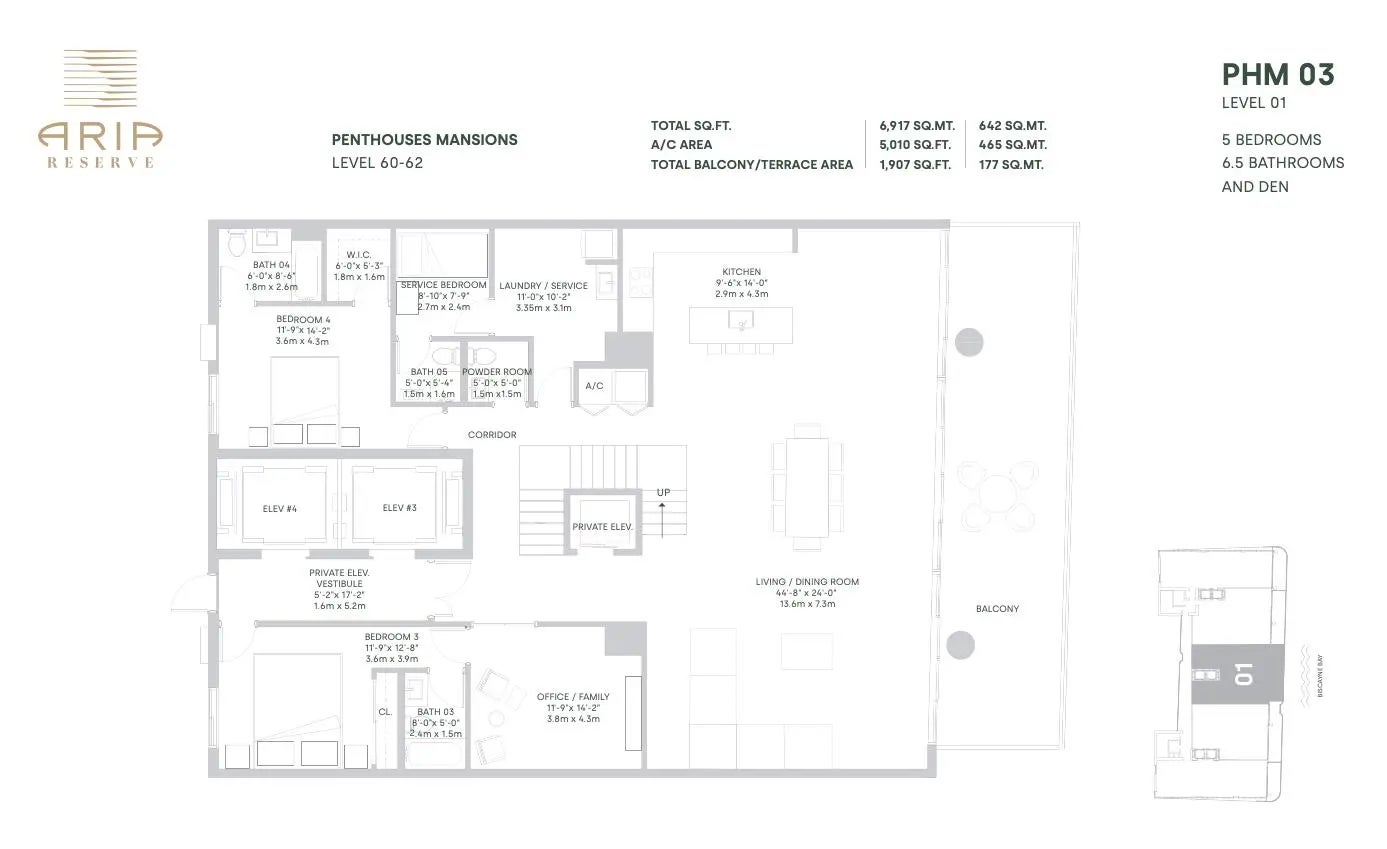 The Top Floor Penthouse! A Signature Landmark Soaring Above It All. One of the exclusive Penthouse Mansions, this rare three-story residence spans floors 60 through 62, crowning Aria Reserve South with an unmatched vantage point over Miami's most iconic district. A true statement of elevated living, it delivers panoramic views, soaring volume, and a level of prestige found only at the highest tier of Miami luxury. Offering a Private, air-conditioned 3-car garage and over 5,000 sq. ft. of refined interior living, 1,900+ sq. ft. of private outdoor space, and a sophisticated layout featuring 5 bedrooms, 6.5 bathrooms + a private den/office. Completed in 2025 and fully finished, the home showcases panoramic, unobstructed views of Biscayne Bay, the Atlantic Ocean, and the Miami skyline through dramatic floor-to-ceiling impact glass. A private elevator delivers you directly into your exclusive foyer no shared hallways setting the tone for a lifestyle centered on privacy and elegance. Expansive glass walls flood each level with natural light, while multiple terraces capture both sunrise and sunset from soaring heights. The crown jewel: a private rooftop level with its own pool, creating a one-of-a-kind sky retreat overlooking the entire city and coastline. Perfectly positioned at the heart of Miami, you're just:(" 3 minutes to Wynwood(" 4 minutes to the Design District / Midtown(" 5 minutes to Downtown Miami / Brickell(" 8 minutes to Miami Beach(" 15 minutes to Miami International Airport Set within more than 5 acres of waterfront reserve, Aria Reserve offers an amenity collection unlike anything in Miami:(" 547 linear feet of baywalk with paddleboard/kayak access and a custom water-sports marina(" Bayview café and a signature waterfront restaurant(" Sunrise + sunset pools, whirlpool spa, solarium decks, cabanas & poolside daybeds(" Exclusive adult lounge with bay-facing terrace(" Private wine room, business center, conference rooms & co-working suites(" State-of-the-art fitness center, tennis courts, paddle court, basketball, yoga lawn & outdoor training areas(" Luxury spa with massage rooms, sauna, steam, and relaxation lounges(" Kids' splash pad, dog park, theater room & meditation gardens(" Telescope observatory deck, fire-pit lounges & lush landscaped grounds(" 24-hour concierge, valet & package room Aria Reserve stands as the tallest waterfront dual-tower development in the United States, setting a new benchmark for ultra-luxury bayfront living with sweeping views, immersive nature, and an unparalleled amenity suite.