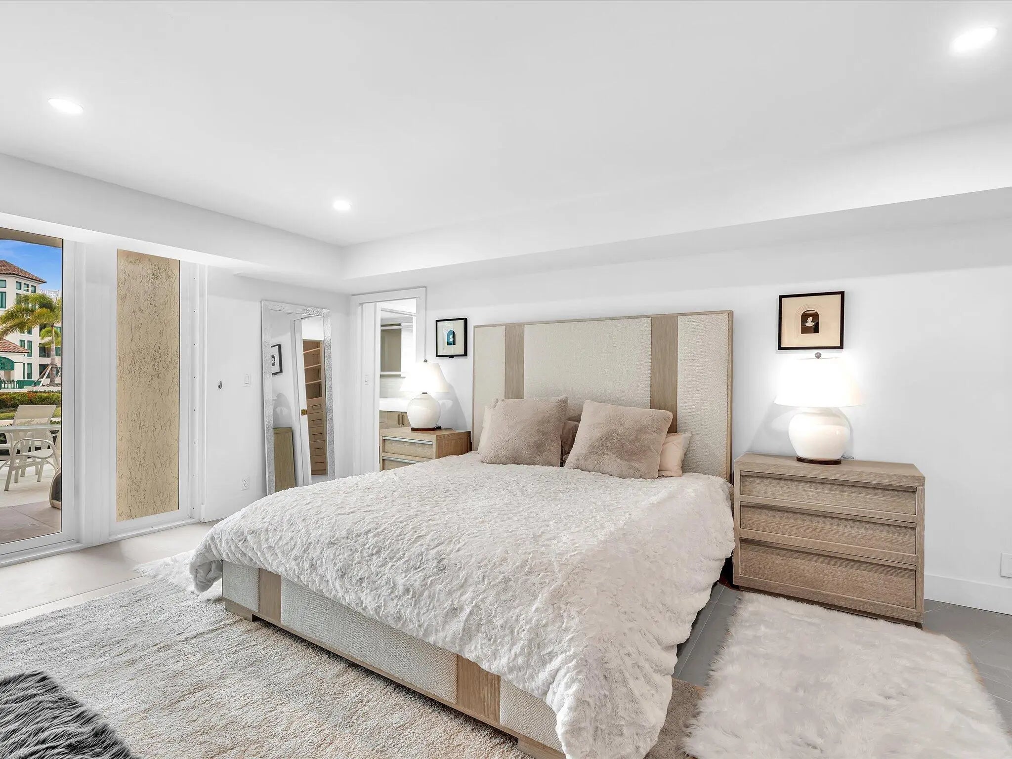 Welcome to luxury waterfront living in downtown Boca. This stunning 2-bedroom, 2-bath contemporary condo offers 1,700 sq. ft. of beautifully renovated space, blending modern elegance with comfort. With renovations just completed, this unit features high-end finishes and stylish updates with brand new bathrooms, Ceramic floors that flow throughout creating a sleek and cohesive aesthetic, and custom, walk-in closets that provide ample storage. Step outside onto your private patio just steps to the pool and ICW. This serene oasis is complemented by pool and waterfront views, easy access to the garden and pool area and beautiful sunrises. Walk to all the nightlife in downtown Boca with restaurants and shops only minutes away.