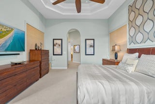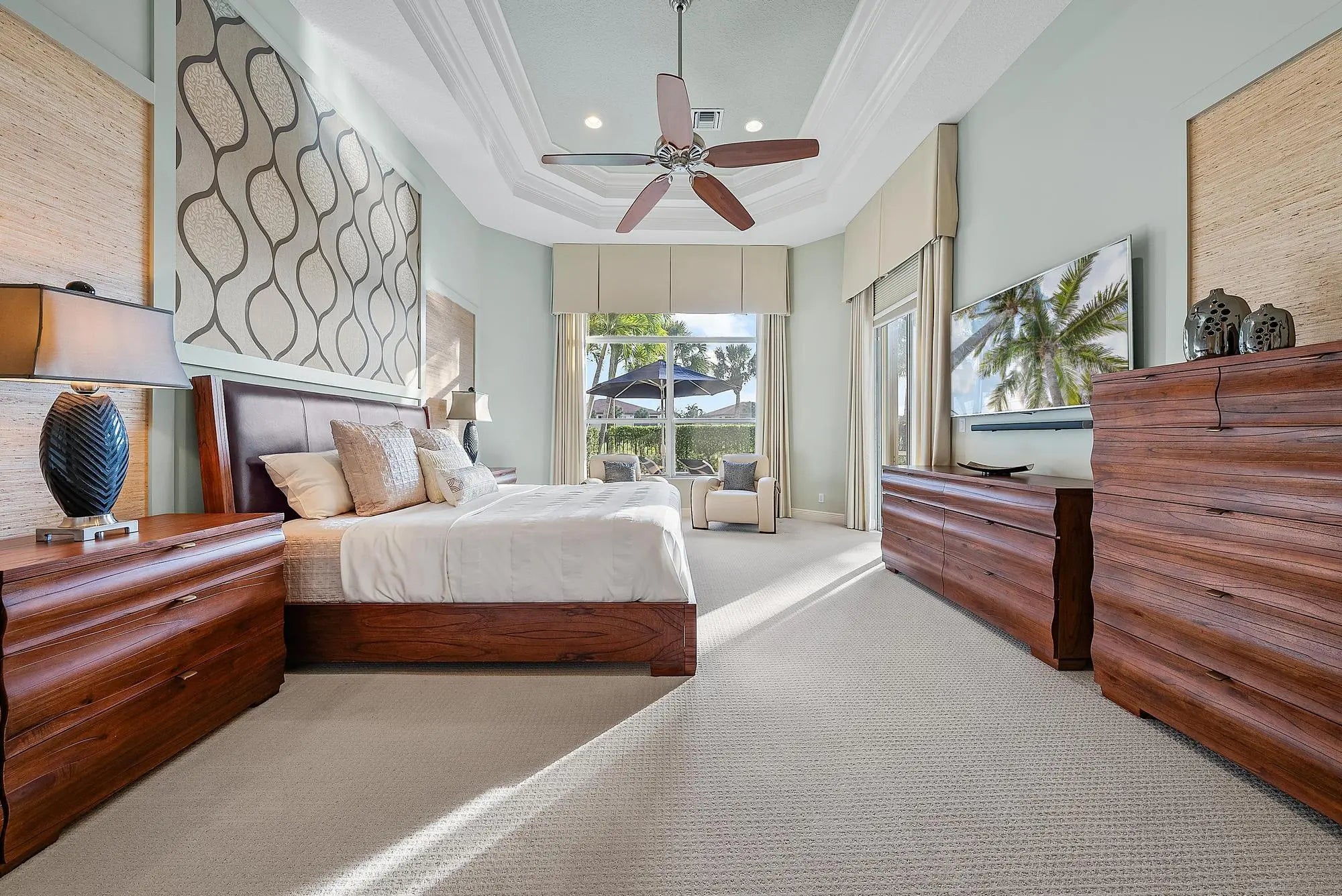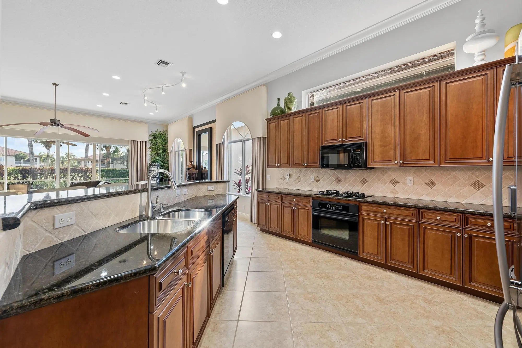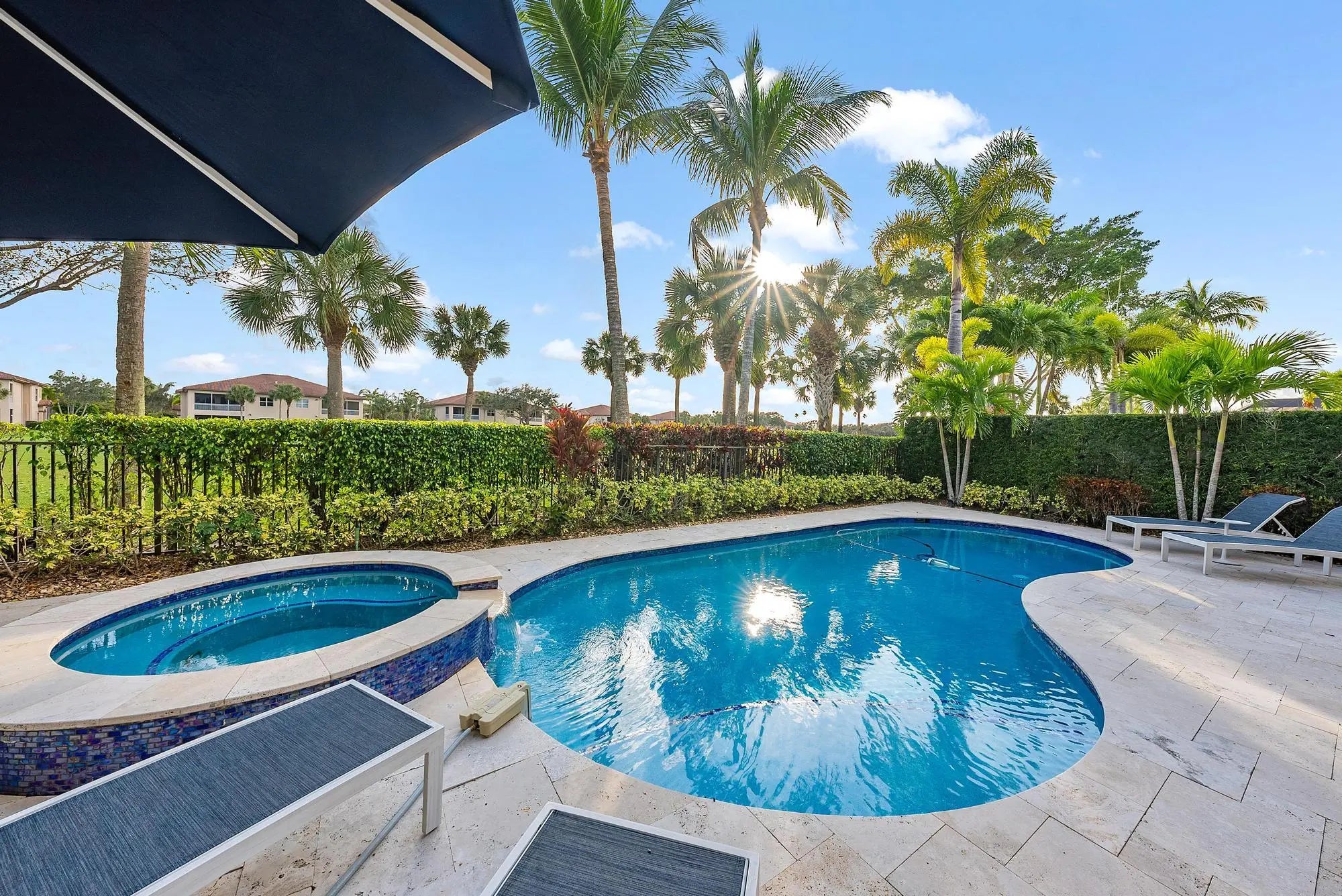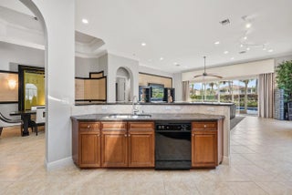 Designed by DECORATORS UNLIMITED, this FULLY-FURNISHED contemporary great room home overlooks fabulous golf view, south. Light, bright and move-in perfect this popular ''Riviera'' model is beautifully situated on the 8th fairway of Ibis's Nicklaus-designed Tradition Course. Boasting a redone pool, spa and patio area with marble pavers, this exceptionally upgraded home offers the best of Florida living. 3BR/3BA+Den+Bonus Room with soaring ceilings, extensive moldings, coffered ceilings, designer touches throughout. Accordian hurricane shutters and Low-E Hurricane film provide protection and convenience. The generously upgraded kitchen offers handsome wood cabinetry, striking granite, tumbled marble back splash and upgraded appliances.