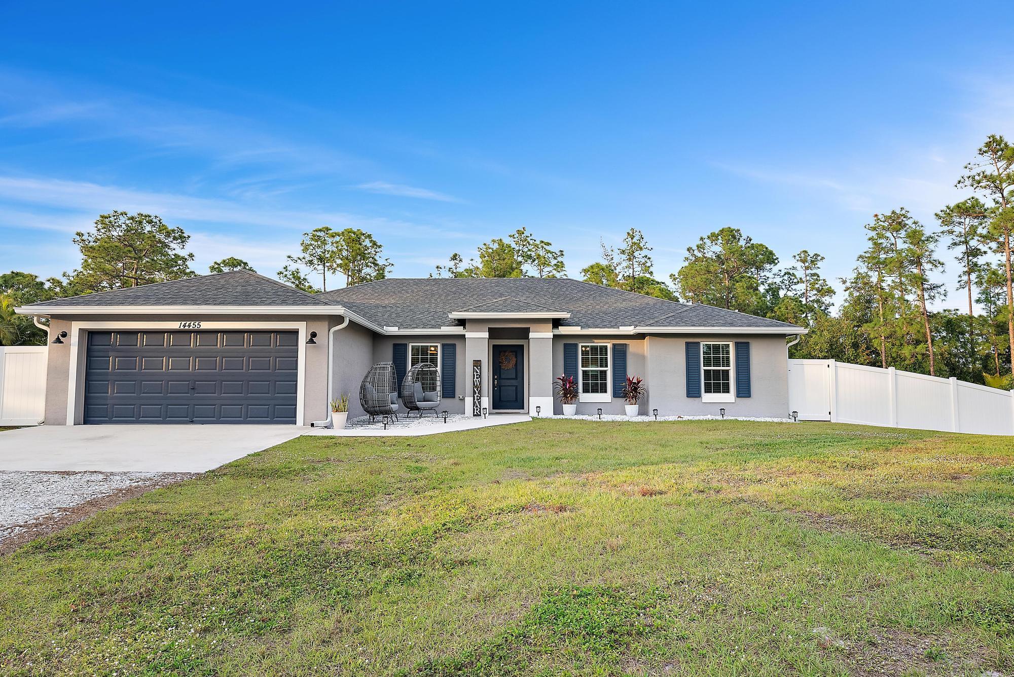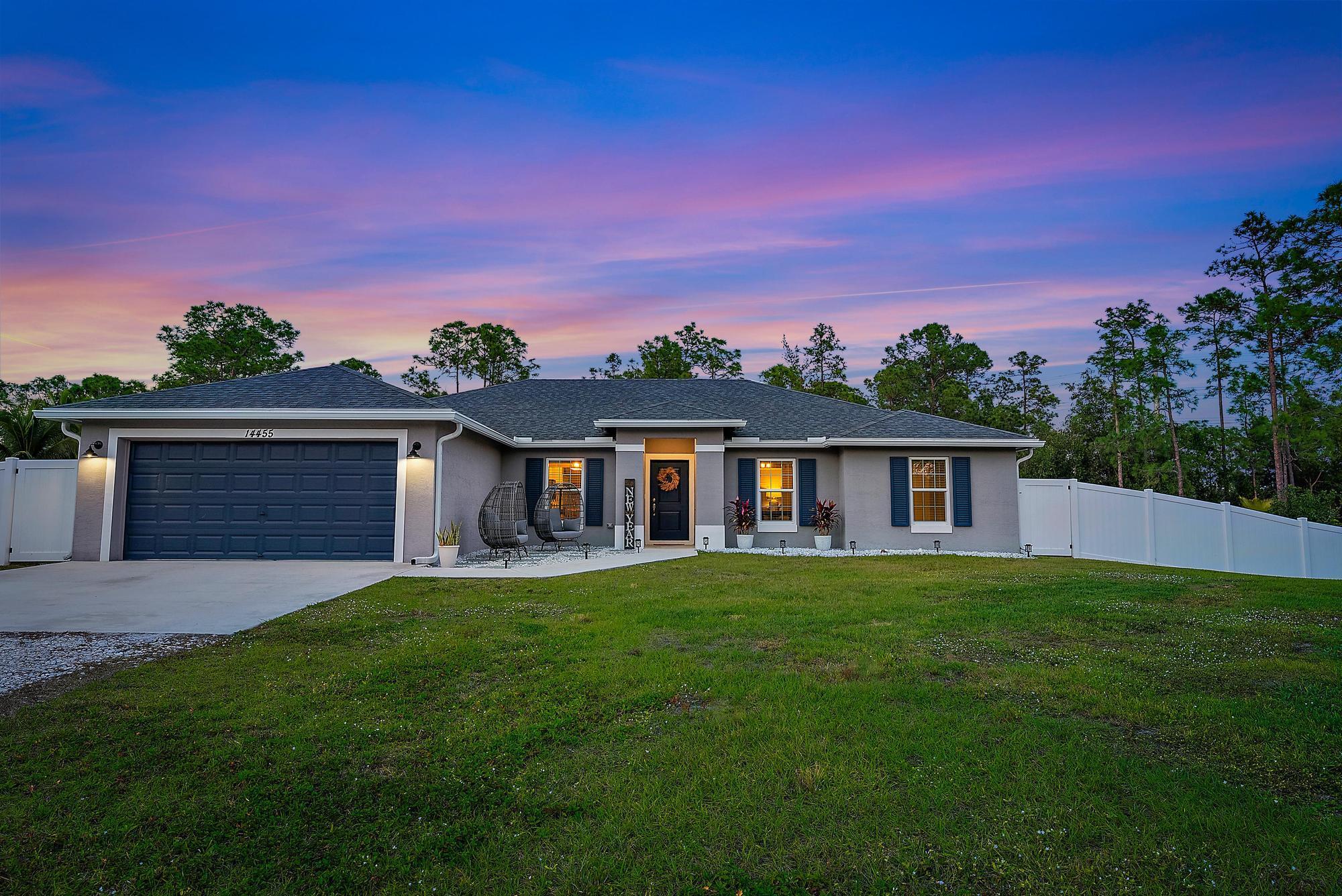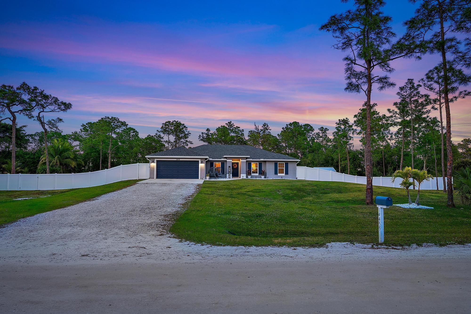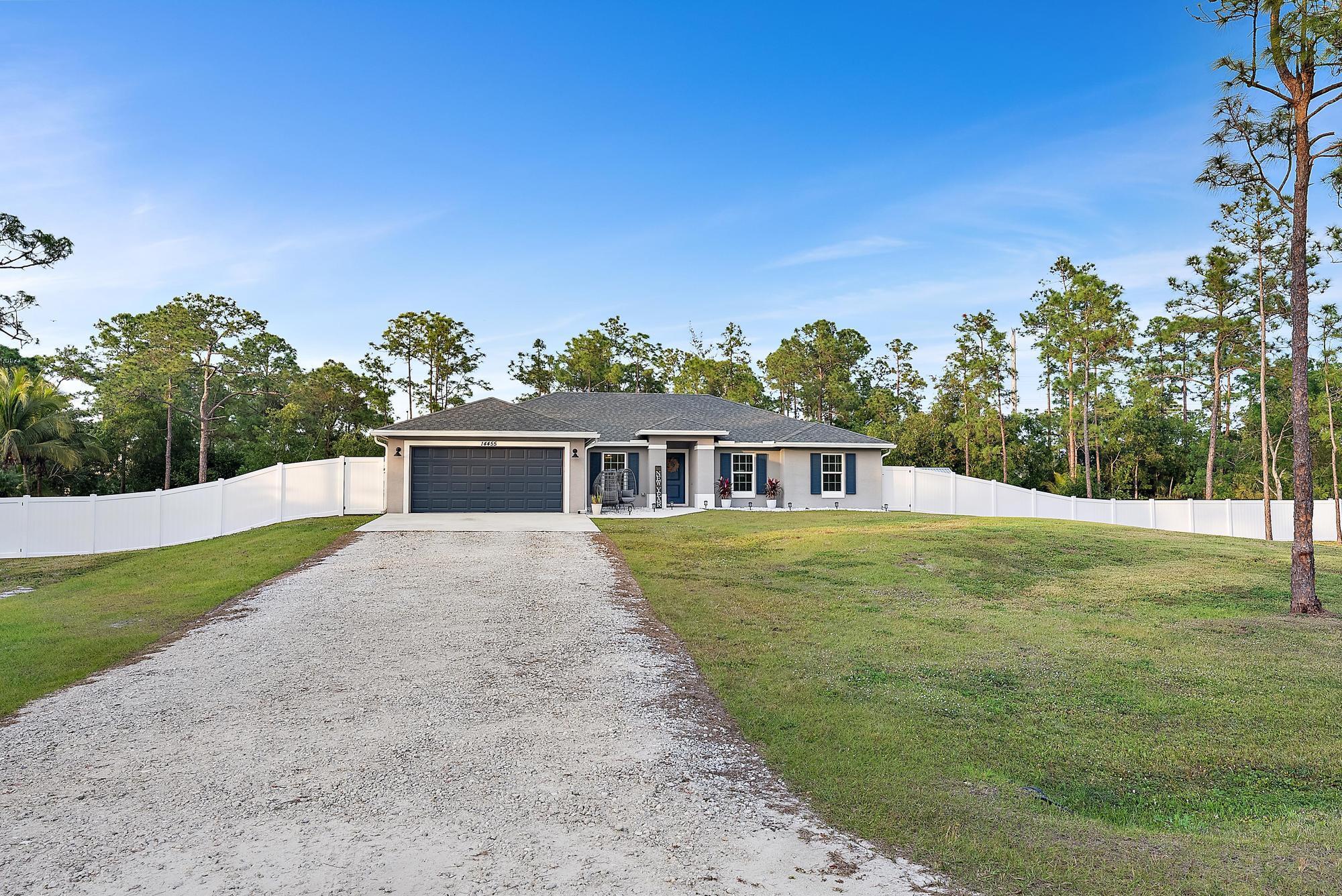 Big Price Reduction! Enjoy country living in Palm Beach County! This white vinyl fenced, 3-year old home offers tranquility while being close to all Palm Beach living has to offer. With 1.14 acres there is room for your pets and toys. This 3 year old, 4/2/2 home has smart appliances and AC, an upgraded RO system and upgraded lighting/fans. The expansive yard has an extended back patio with metal canopy and a shed on concrete pad. The open living area with vaulted ceilings has lots of room for entertaining. This like-new home is move-in ready and has location too! 3 miles from new Avenir Town Center with no HOA. Don't miss the opportunity - schedule your showing today!