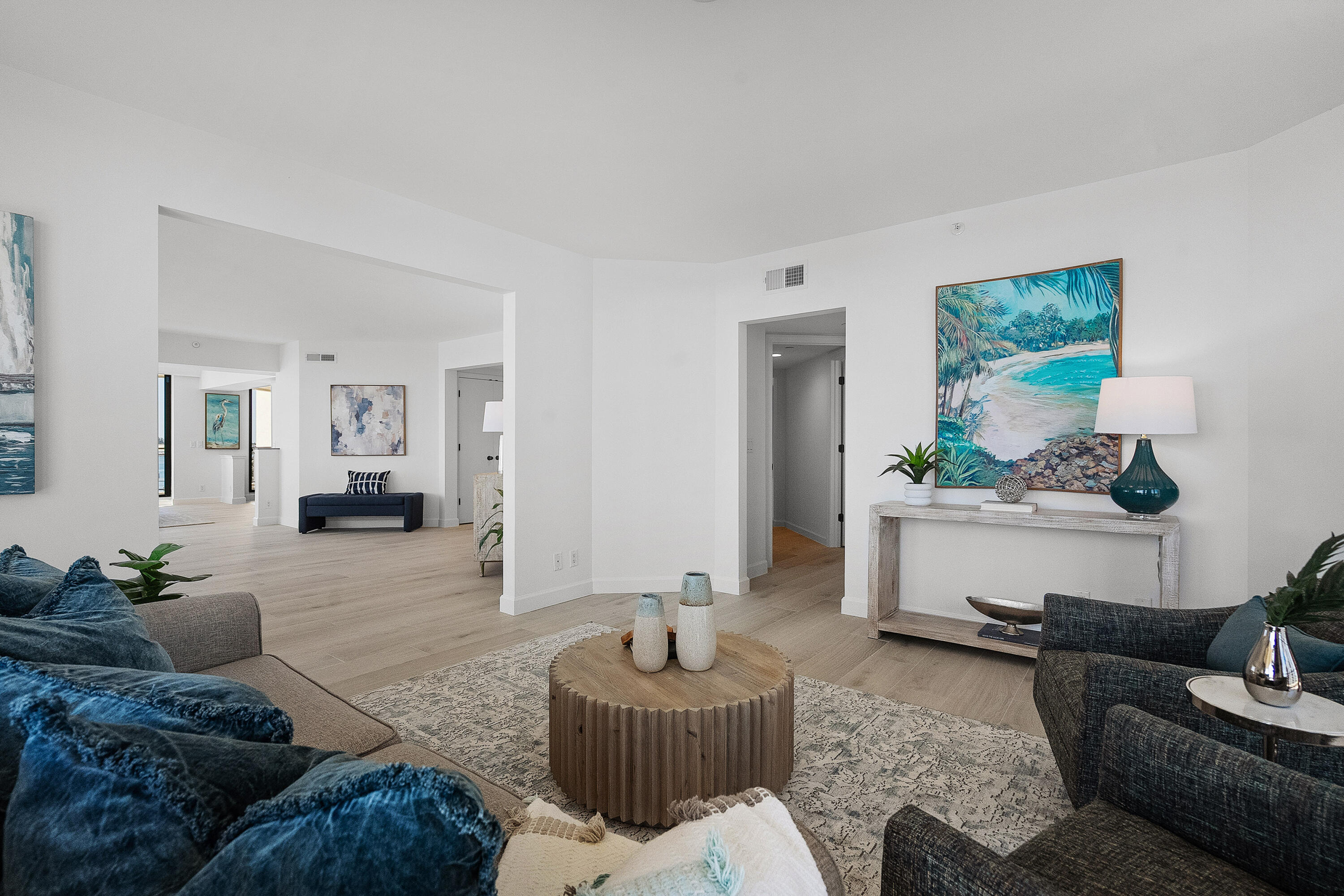 Experience unparalleled luxury at Landfall--an exquisite ocean and intracoastal front building nestled in the coveted enclave of Jupiter Island, Florida. This exceptional 2-bedroom plus den (or 3rd bedroom), 3 full bath residence offers breathtaking, panoramic views of the intracoastal waterway from the moment you step inside.The open-concept layout is designed for both comfort and sophistication. Floor-to-ceiling impact windows and doors flood the space with natural light, while expansive wrap-around balconies invite seamless indoor-outdoor living.Newly installed beautiful tile floors are complemented by features such as a built-in wet bar discreetly tucked behind double doors in the foyer, granite countertops, and a brand-new kitchen with stainless steel appliances. The residence also includes the convenience of an in-unit washer and dryer. This exclusive home shares the level with only three other residences, ensuring privacy and tranquility. The Landfall is a boutique, 28-residence condominium offering the ultimate in waterfront living. Residents enjoy a common boat dock, heated pool, outdoor shower, and direct beach access perfect for those who cherish coastal living and boating adventures.