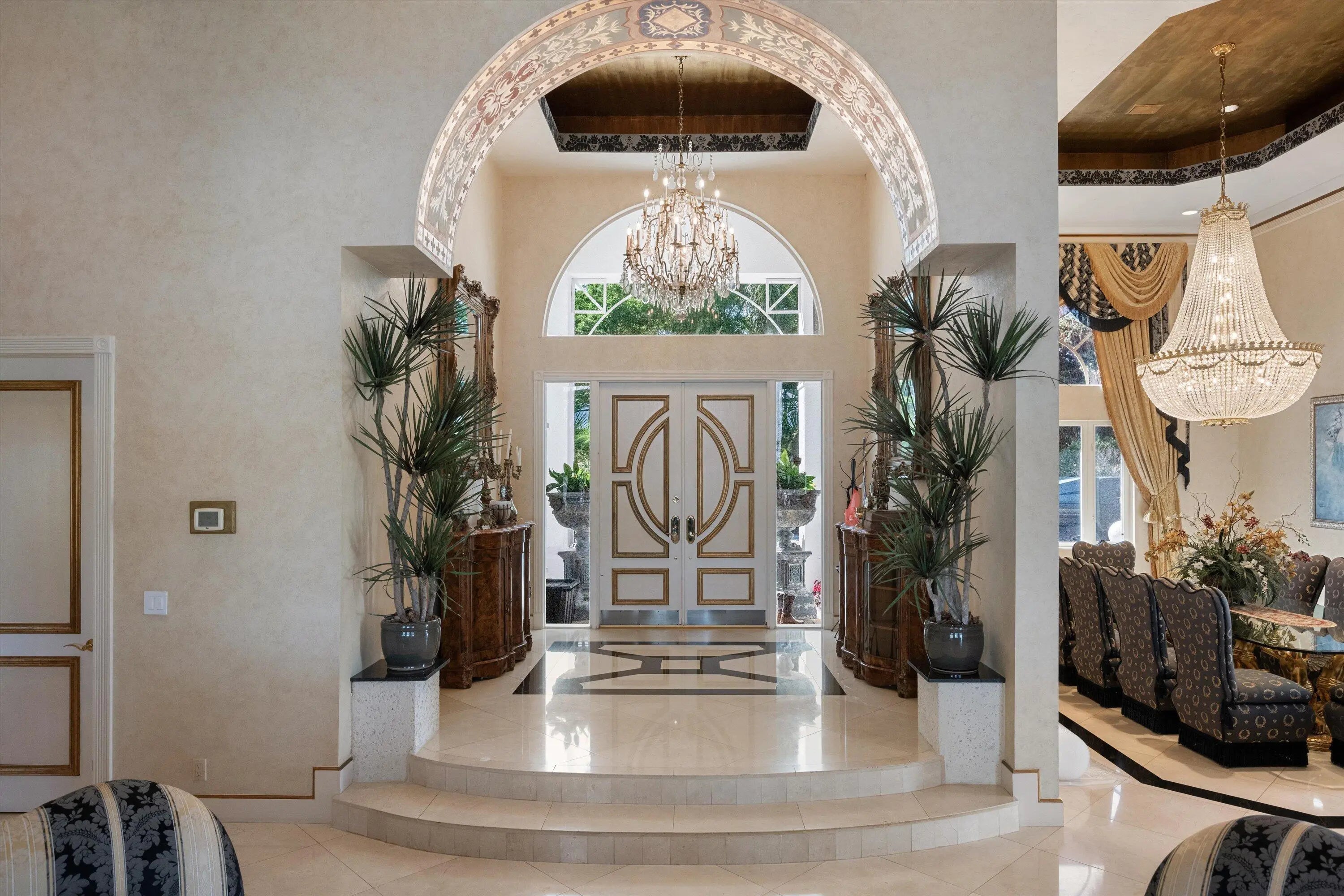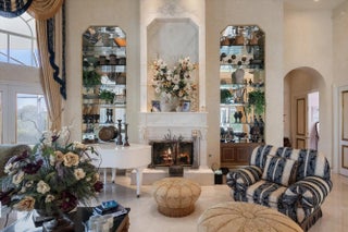 Bar, Built-in Shelves, Closet Cabinets, Ctdrl/Vault Ceilings, Custom Mirror, Decorative Fireplace, Dome Kitchen, Entry Lvl Lvng Area, Fireplace(s), Foyer, French Door, Kitchen Island, Pantry, Split Bedroom, Volume Ceiling, Wet Bar