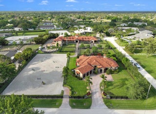 Stunning, equestrian property. Newer construction with a custom built 4-bedroom, 3 1/2 bath pool home, featuring a beautiful, covered lanai with travertine flooring and drop-down screens opening to a pristine saltwater pool & jacuzzi with travertine deck. The entire home features top of the line finishes, plus high-end appliances and is refreshingly sophisticated, clean and elegant. Equestrian facilities include a high end 16 stall stable, designed with 2 tack rooms, 2 feed rooms, a laundry room with double washers and dryers, plus barn baths and numerous wash stalls. There are currently 5 paddocks, a fiber arena by Drew Dirtworks and a round pen. For storage there is a separate garage with water and electricity. Above the garage is a 2-bedroom 1 bath apartment,