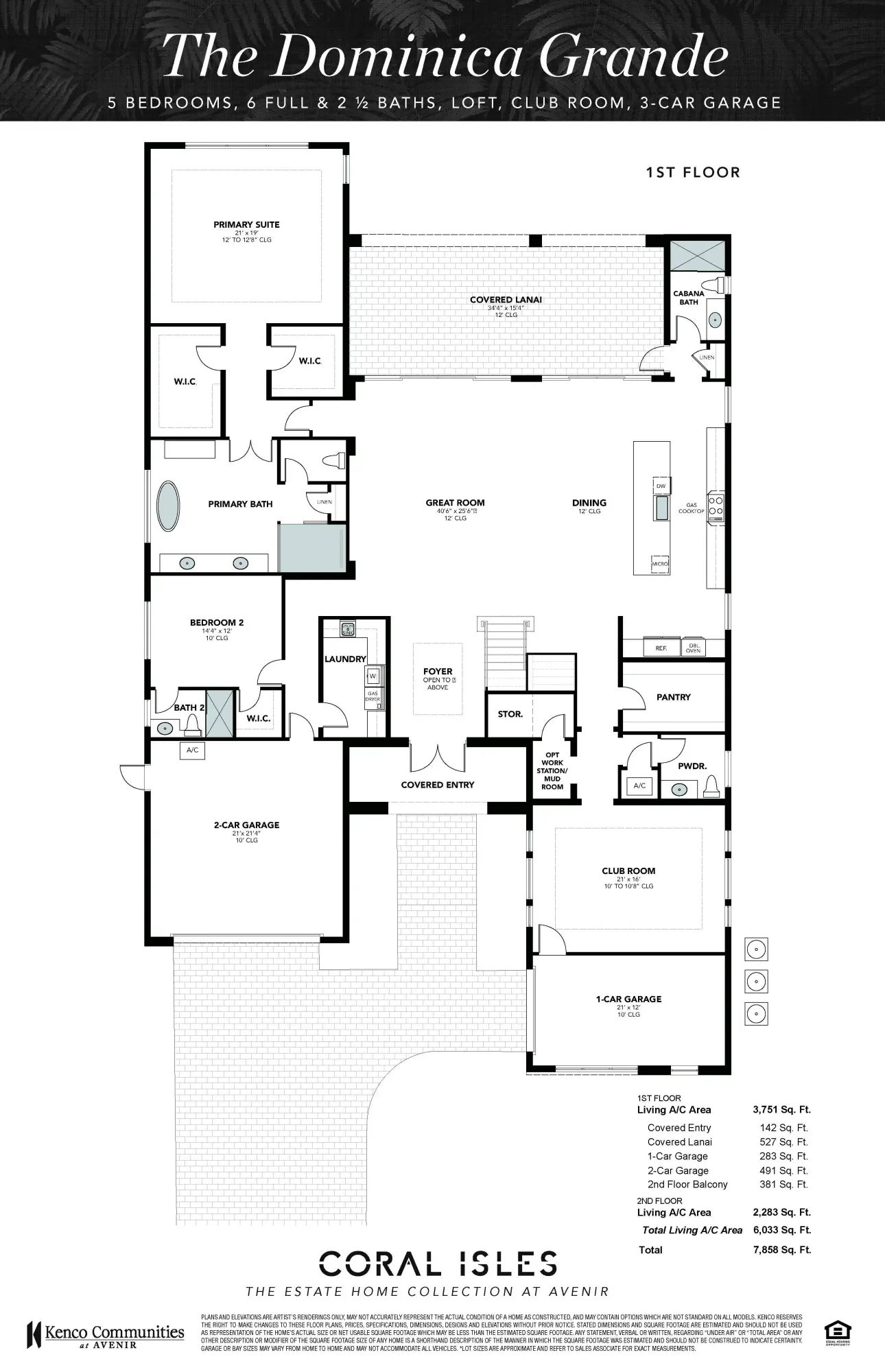 NEARING COMPLETION . . . ENJOY THE HOLIDAYS IN YOUR BRAND-NEW LUXURY ESTATE HOME WITH KENCO COMMUNITIES NEW FLOOR PLAN!! 6,033 A/C Sq Ft with 2 MASTER SUITES!! Ideal location with ultimate privacy. Spacious Club Room on main floor, oversized Loft on 2nd floor with access to incredible covered balcony overlooking Stunning Pool/Spa with serene view of lush mature landscaping and water off in the distance. Exceptional home in Avenir's boutique enclave of only 107 estate homes. Resort style Clubhouse already done and right next door! Get in early and be part of Avenir's History! Nothing compares to a Kenco built Home!Prices subject to change without notice and termination. ESTIMATED COMPLETION DECEMBER 2025
