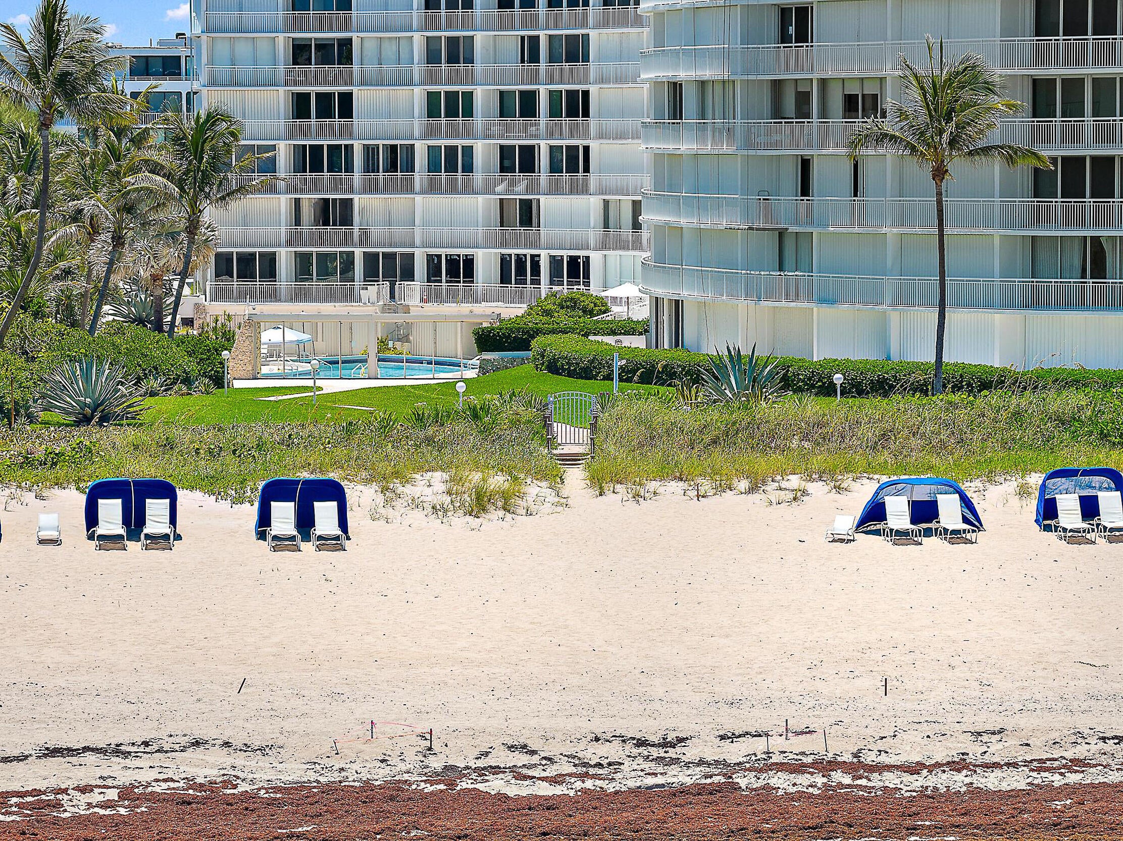 Stunning high-floor oceanfront residence with sweeping views of the Atlantic & Intracoastal. This impeccably renovated 1-bdrm, 1-bath condo features impact glass, sleek neutral tile floors, a modern kitchen with granite countertops & stainless steel appliances, and custom walk-in closet. Bathed in natural light from its desirable southern exposure, unit boasts a private balcony w/sunrise & sunset ocean views. Located on prestigious S Ocean Boulevard, just steps from the Four Seasons, Palm Beach Par 3 Golf Course, & minutes to Worth Avenue. Move-in ready & offered partly furnished for immediate enjoyment. Milestone inspections have been completed, with a few ongoing building repairs & updates underway, adding to long-term peace of mind. Best priced 1/1 Oceanfront Condo in SOUTH Palm Beach!