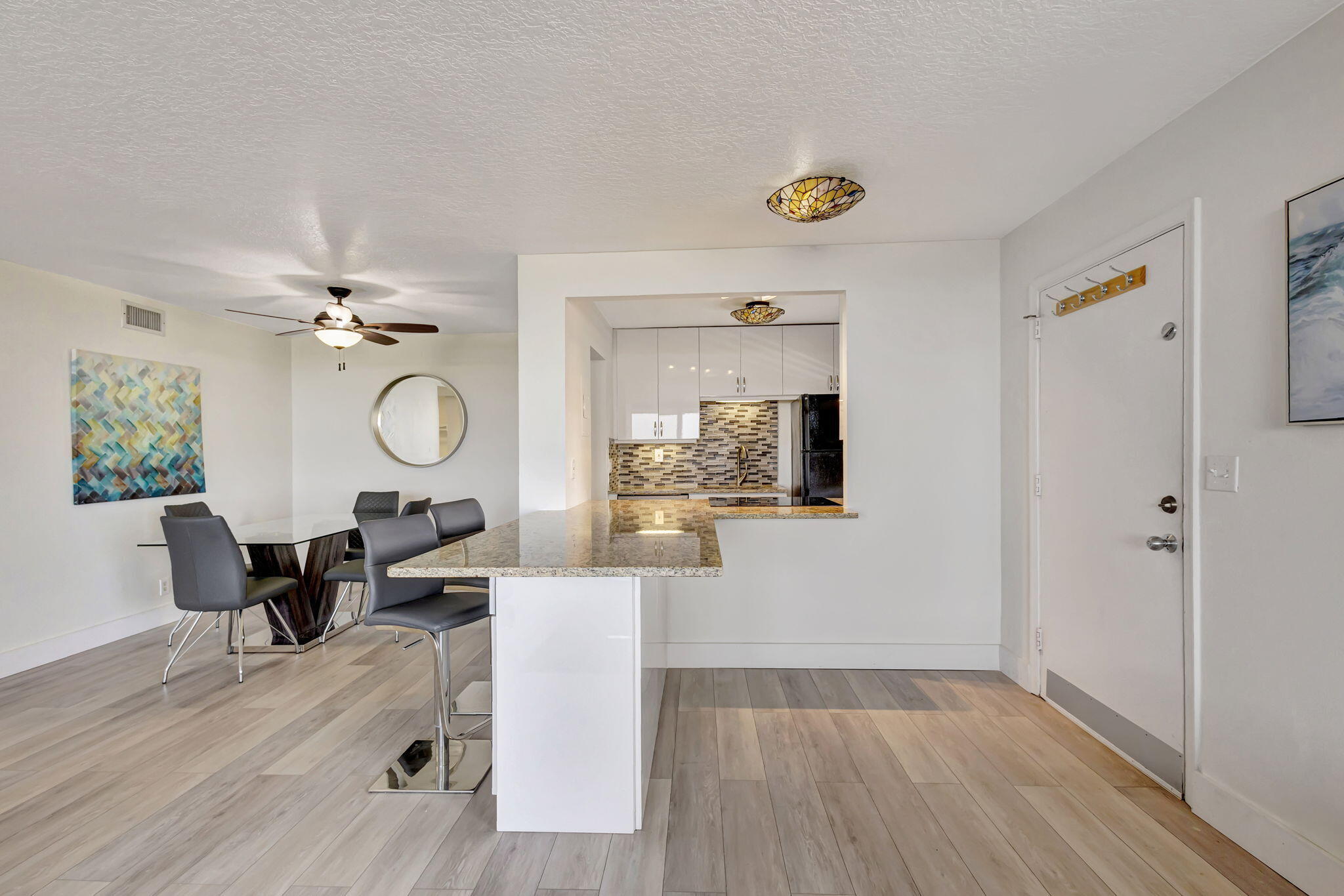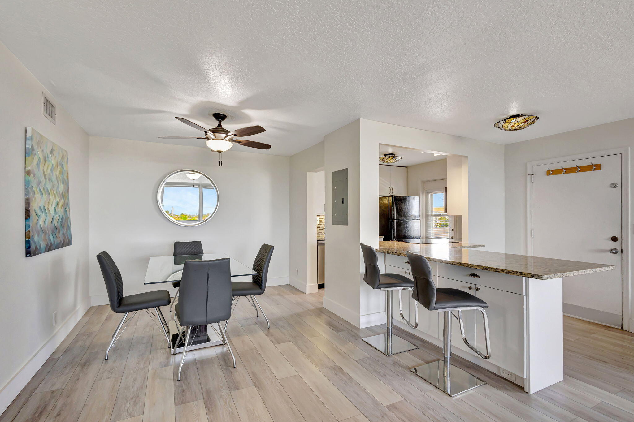 IMMEDIATE INCOME OPPORTURNITY! Well Priced and rented for season. 2-Bed, 2-Bath Furnished Condo on Singer Island - Steps from the Ocean! This updated unit in Villa Towers offers a beachside lifestyle, with fresh paint and wood-look vinyl flooring that flows seamlessly throughout. Move-in ready condition. Located on a desirable stretch of beach, this well-maintained building offers a variety of amenities, including a pool, sauna, fitness area, billiard room, shared laundry - 4 units each floor, a resident lounge with library and climate-controlled storage. Premier shopping, dining & entertainment are just 15 mins away. 25 mins to PBI airport.