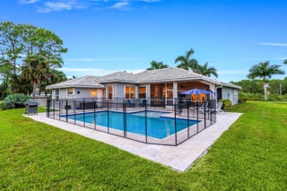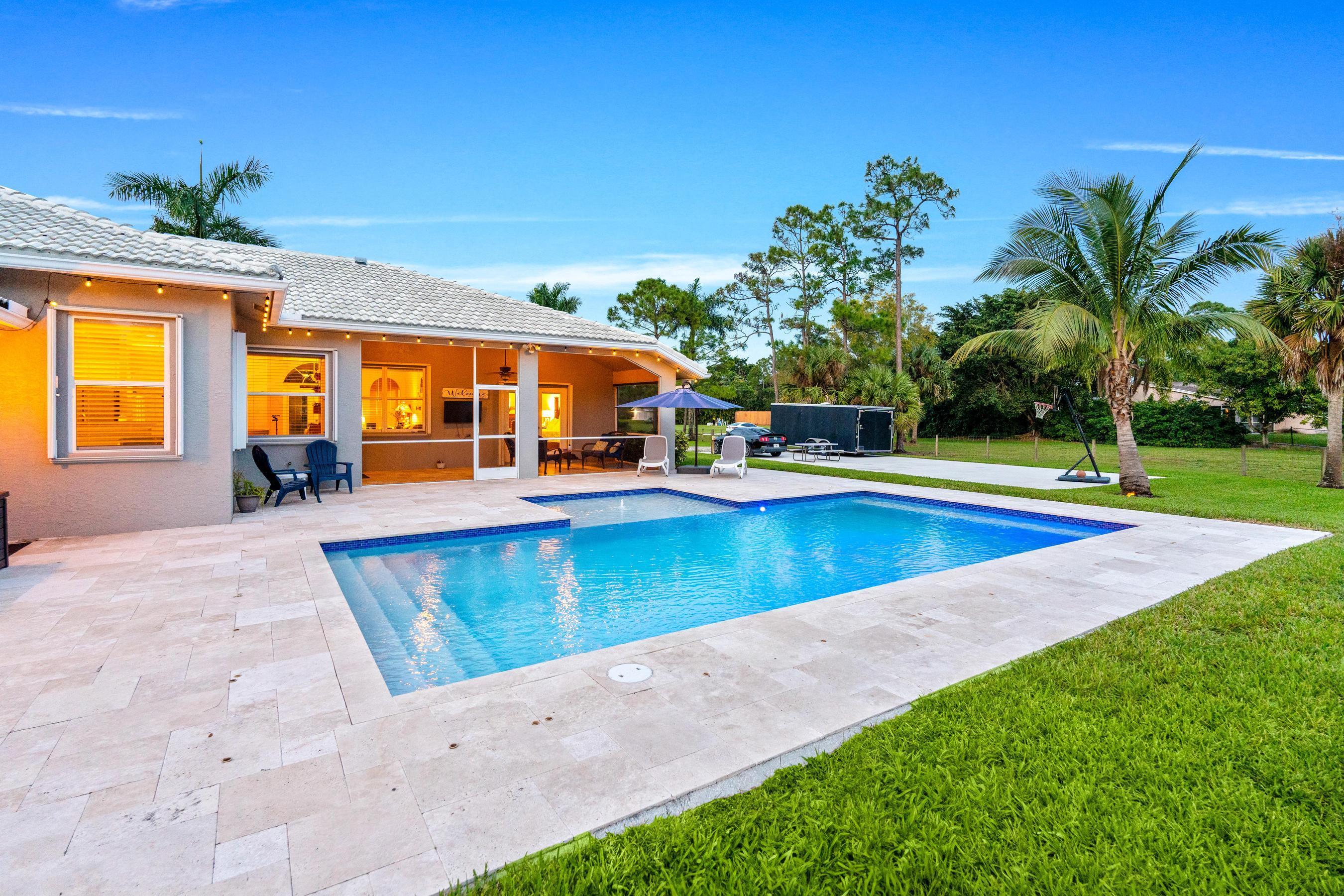 Welcome to this beautifully maintained 4-bedroom, 3-bathroom home nestled on a 1.19-acre lot in sought-after Loxahatchee. Featuring a desirable triple-split floor plan, this residence offers an airy, open layout perfect for both everyday living and entertaining.Step outside to your private backyard retreat, where a newer modern in-ground pool awaits. Designed for relaxation and style, the pool features an oversized sun shelf--perfect for lounging in shallow water or setting up chairs under the sun. Surrounding the pool is elegant ivory travertine decking, offering a timeless look and a cool, comfortable surface underfoot.Additional highlights include accordion shutters throughout, a durable tile roof, a spacious 2-car garage, and an interior laundry room. With dual gatedentrances, the property offers flexible access, plenty of room for vehicles, and space to grow. Located near top-rated schools, shopping, and dining, and just a short drive to all that Palm Beach County has to offerthis is the perfect blend of privacy, comfort, and convenience.