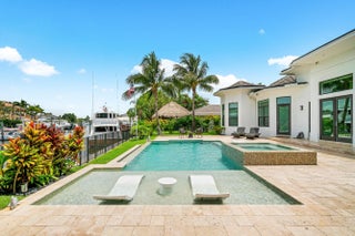Waterfront Luxury Living in Prime Boater's Location!Welcome to this exceptional waterfront residence offering over 130 feet of deep water frontage just one canal from the Intracoastal. Built in 2017, this custom-designed residence features 4 bedrooms and 4 baths, including a private guest house, all situated on a premium 1/3-acre lot at the widest point of the canal for optimal water views and turning radius.The grand great room welcomes you with soaring 16' ceilings and breathtaking waterfront vistas. Ideal for boating enthusiasts, the property includes 4 slips (36 ft. -30,000 lb. lift , 34 ft. 14000 lb. lift , 55 ft., and a 28' water slip) just a one-minute ride to the Intracoastal.