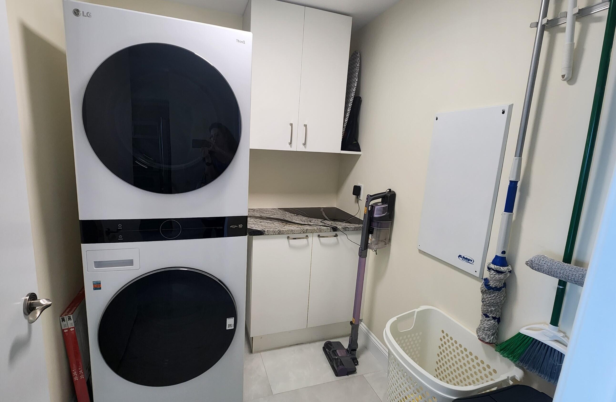 Dishwasher, Disposal, Dryer, Fire Alarm, Microwave, Range - Electric, Refrigerator, Smoke Detector, Wall Oven, Washer
