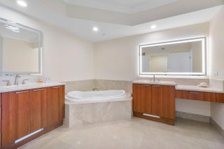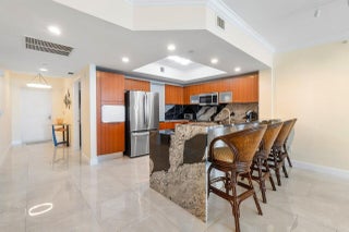 Panoramic 22nd floor Intracoastal & ocean views! Immaculate 2BR/2.5BA condo w/impact glass, Open concept w/spacious great room, dining/den, granite waterfall and backsplash in kitchen w/stainless appliance with split floor plan. Spacious owner suite w/his & her walk-in closets. Marble owner bath w/double vanity, jetted whirlpool bathtub & water closet. LED-lighted vanity mirrors in every bathroom. Neutral fresh paint and porcelain flooring throughout. Assigned parking, 24/7 manned gate, valet, tennis, pickleball, walking path w/gazebo, covered rooftop oasis w/pool, spa, BBQ areas, clubhouse, billiard room & fitness center. Marina w/dry docks available. Jump on your boat effortlessly & be on the ocean in minutes; no fixed bridges!