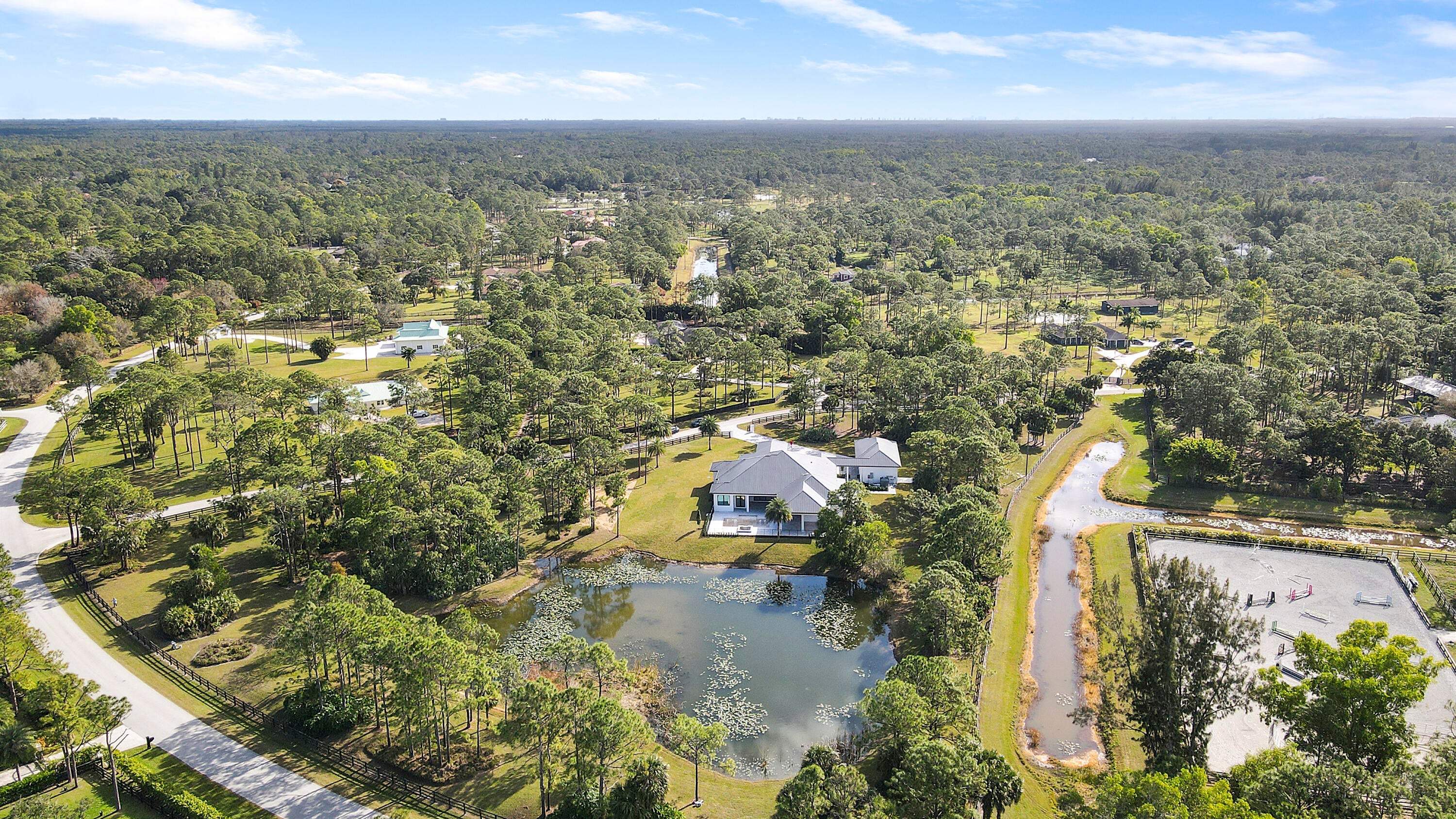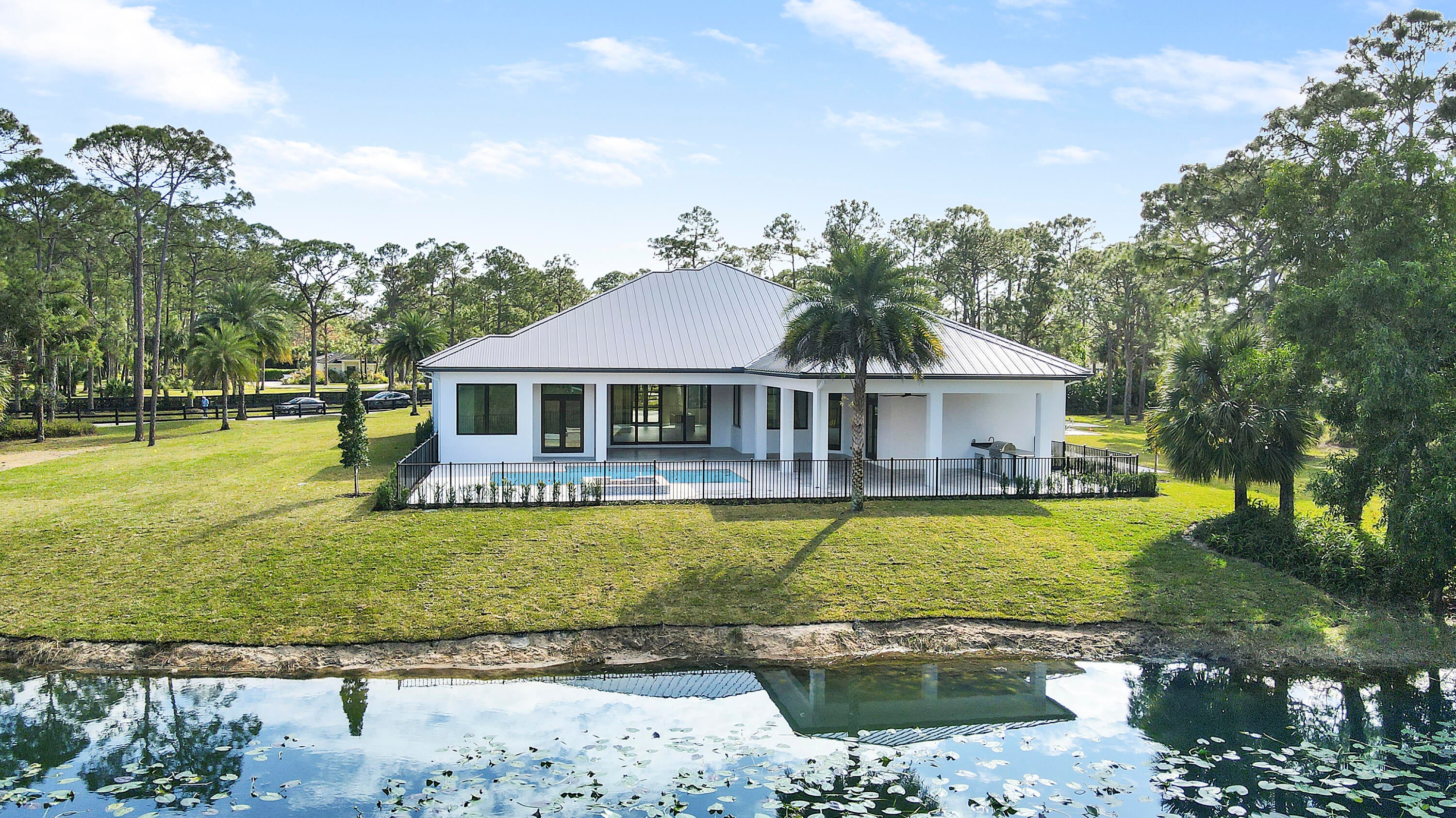 Oversized 6.52 acre lot in the beautiful equestrian community of Caloosa. This new masterpiece of superior workmanship is the distinctive home for the most distinctive buyer. Four bedrooms, four full baths and a half bath. Media room, office, morning room, summer kitchen and breezeway to the 1324 sq ft garage with 4 doors. Garage was designed for adding 4 car lifts. Whole house reverse osmosis system, Thermador appliances, buried propane tank, spray icynene insulation, tongue and groove wood patio ceilings, and three board perimeter fencing. Spanning over almost 5000 sq ft of air conditioned perfection and almost 8000 total square feet. Caloosa features an equestrian center with jumping rings and paddocks plus riding trails through the community.