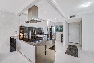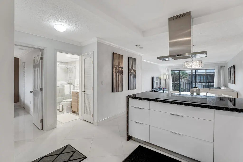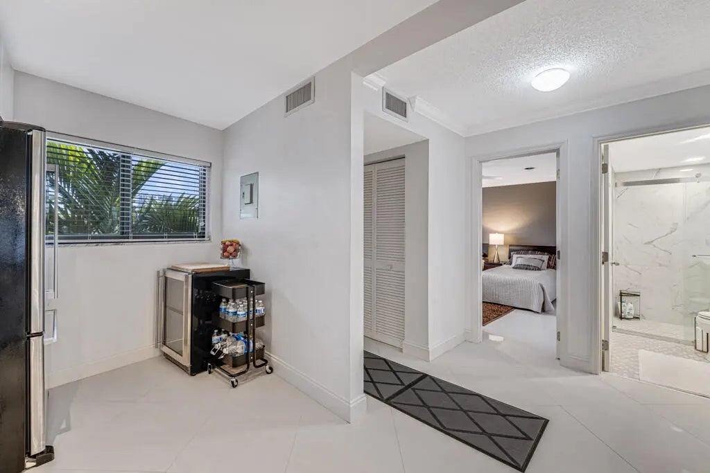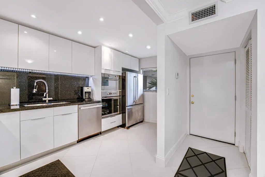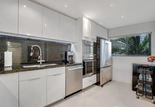 Exceptional, fully renovated residence with breathtaking southern views. Enjoy Intracoastal water views , pool, and lush tropical garden from the expansive screened balcony. Redesigned unit with high-end finishes, featuring a newer A/C, impact windows, and elegant diagonal tile flooring throughout.The bright, contemporary kitchen showcases sleek cabinetry, stainless steal appliances, a granite backsplash, and a wine cooler. The , Scandinavian-style bathrooms and full-size washer and dryer add both comfort and convenience.Located in the beautifully maintained Southgate community, residents enjoy a serene garden atmosphere, Intracoastal-front pool, sauna, and BBQ area. Deeded beach access is directly across the street, with shopping, dining, and entertainment just minutes away.