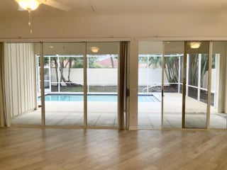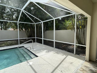 Oaks East is a guard gated community just south of the Gardens Mall. This property is a 1 story 3 Bedroom 2 bath 2 car garage . Granite kitchen counters; upgraded flooring; vaulted ceilings, wall of telescoping glass doors open to covered lanai and screened in resurfaced pool. Private quiet interior location.