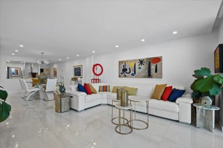 Spectacular East, North East & South East ocean views from this completely remodeled end unit, porcelain floors, all baths have marble floors & walls, quartzite counters in kitchen & both baths, abundance of recessed lighting in all rooms, Kitchen, Dining & Family Room have ocean views, Master bedroom has ocean views, 2 glass sliders to wrap around balcony, impact windows & sliders, all stainless steel appliances, wine fridge, double door entry to large Foyer, electric blinds in Family Room sliders & master bedroom sliders and window along with the 2nd bedroom, all custom solid 4 panel interior doors with lever hardware, from floor to ceiling, everything has been redone, spacious Turn Key open floor plan. Seeing is believing! Private storage unit on same floor 7 x 3.6 & 8 ft high
