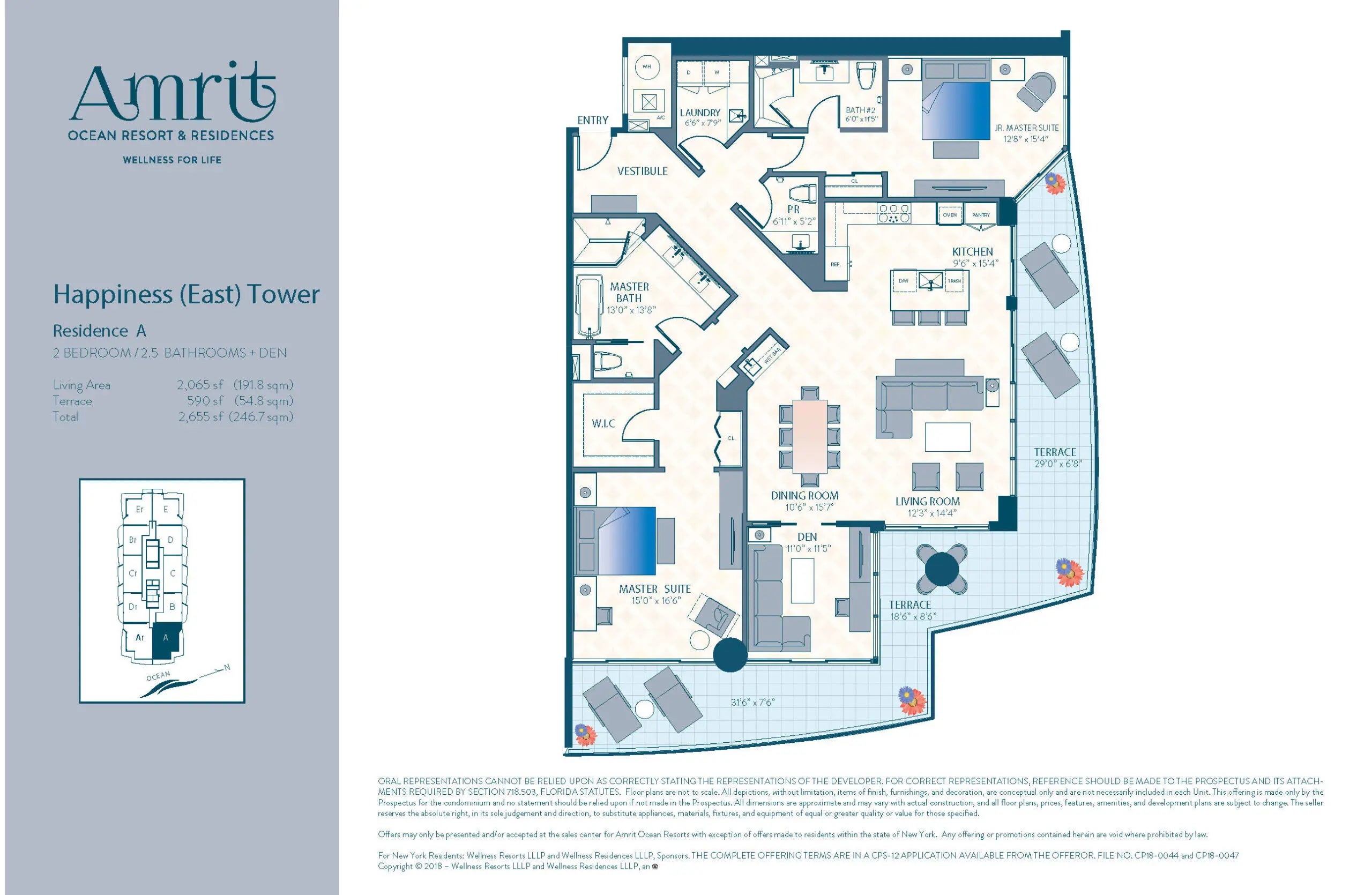 Luxury awaits steps from the sand at Amrit, a brand-new health and wellness focused community on Singer Island. Fully furnished, this 2,655sf, 2 bed, 2.5 bath residence offers breathtaking panoramic ocean views from the moment you step inside. Floor-to-ceiling impact sliders lead to an expansive terrace, from which ocean views abound. The gourmet European kitchen is appointed with premium Miele appliances, quartz countertops, wine fridge, and full wet bar. Amrit residents enjoy first class amenities; beachfront cabana service, two oceanfront pools, hot tubs, yoga terrace, and a full-service spa including cutting-edge wellness amenities.Resort-style living is redefined at Amrit Ocean Resort, where amenities include four on-site restaurants, 24-hour security, valet parking,