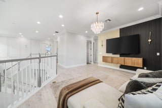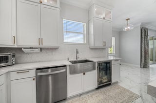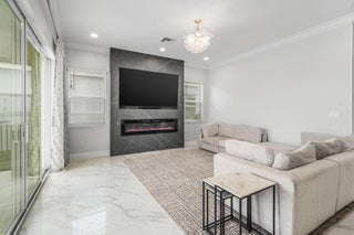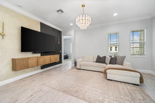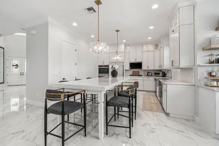 Impressive from the moment you arrive, this home features soaring 20-foot ceilings, impact windows, and extensive upgrades throughout. The gourmet kitchen offers elegant double-stacked lighted cabinetry, a designer island with premium slab countertop, a custom coffee bar with floating shelves, gas range, tankless gas water heater, and upgraded hardware. Designer chandeliers, pendant fixtures, recessed lighting,wainscoting and crown molding add timeless elegance. The primary suite includes a private balcony retreat and an upgraded bath with custom tile designs. Additional highlights include luxury vinyl floors upstairs and on the stairs, a porcelain fireplace wall, versatile loft, custom closet systems in all bedrooms, marble pavers, epoxy garage floors, & upgraded lighting throughoutFrom the moment you arrive, this residence makes an impression with soaring 20-foot ceilings and a wealth of thoughtful upgrades. Built with impact windows throughout, extra wall insulation, and gypcrete on the second floor for reduced noise, the home offers both comfort and efficiency. The gourmet kitchen features elegant soft-close, double-stacked lighted cabinetry, a designer island with premium slab countertop, upgraded hardware, and a gas range with a tankless gas water heater. A custom coffee bar with floating shelves adds convenience and style to the heart of the home. Designer chandeliers, pendant fixtures, recessed lighting, and crown molding elevate every space, complemented by freshly painted interiors. The primary suite includes a private balcony retreat, an upgraded bath with custom tile designs, and new mirrors. Bathrooms throughout have updated faucets and finishes, while all bedrooms include custom closet systems. The home also showcases luxury vinyl flooring upstairs and on the stairs, a porcelain fireplace wall in the living room, a loft accent wall with floating cabinet, and wall panels with sconces on the stairwell. Additional highlights include a versatile loft, generously sized bedrooms, travertine pavers, epoxy garage flooring, and upgraded light fixtures throughout. A perfect balance of design and function, this home delivers elegance, efficiency, and enduring style.