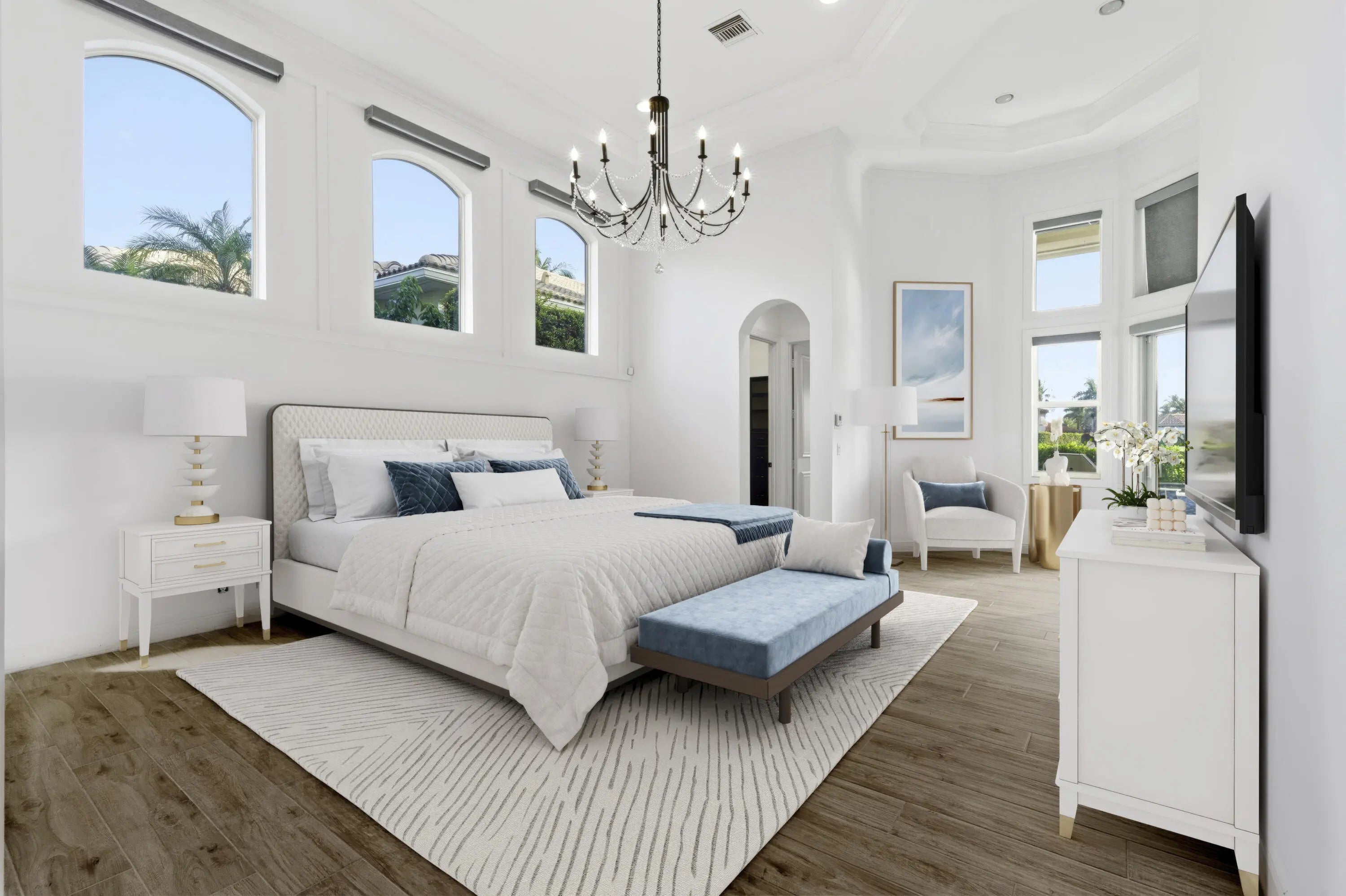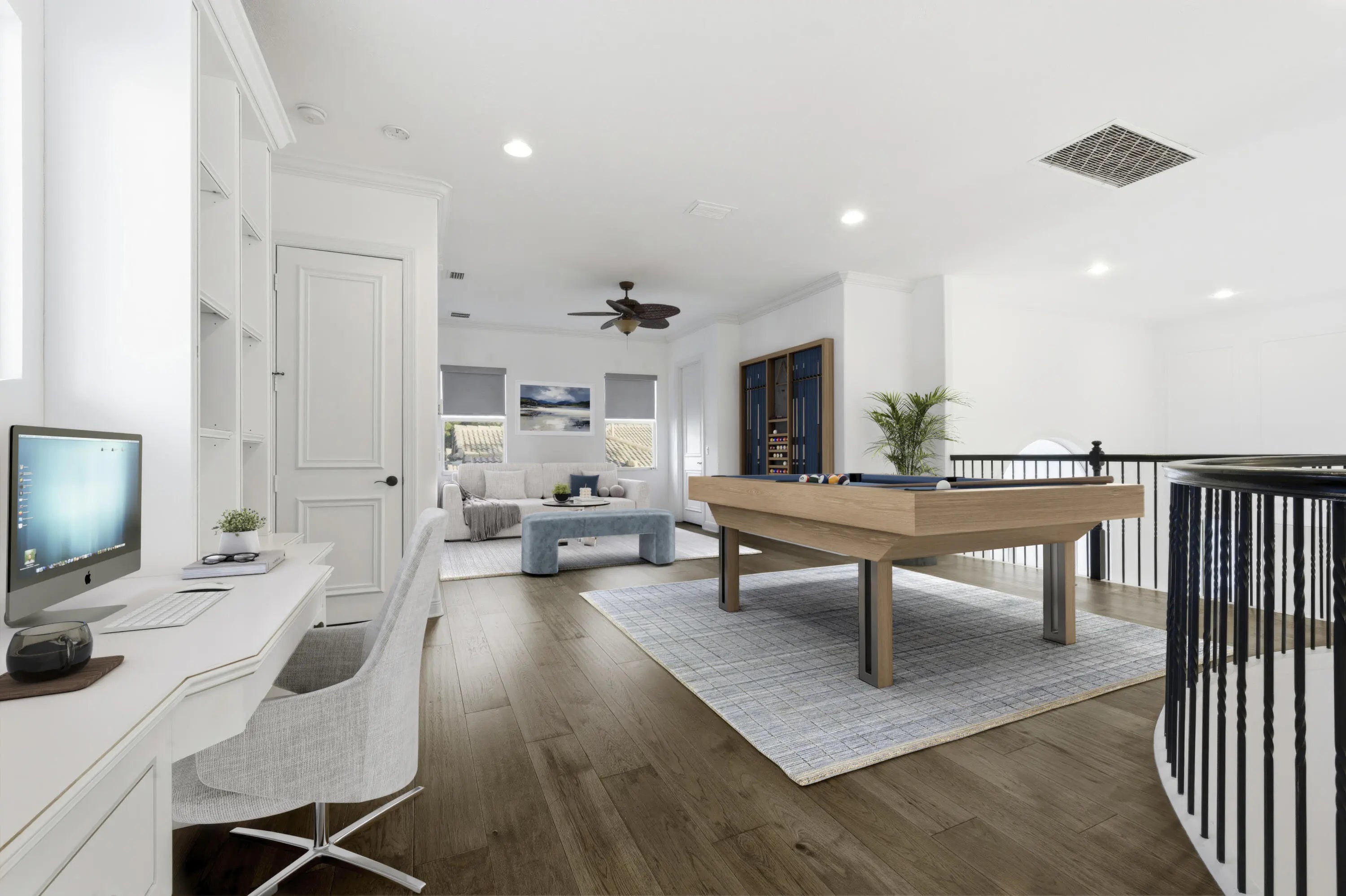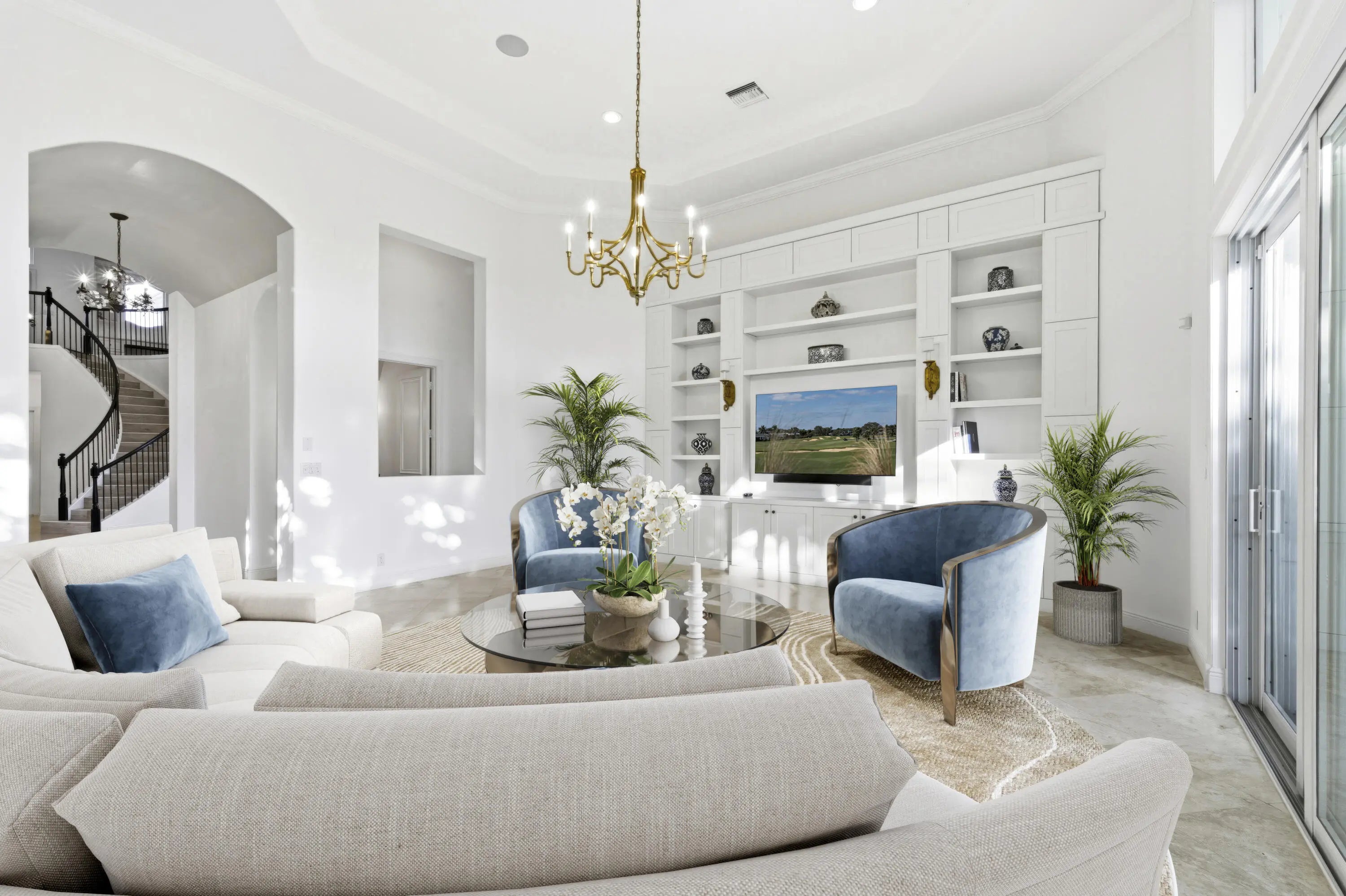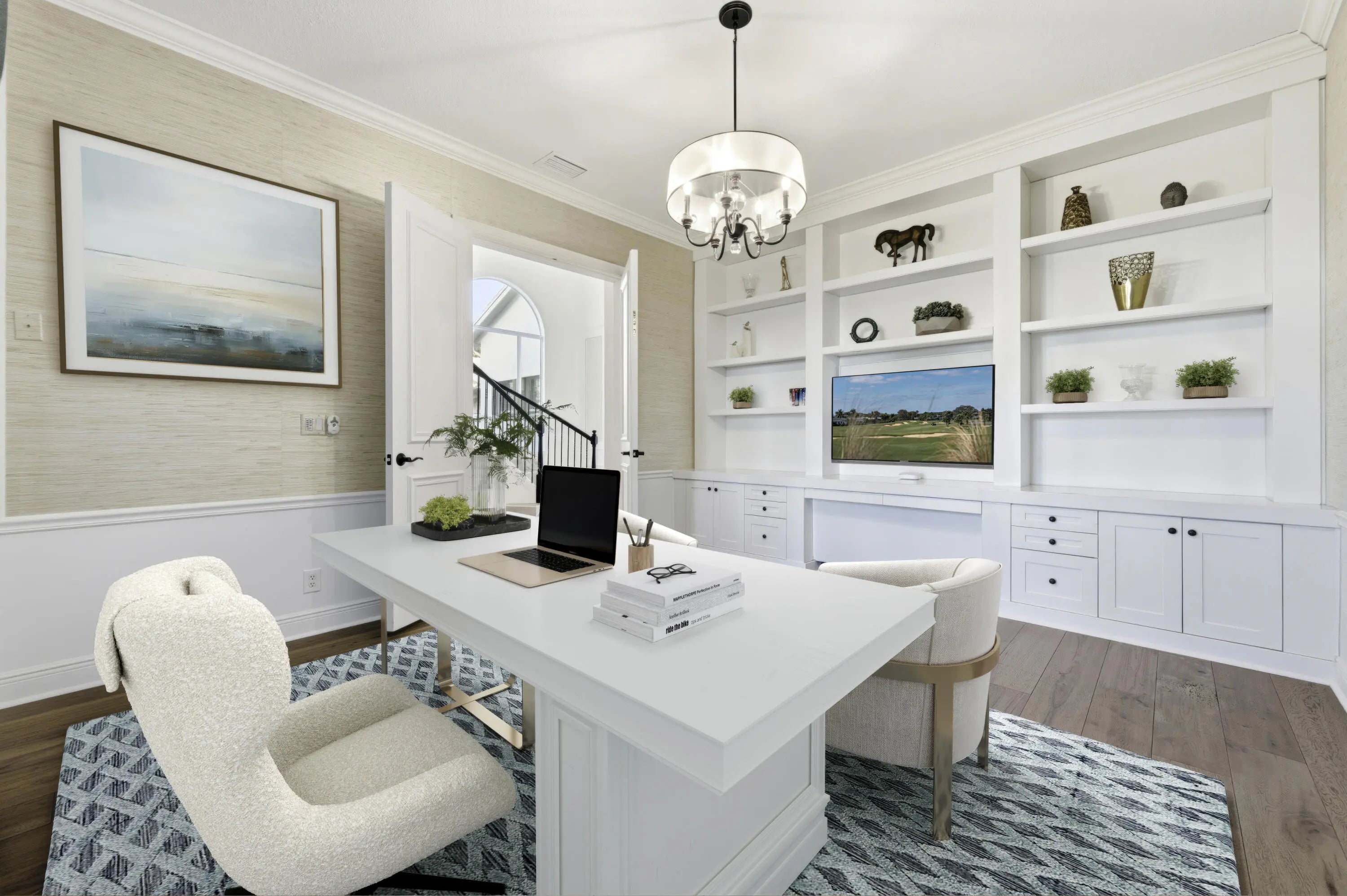 Live luxuriously on the 16th green of the Arnold Palmer Signature Course in the prestigious Frenchman's Reserve, a flagship Gold Community. This elegant 4-bedroom plus a den/office, 5.1-bath estate offers 4,465 sq ft of refined living space with dramatic 21-foot ceilings and abundant natural light throughout. Built by Toll Brothers, this home features a thoughtfully designed layout with a first-floor guest suite offering private terrace access, a spacious den/office, and a grand primary suite with dual bathrooms and sitting area. Upstairs, you'll find a versatile loft and two additional guest bedrooms; each with ensuite baths, creating the perfect setup for privacy and comfort. The second floor also offers an oversized loft area perfect for/ optional fifth bedroom.