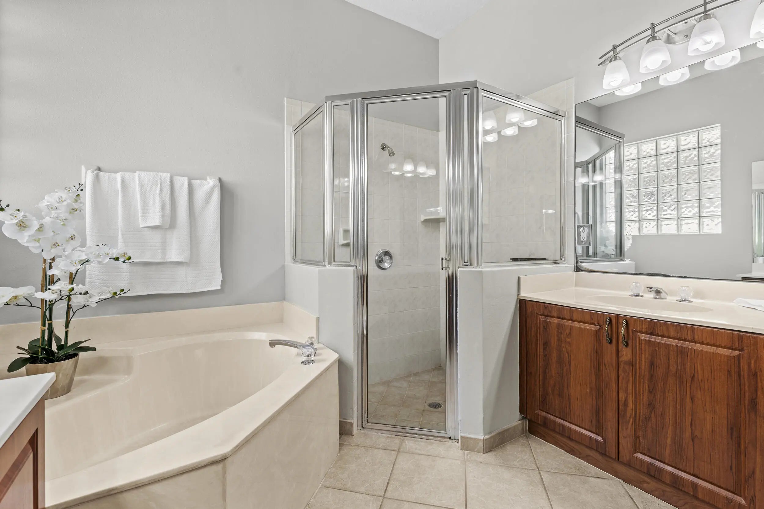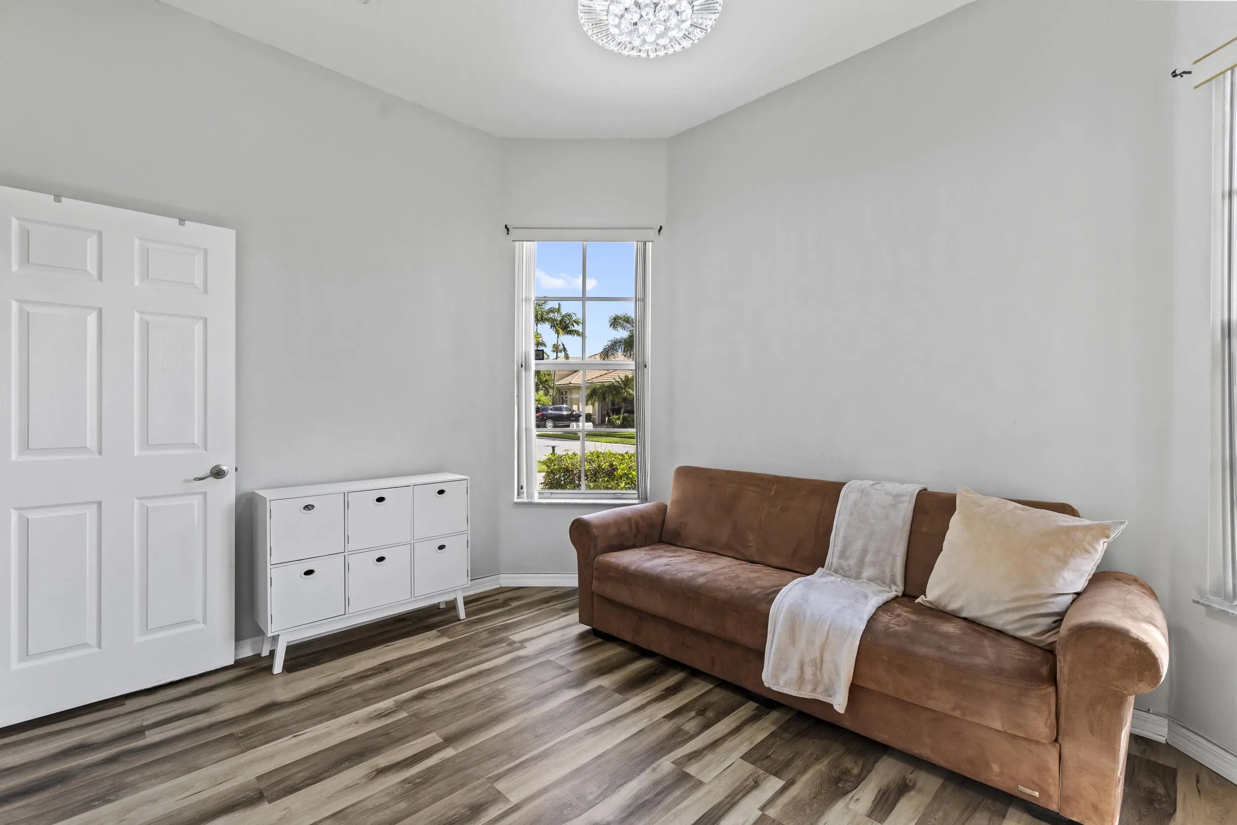 Immaculate move in condition 4 bedroom 3 bath one story home. Large open and flexible living areas plus an open eat in kitchen with a breakfast bar. 3 way split bedroom plan. High ceilings throughout. Primary bedroom has 2 walk in closets, a tray ceiling, plus access to the covered patio. Primary bathroom has a large soaking tub, separate shower, double sinks and a linen closet. Inside utility room with full size washer and dryer. Double door front entry into a spacious foyer. Paver driveway and a 2 car garage with high ceilings for lots of storage. Sidewalks throughout this guard gated neighborhood.Lots of activities at the community clubhouse for all ages. Tennis, pickleball, pool, fitness, playground, ping pong, billiards, cards, banquet hall with a kitchen and management on site.