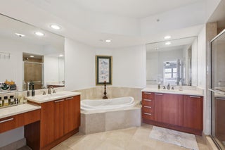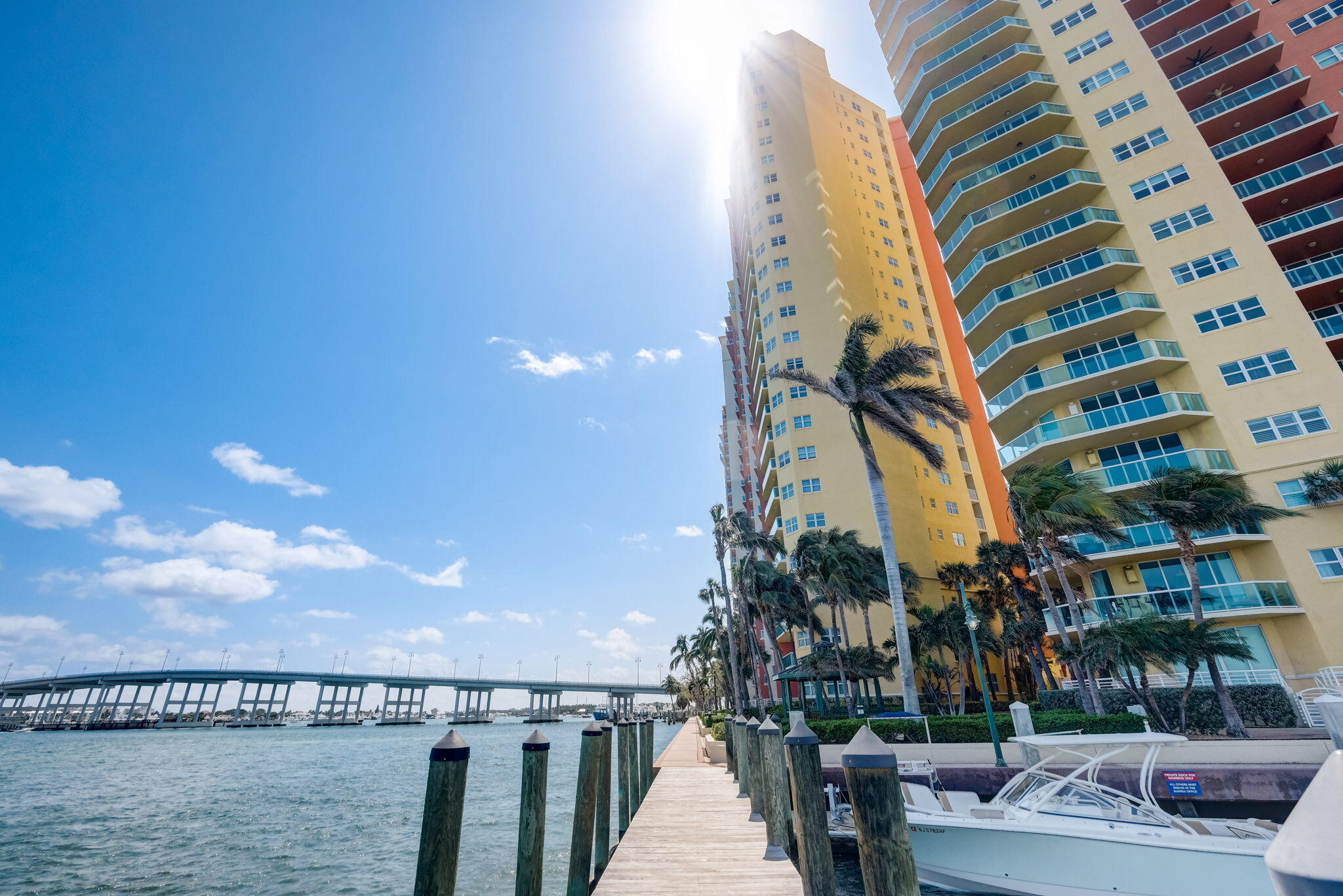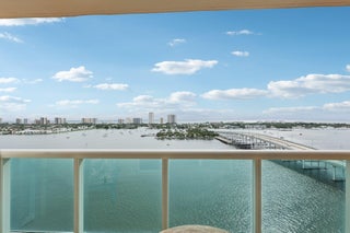 Spectacular intracoastal/ocean views from this 18th floor furnished 2bd 2ba plus large den in the preferred ocean tower. Enjoy the morning sunrise, ocean life and the pristine blue water while sitting on your private balcony enjoying your morning coffee. This 09 model has impact 9ft floor to ceiling sliders and windows, crown moulding, travertine floors through-out (no carpet), contemporary kitchen with new counters and backsplash, master bathroom has a jacuzzi tub with a separate shower and 2 walk-in closets. MG offers a newly renovated pool deck with fireplace/bar, grills, whirlpool, glass wall that looks toward Palm Beach Island, sauna, steam room, fitness center, 4 pickleball courts, bocce ball, tennis, billiard room, card room and a large social room for weekly entertainment.Marina Grande is conveniently located across the street from Publix grocery store and a full-service marina adjacent to the complex. This resort style living is for any water lover!!