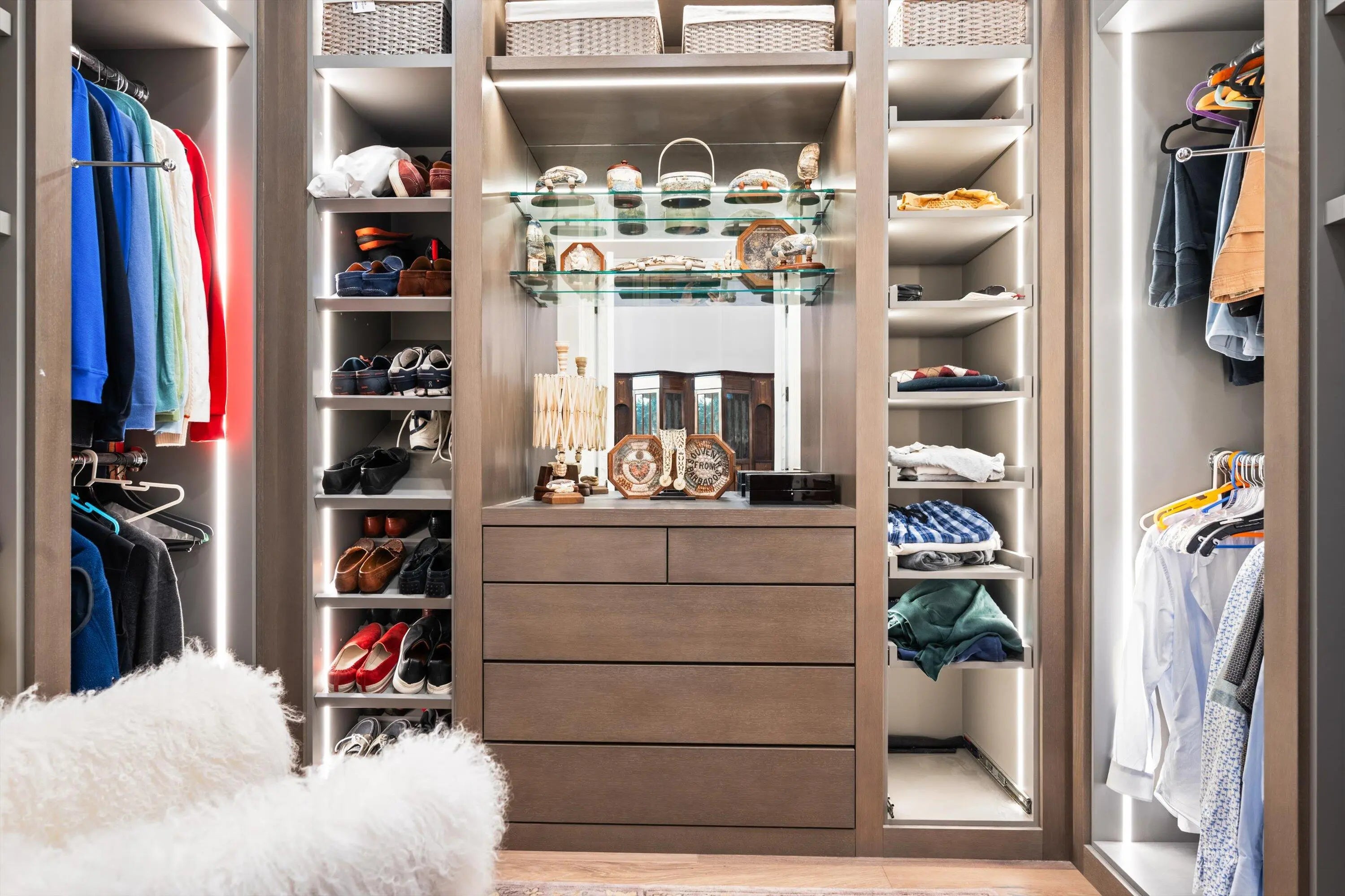 Built-in Shelves, Entry Lvl Lvng Area, Fireplace(s), French Door, Split Bedroom, Volume Ceiling, Walk-in Closet