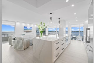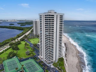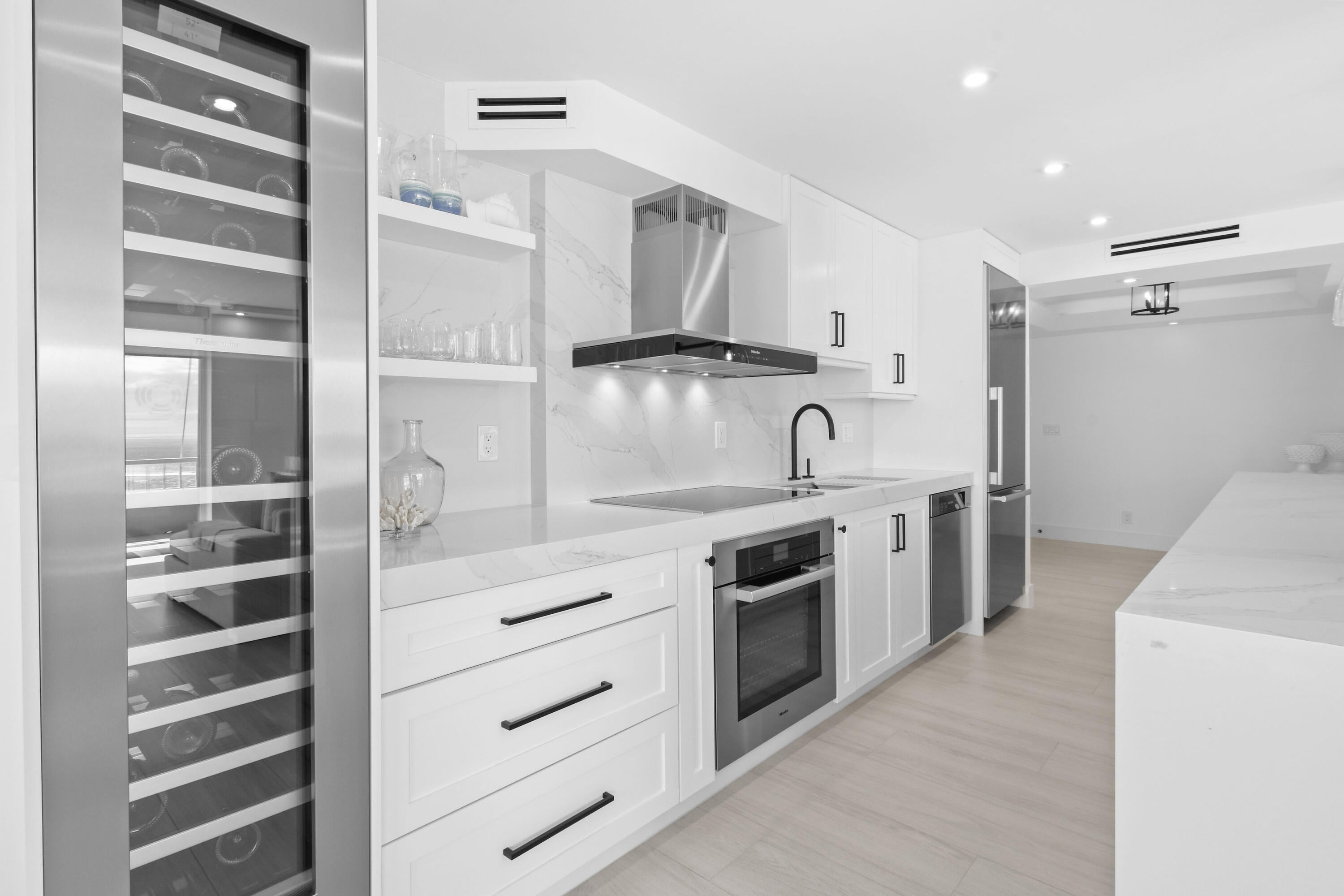 Experience the essence of luxury coastal living at Water Glades 17B, a completely reimagined 17th-floor residence offering panoramic views of both the Atlantic Ocean and the Intracoastal Waterway. This 2-bedroom, 2-bath condominium combines modern design, refined materials, and an exceptional vantage point that captures both sunrise and sunset vistas across Singer Island.Upon entering through the interior hallways, the home opens to a light-filled, open-concept living space wrapped in floor-to-ceiling glass. The expansive great room connects seamlessly to a wraparound balcony, merging indoor comfort with the beauty of the surrounding coastline and creating a breathtaking sense of openness and calm. At the heart of the home lies a custom-designed kitchen that is both elegant and functional. A waterfall-edge quartz island anchors the space, surrounded by soft-close cabinetry, sleek matte black hardware, and an artful backsplash. The kitchen features a full suite of Miele appliancesincluding built-in oven, cooktop, dishwasher, and integrated coffee systemalongside a Thermador wine cooler, offering the perfect balance of performance and sophistication. The primary suite is a serene ocean-view retreat, complete with balcony access, a custom closet system, and a spa-inspired ensuite bathroom finished in marble. Dual glass vessel sinks, wall-mounted faucets, and a frameless walk-in shower with dual shower heads create a space that is both modern and indulgent. The guest suite serves as a multifunctional retreat, featuring a built-in media wall, concealed Murphy beds, and a bright workspace overlooking the Intracoastal. The secondary bath mirrors the home's refined palette with oversized porcelain tile and designer fixtures. Every inch of this residence has been thoughtfully reimagined with wide-plank porcelain flooring, solid-core doors, custom lighting, and impact-rated glass throughout. The property also features a rare in-unit washer and dryer, in addition to the community laundry facilities conveniently located on each floor. The wraparound balcony serves as an architectural highlight, offering a commanding perspective of both waterways and a seamless connection to the natural beauty surrounding the building. Residents of Water Glades enjoy access to two resort-style heated pools, private beach access, a fitness center, tennis and pickleball courts, a social clubhouse, BBQ area, 24-hour manned security gate, and on-site managementall within a secure, meticulously maintained oceanfront setting. Located on the tranquil north end of Singer Island, this residence is minutes from Palm Beach Gardens, PGA Boulevard, Worth Avenue, and Palm Beach International Airport, offering a lifestyle of elegance, privacy, and effortless convenience. Modern oceanfront living, perfected.