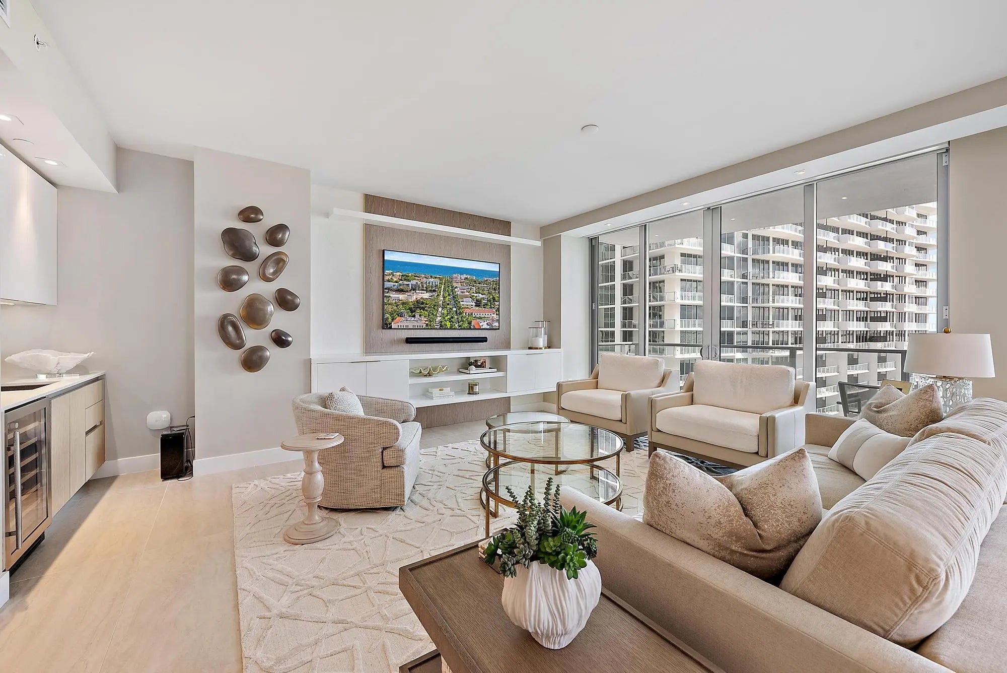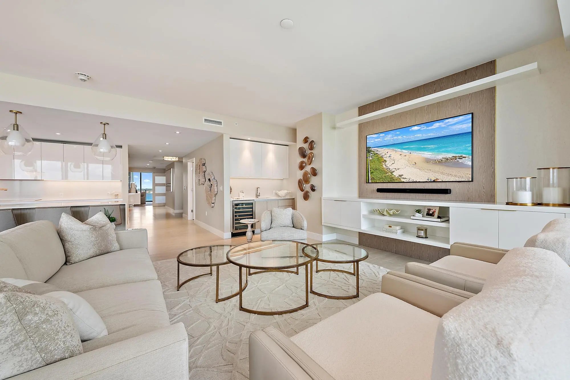 Experience luxury oceanfront living in this fully furnished, turnkey residence on the 11th floor of the newly completed Peace Tower at Amrit Ocean Resort & Residences. This southeast corner unit offers 2,525 sq. ft. of interior space and 900 sq. ft. of wraparound terraces with sweeping views of the Atlantic Ocean and Intracoastal Waterway. The 2-bedroom plus den, & 3 full bathrooms features a gourmet kitchen, a wet bar, custom closets, built-ins, and automated blinds. The spacious den easily converts to a third bedroom. Floor-to-ceiling glass doors in every room provide stunning natural light and seamless indoor-outdoor living. Residents enjoy world-class amenities including four on-site restaurants, beach and poolside service, valet, concierge, and a state of the art Spa!