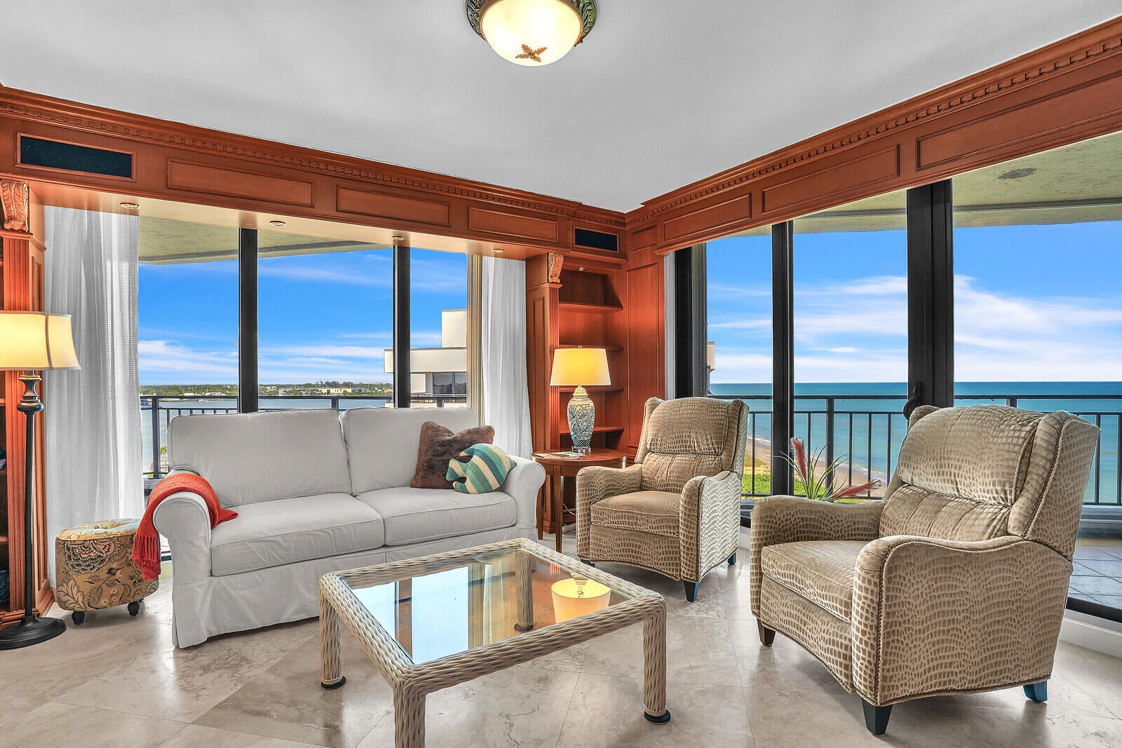 Welcome to 19850 Beach Road, 8-D, a luxurious oceanfront Penthouse located in the heart of Jupiter Island, Florida. Upon entering this 3-bed 2.5-bath residence you will be immediately taken back by unparalleled Intracoastal and Atlantic Ocean views. The spacious floor plan boasts a total of 3220 sq.ft. 2676 of which are under air, floor to ceiling impact windows, wrap-around balconies, Saturnia marble floors throughout, washer, dryer & central vacuum, granite countertops, a built-in wet bar behind double doors off foyer. This exclusive top floor residence is shared with only two apartments. The Landfall is an exclusive 28 unit condominium and a true oceanfront oasis, perfect for beachgoers and boaters alike. Amenities include common boat dock, heated pool, outdoor shower, beach access