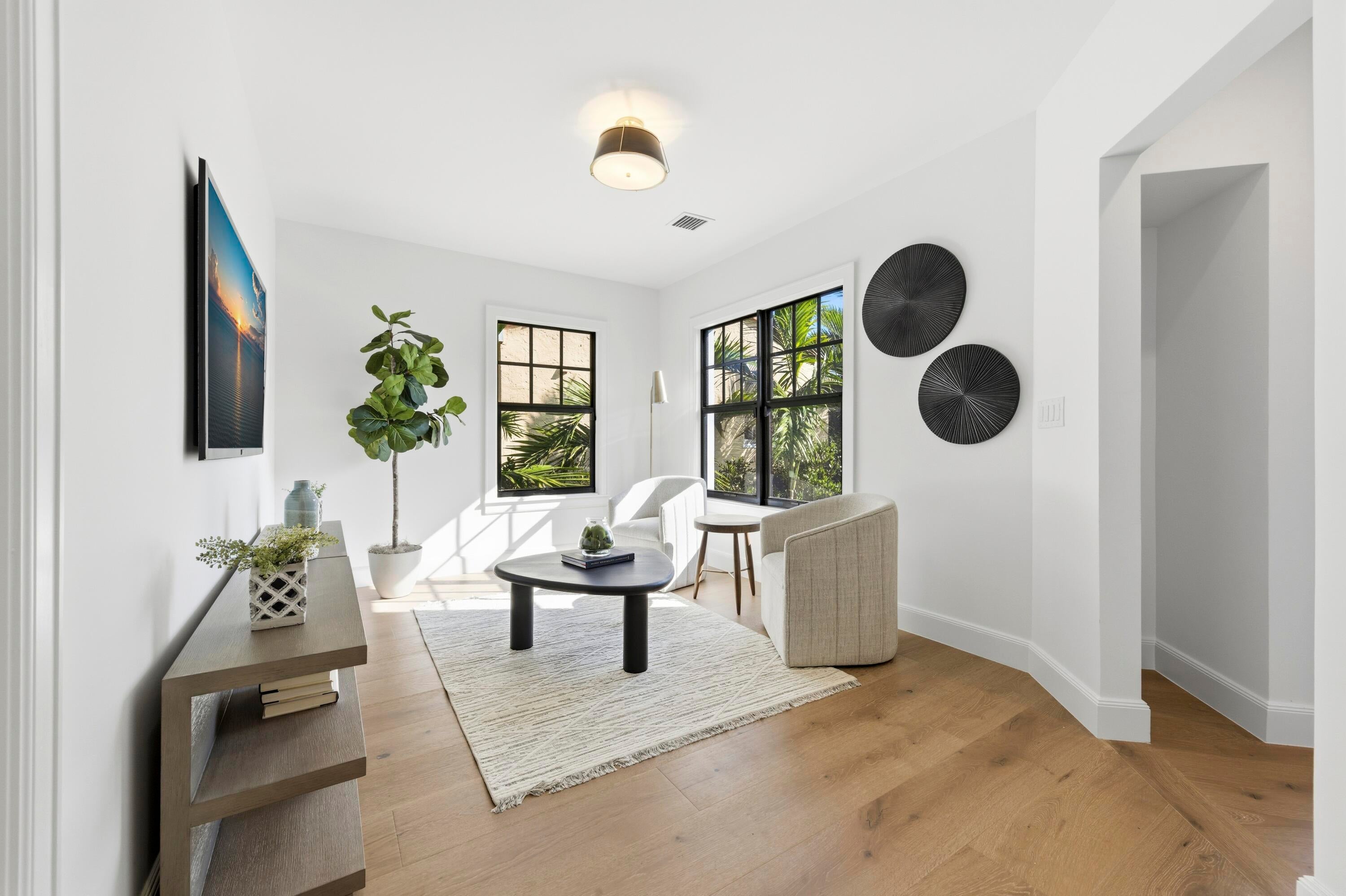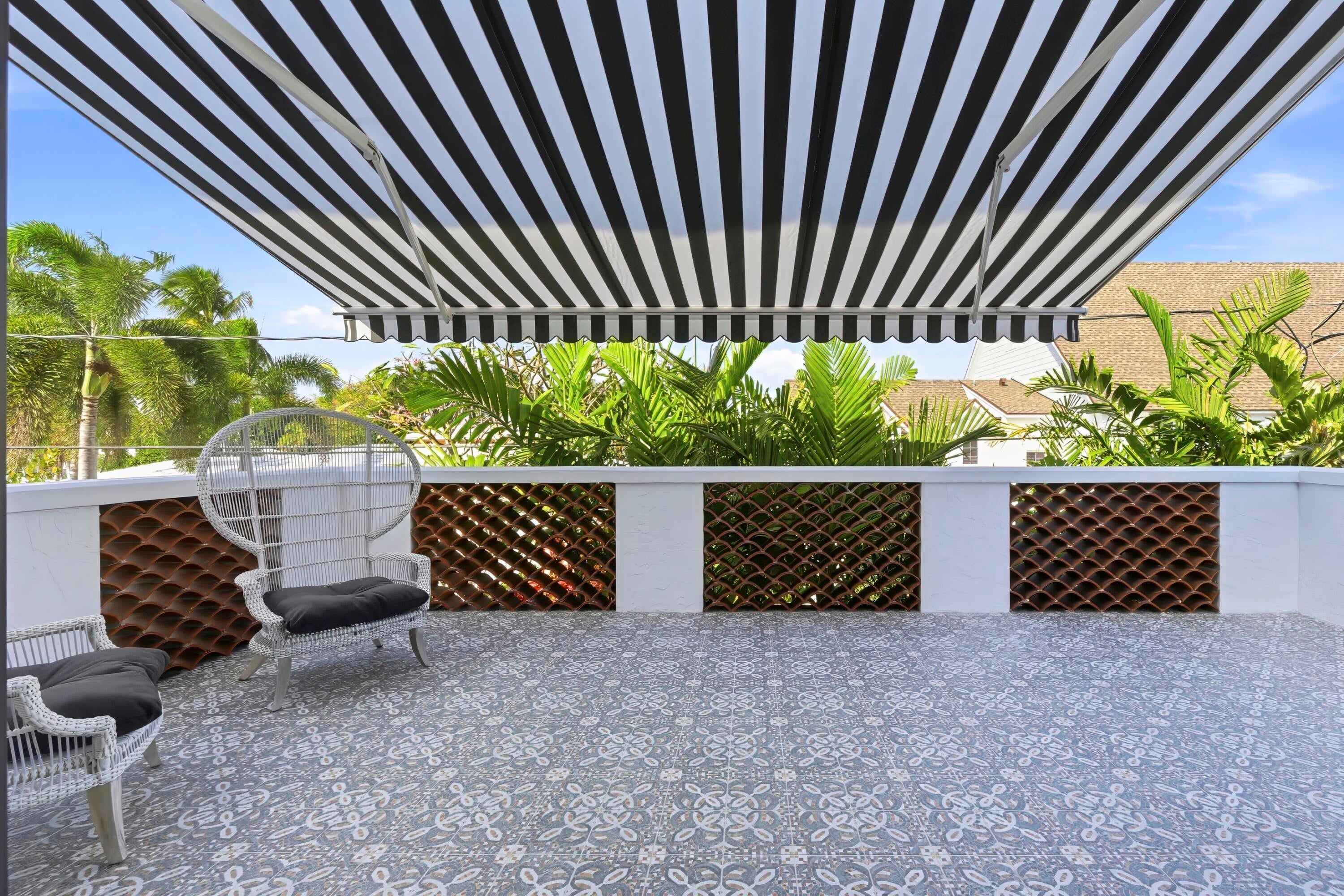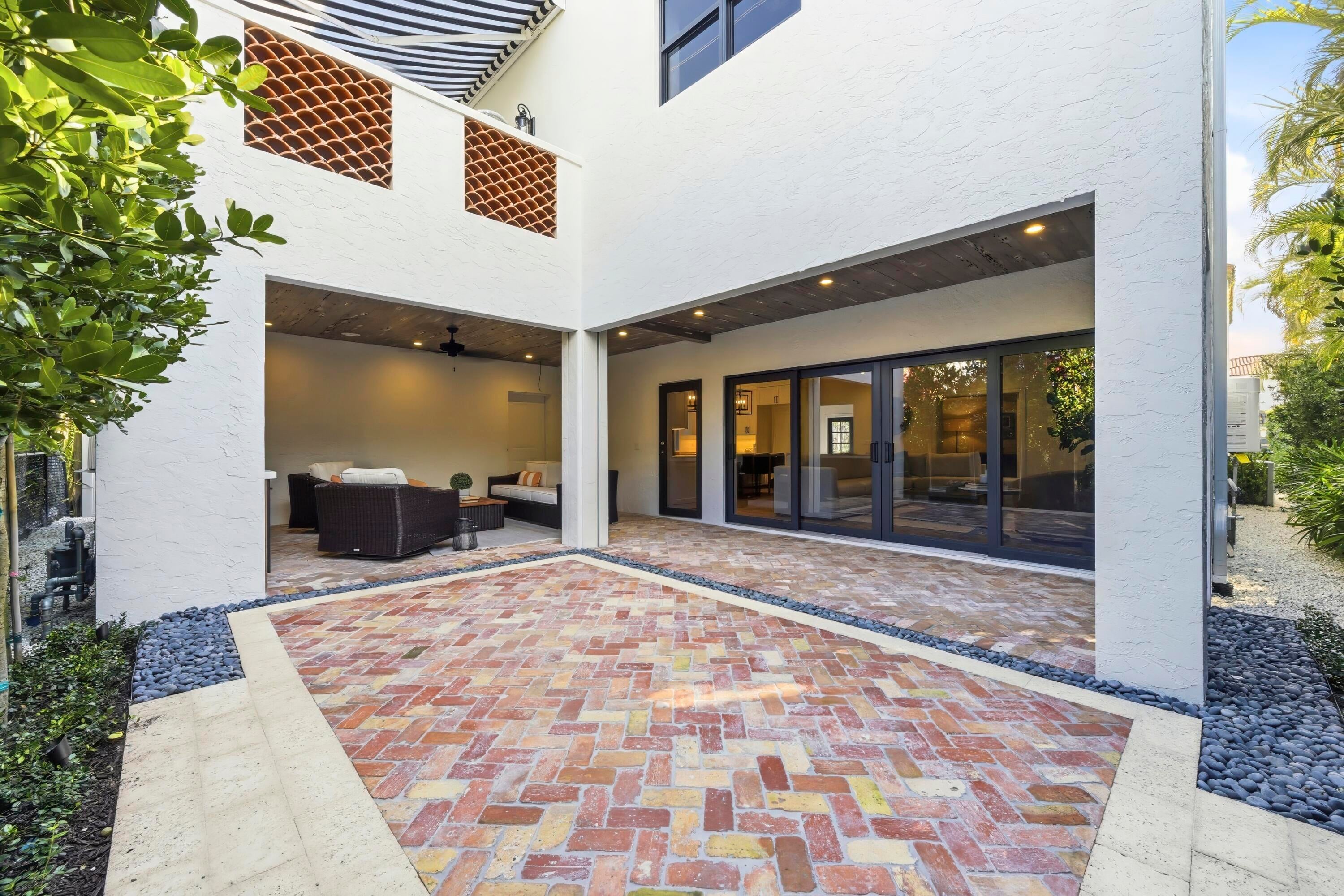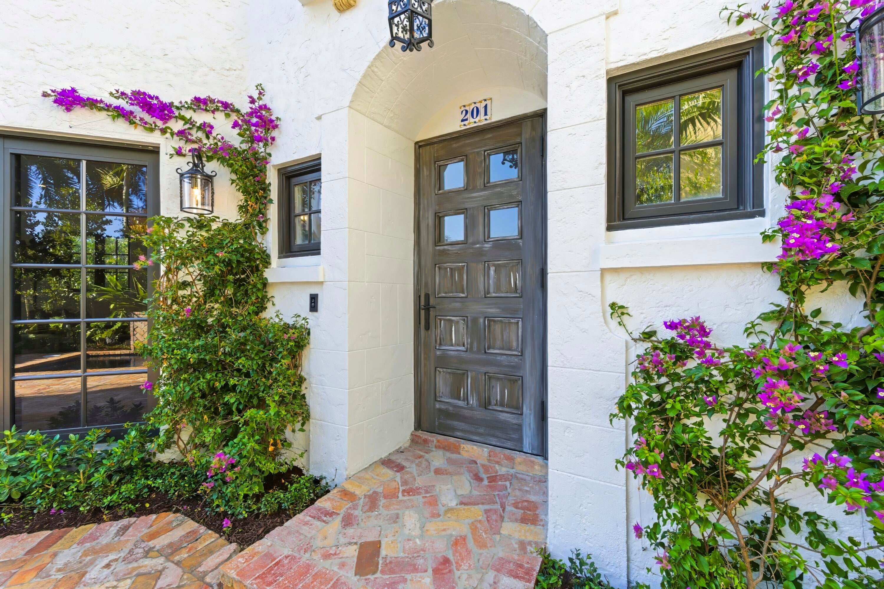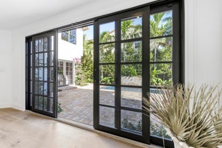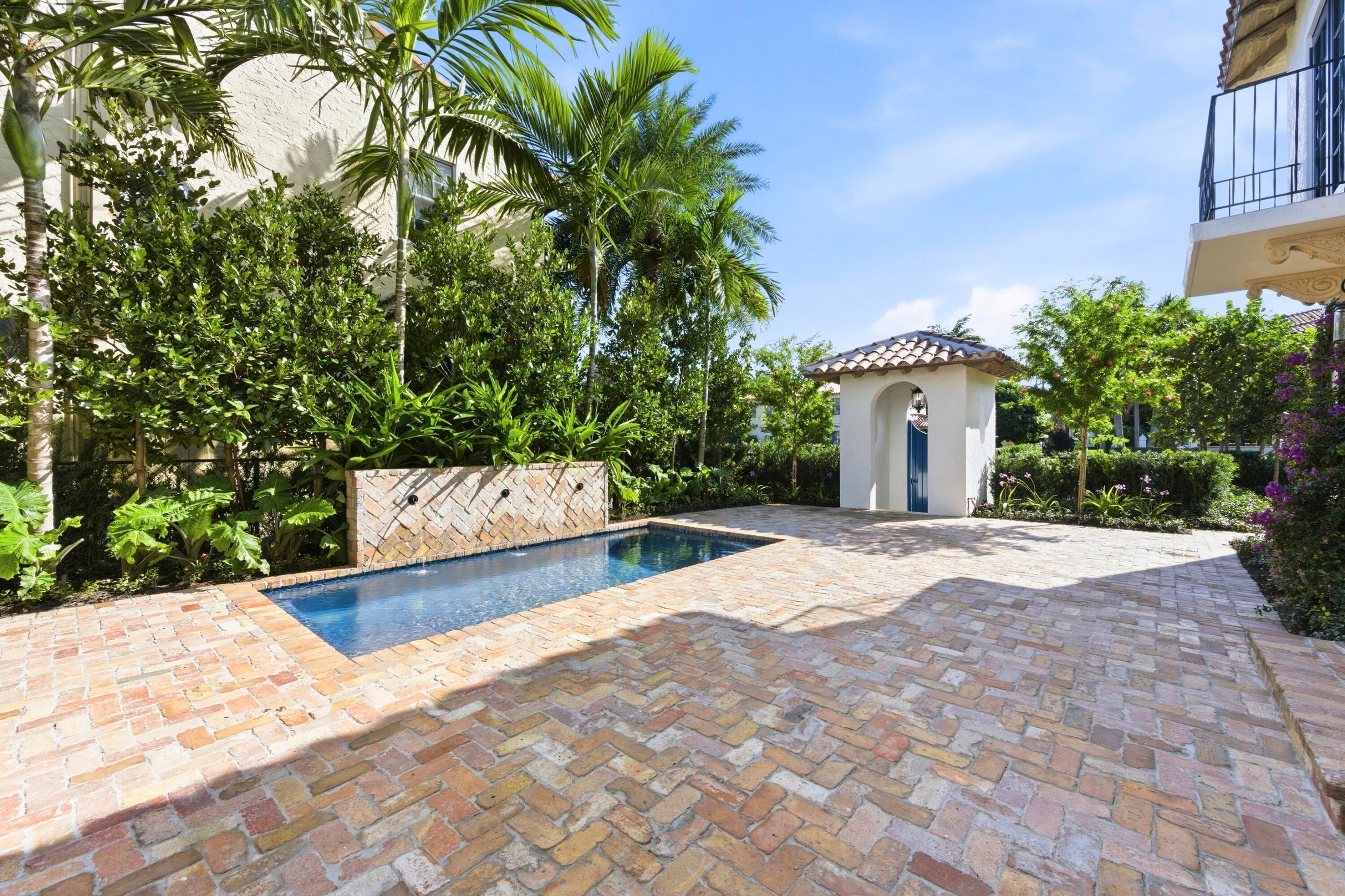Step into a world where elegance and Spanish-Mediterranean romance come together in perfect harmony. Originally built in 1926 and masterfully reimagined with a full renovation in 2025, this architectural jewel invites you through lush, manicured landscaping into a private Chicago-brick courtyard centered around a shimmering saltwater plunge pool with a tranquil water feature, a serene introduction to the timeless beauty within. Inside, the foyer welcomes you with a signature spiral staircase. At the focal point of the formal living room an original wood burning fireplace and expansive sliders that frame the courtyard and bathe the interiors in natural light. Adjacent, a warm and intimate den/office offers a quiet retreat.The formal dining room is a masterpiece of craftsmanship, featuring a custom built-in banquette, wall-to-wall cabinetry with pull-out drawers, and a floor-to-ceiling wine cooler, creating a setting worthy of unforgettable evenings. The kitchen exudes timeless sophistication with marble countertops, a full slab backsplash, and a Thermador stainless-steel appliance suite, including a 6-burner gas range with griddle, an exquisite stage for the true chef. A seamless transition leads to the inviting family room and club room, both opening to the home's rear courtyard, where a summer kitchen and roll-down phantom hurricane screens set the tone for effortless indoor-outdoor living. Around the property, mature Calophyllum trees form a natural privacy hedge, enveloping each courtyard in a world of its own. Even the lanai reflects uncompromising attention to detail, showcasing Pecky cypress tongue-and-groove ceilings that add texture, warmth, and architectural soul. A versatile bonus/storage room provides additional custom cabinetry, workspace, laminate floors, and a mini-split system, accessible from both the summer kitchen and side courtyard. Ascending to the second floor, you'll find four beautifully appointed ensuite bedrooms, each with its own palette of mosaic and marble tile selections, giving every space a unique sense of artistry and refinement. A charming sitting room/loft with a private balcony completes the upstairs haven, an intimate perch overlooking the estate's tranquil courtyards. The primary suite is a true retreat with an oversized private balcony, spa inspired bathroom and a custom walk-in closet. This redesigned 1926 treasure is more than a home; it is an escape into another world, where history, craftsmanship, and Mediterranean romance blend into an unforgettable living experience. Perfectly positioned within walking distance of Flagler Drive and the Intracoastal Waterway, this home offers a rare opportunity to own a piece of West Palm Beach history reborn for todays lifestyle.
