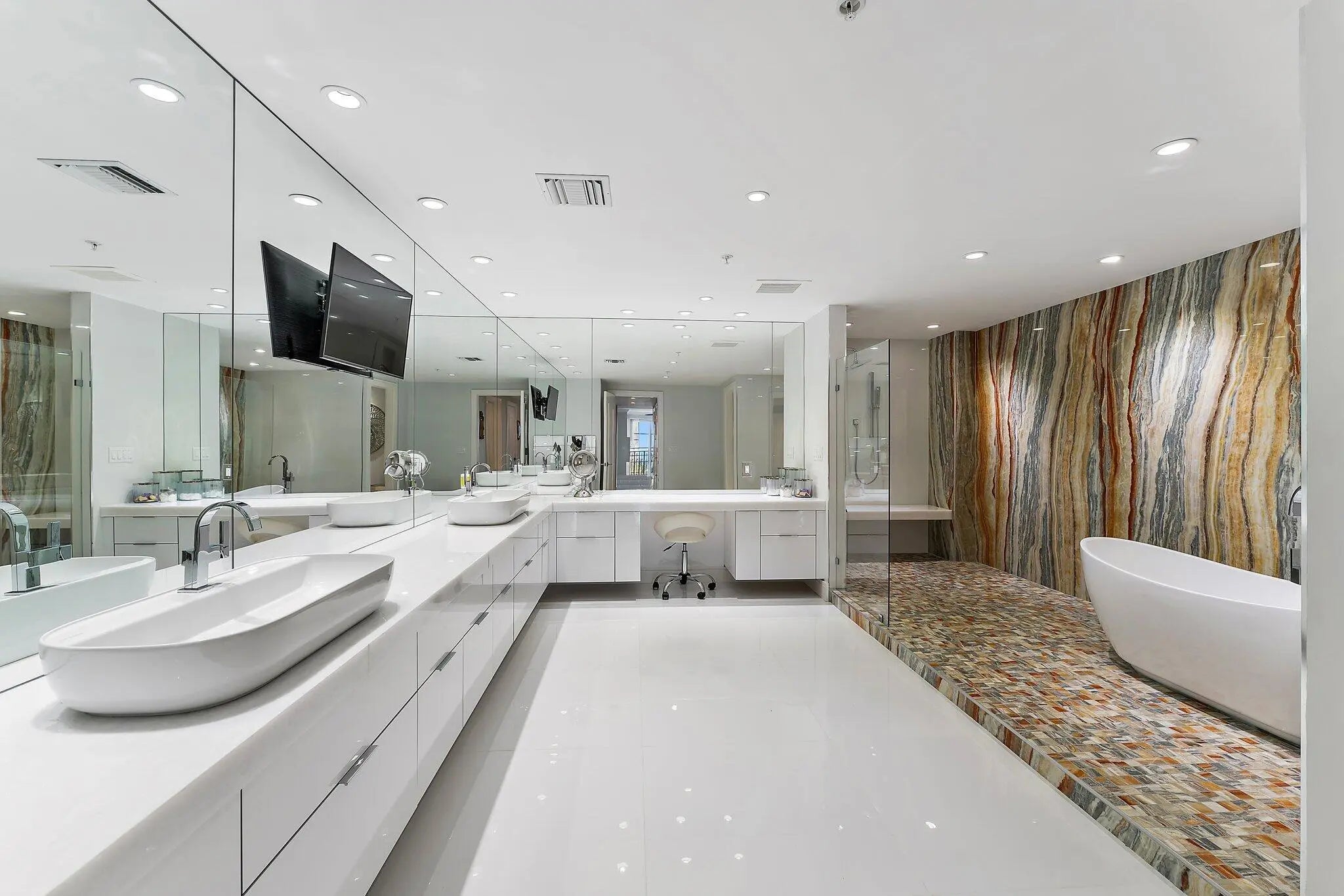 The finest oceanfront condominium in Palm Beach Shores' most exquisite boutique building. Only 34 luxurious residences situated on 2.7 lush beachfront acres. Rarely available 3/3.5 SE corner w/3,295 a/c sf and 771 sf of covered balconies. Breathtaking ocean views! This gracious, move-in ready residence has been the recipient of continuing high-end renovations, including: Kitchen remodel w/Sub-Zero, Wolf & Cove appliances, primary suite/bathroom remodel, custom built-ins, large format porcelain floors, powder rm & secondary baths upgrades, a/c units, etc. Resort-style amenities, including an amazing South Beach-style pool area. 150' of deep, sandy beach w/+/- 280' dune. 2 garage spaces, EV charging stations. Reserve Study Completed! No Assessments! Only 7 mi to Palm Beach, 13 mi to PBIA!