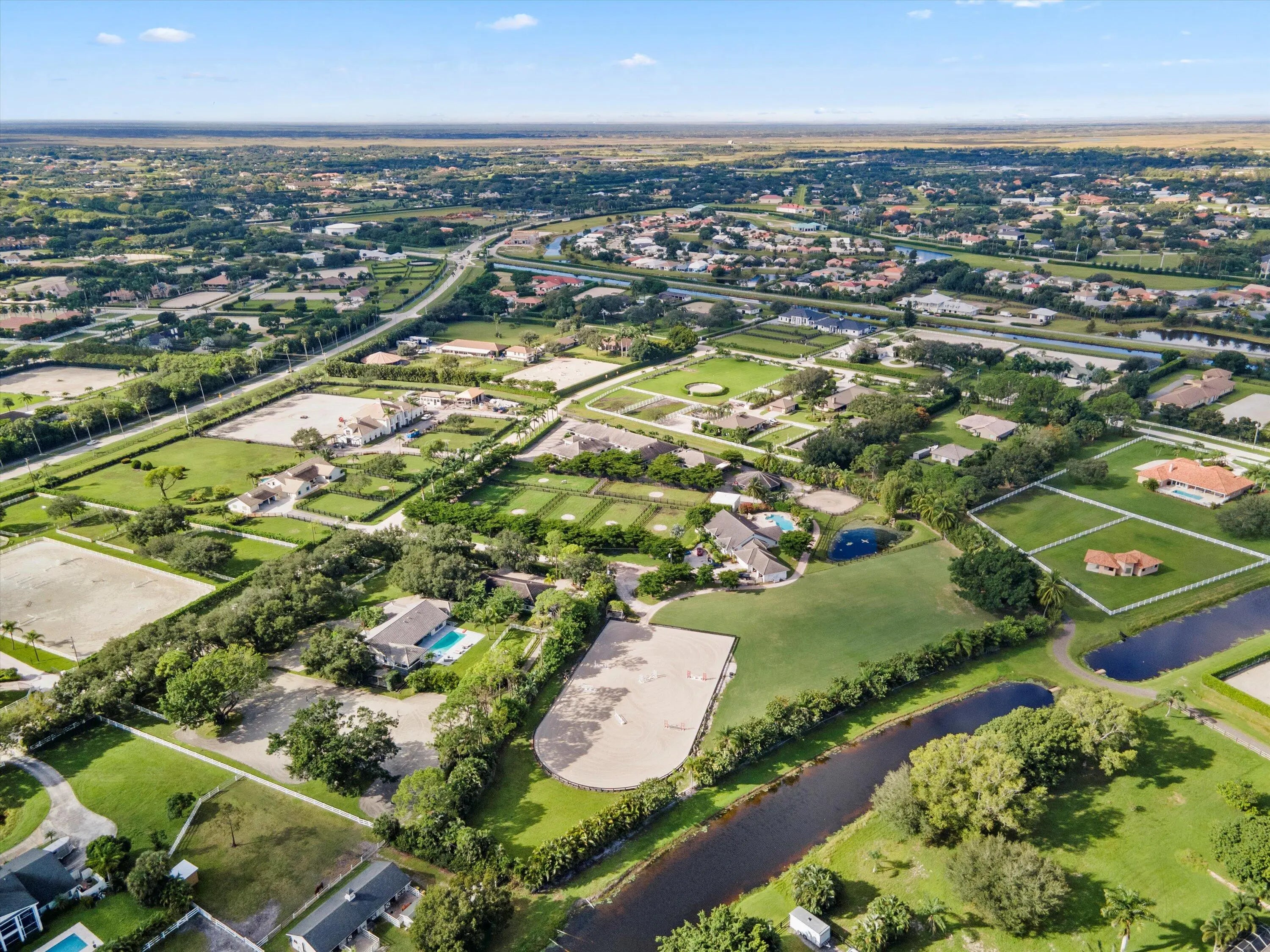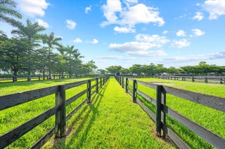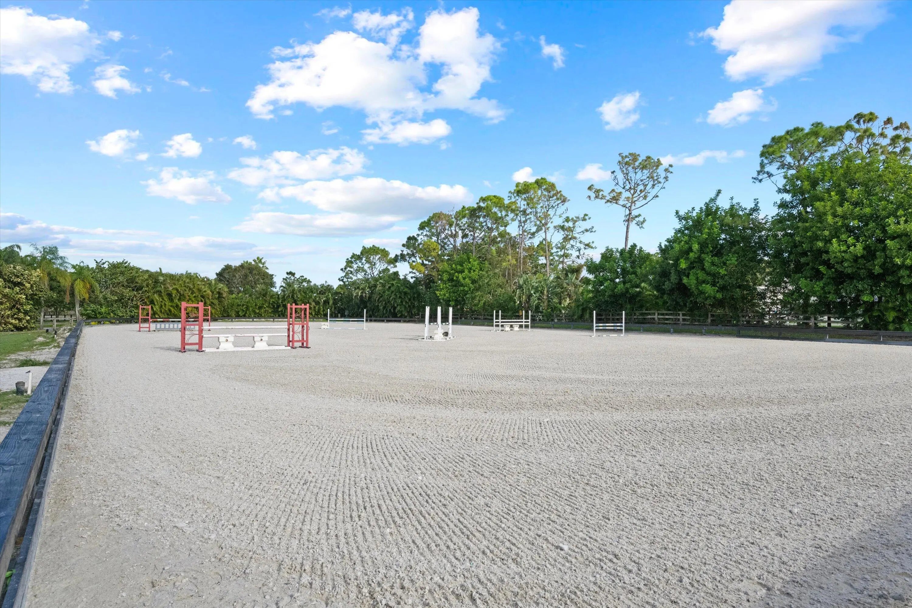 This 6-acre equestrian estate in Saddle Trail, is a top-tier facility for the professional equestrian, featuring 3 premium barns built in 2015 with 14,10 & 6 stalls respectively. All have extensive wash/groom stalls, feed rooms and tack rooms and feature Rower & Rub stalls. This facility comes with a solid lease income history. The arena is 115' x 215' fiber mix sub-irrigation with an adjacent 1 acre+ turfed grand prix field providing the ultimate in home site training. The 5 bedroom 3.5 bath pool home has a dedicated entrance. In total the property has 4 different entrances and great flow. The owners lounge with bathroom & kitchen provides a large social space. 7 large irrigated paddocks and a Kraft 6 horse covered walker. Property sits on the horse trail and is a true 15 min hack to WEF