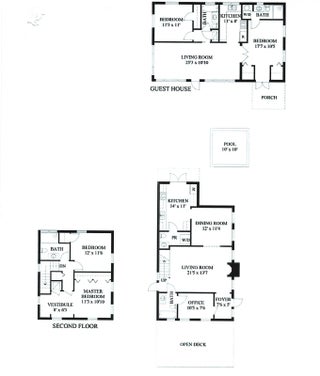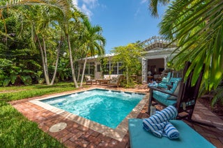Exceptional Key West style home with 5 bedrooms, 4.5 bath home located in Grandview Heights. Landmarked, with Original fireplace and hardwood floors adorn the main living room that leads to a dining room overlooking the backyard and pool. The first floor includes an office with a full bath that can be converted to a bedroom. The second floor features a spacious primary bedroom, an oversized renovated bathroom, and second bedroom. Outside, the property has been newly landscaped with tropical plantings, turf, patio area for entertaining, and a plunge pool that doubles as an oversized hot tub. The guest house has soaring ceiling heights in the living room with two bedrooms, two full baths, and an updated kitchen, mexican tile thru-out. The guesthouse is separately metered. Sold TURN-KEY