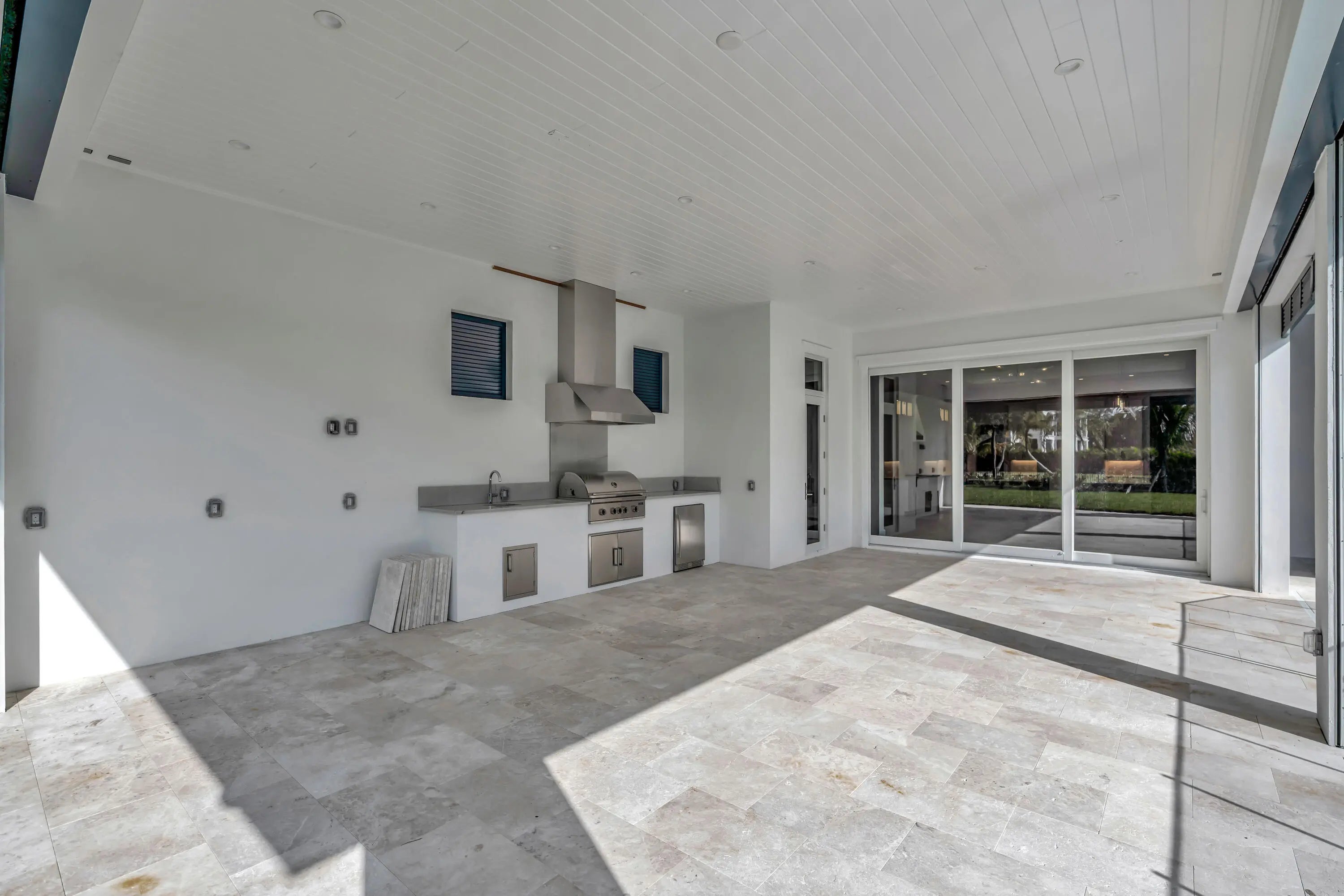 Built-in Grill, Custom Lighting, Fence, Screened Patio, Summer Kitchen, Zoned Sprinkler