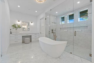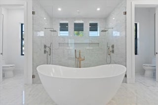 Waterfront New Construction! 5BR, one of which could serve as an Office, 6.1 BA, 2CG CBS home built with the finest and most Luxurious finishes (Floor Plans Attached). 90' of water frontage on a deep wide water canal. New 74' dock and 15k lb lift. Ocean access within minutes with no fixed bridges and a short walk to the beach. Abundant living space including great room, family room, formal dining room and dual master suites. 12'x35' heated pool/spa with large sundeck. A dream gourmet kitchen offers a Thermador 6 burner sealed Gas stainless steel cooktop, Thermador stainless steel 30'' built in double convection ovens, Thermador 48'' fridge/freezer, dual Thermador dishwashers, microwave oven and a spacious pantry. The kitchen features - See Supplement...