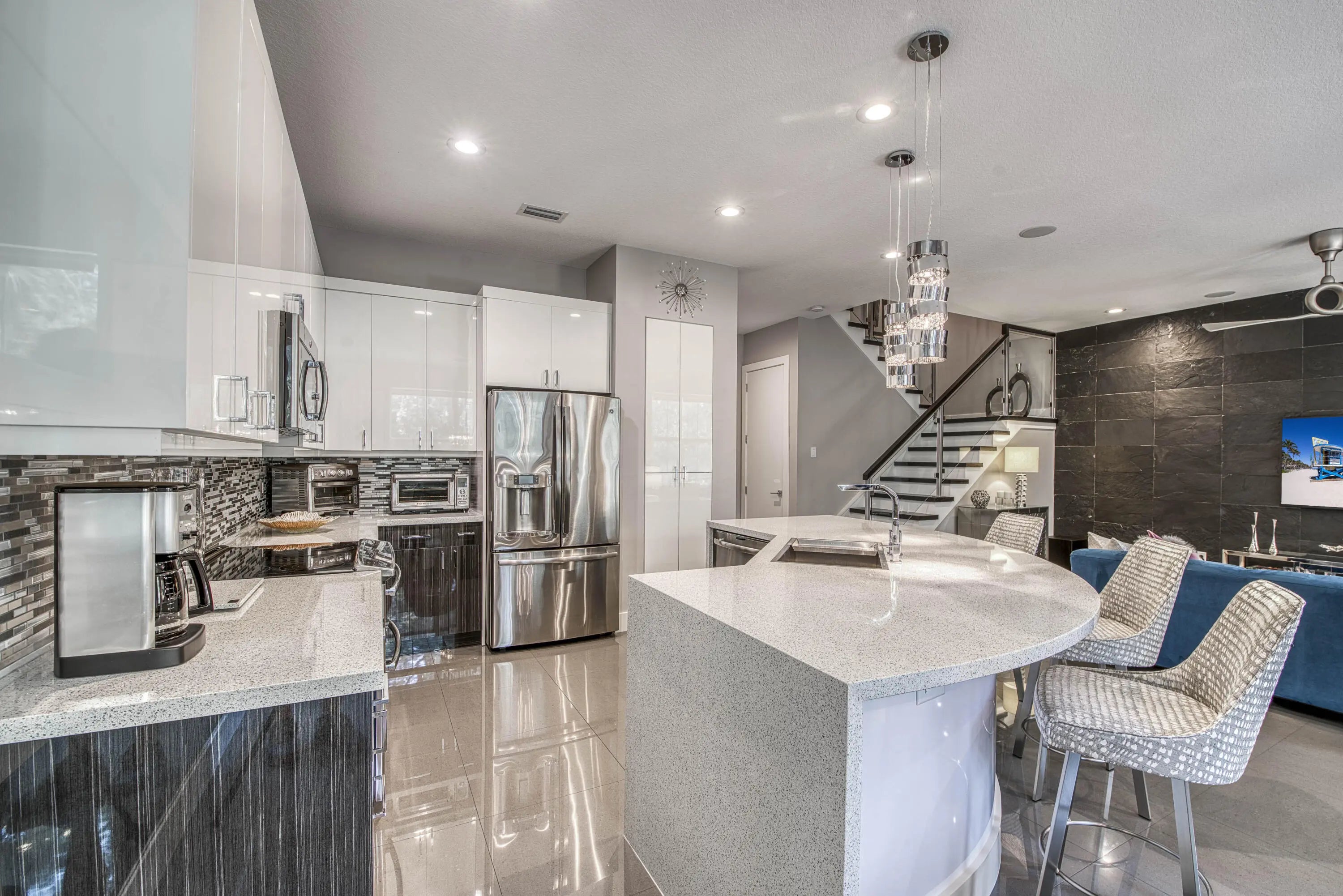 PRICE IMPROVEMENT! | Stunning 3-Bedroom, 2.5-Bath Modern Townhouse with Preserve Views at Hampton Cay | Completely renovated, this exquisite townhouse offers luxury living and craftsmanship to the highest standard. The home features a custom glass staircase, a chef's kitchen with quartz countertops & stainless-steel appliances, porcelain tile flooring throughout, complete hurricane impact windows and three exterior balconies featured in each bedroom. The primary suite boasts a spa-like bath with a freestanding soaking tub and walk-in shower. The foyer area features a show-stopping powder room including a sparkling stone accent wall, while elegant lighting with crystal chandeliers adds a sophisticated touch. Each bedroom is equipped with custom closets and exterior balconies.