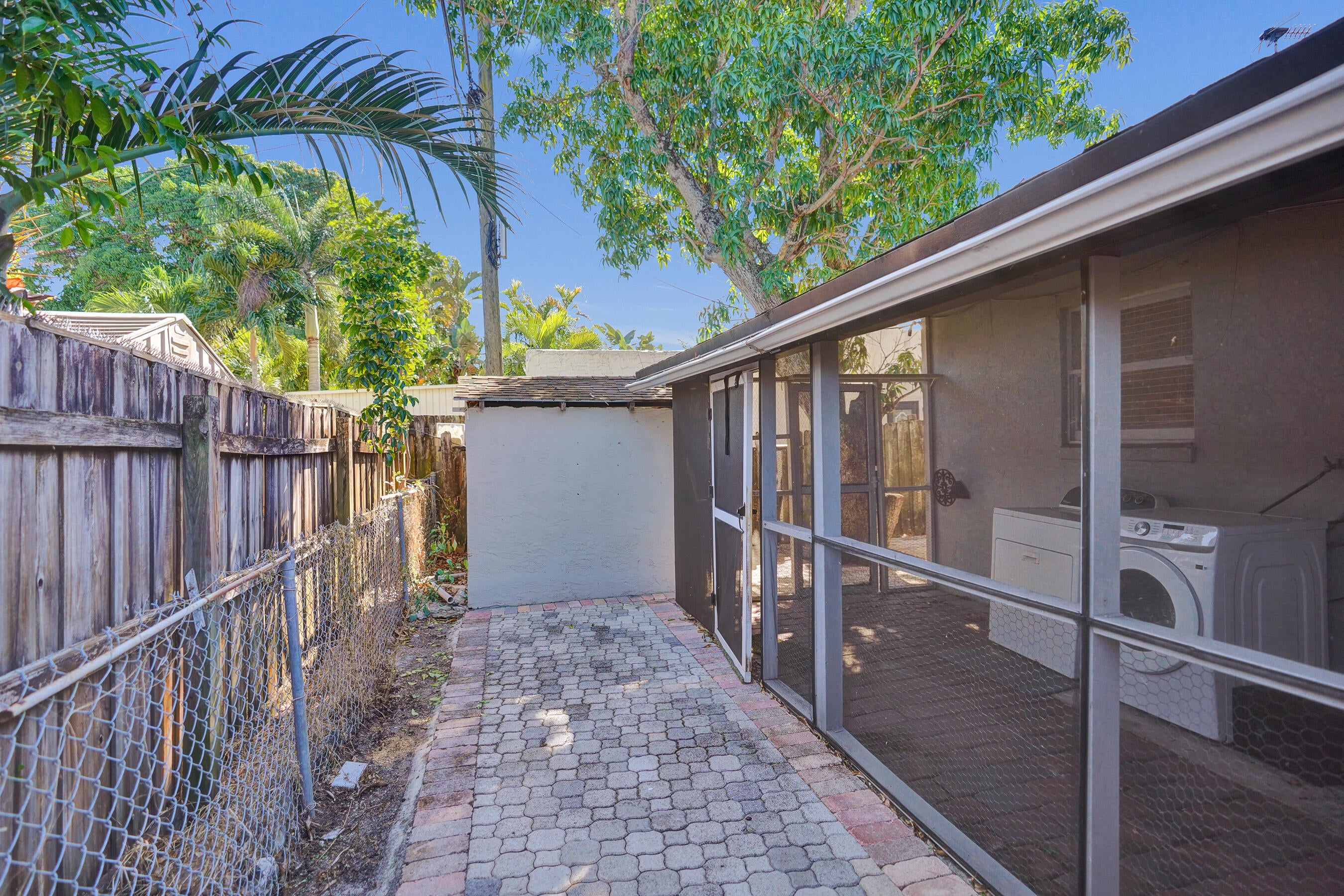 Take a look at this well maintained two bedroom two bathroom home on Garden Avenue in West Palm Beach, listed as a true duplex. This property offers a comfortable layout with plenty of natural light and a welcoming feel throughout. The home has been thoughtfully updated with modern finishes including renovated kitchen cabinets, quartz countertops, and stainless steel appliances. You also have the convenience of an in unit washer and dryer plus a screened patio that provides a relaxing outdoor space.The property sits on a generous lot with room for pets, gardening, or future enhancements. The driveway has been recently resurfaced and a vinyl fence is currently in permitting which will add even more privacy for the next owner.