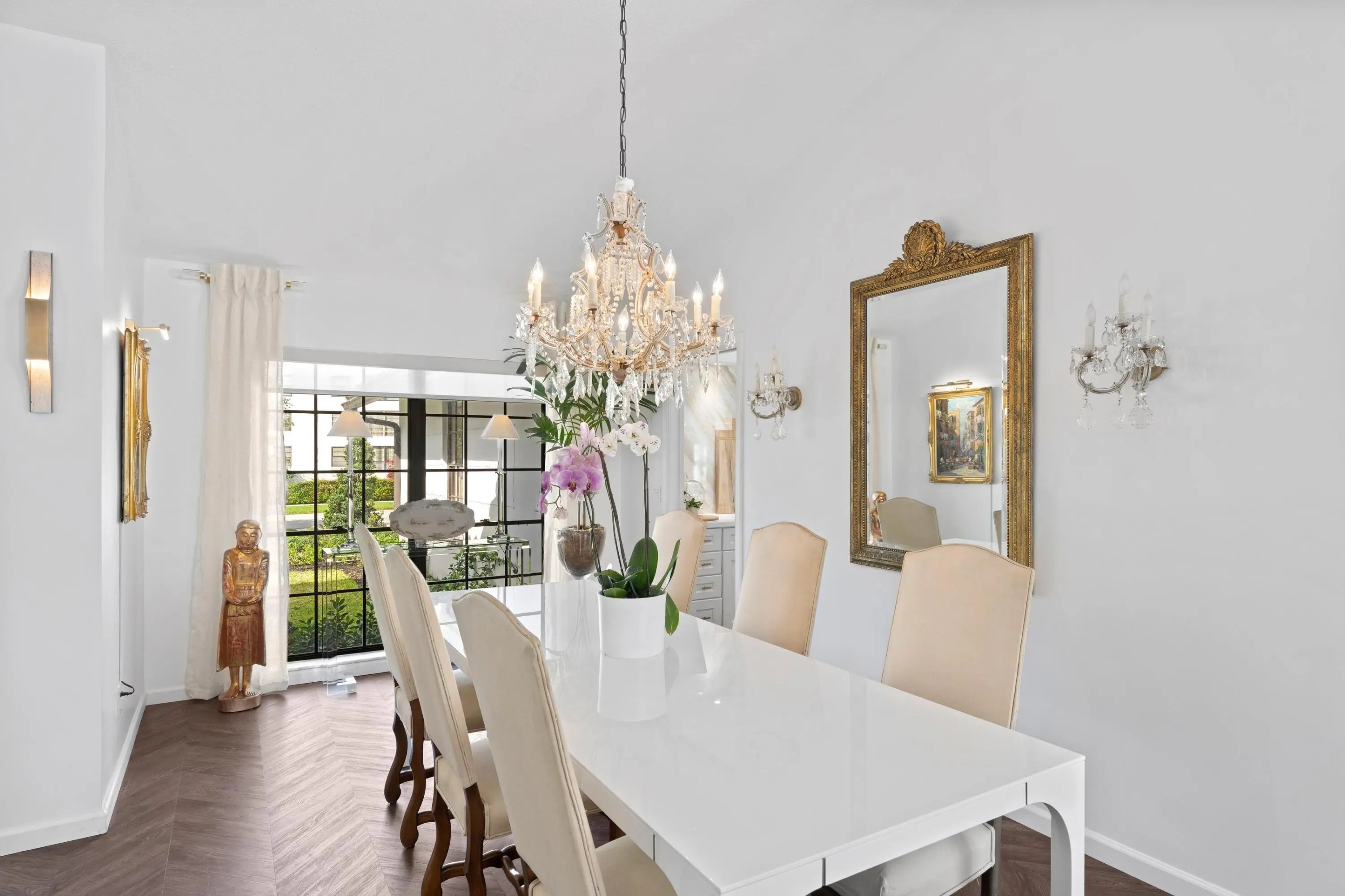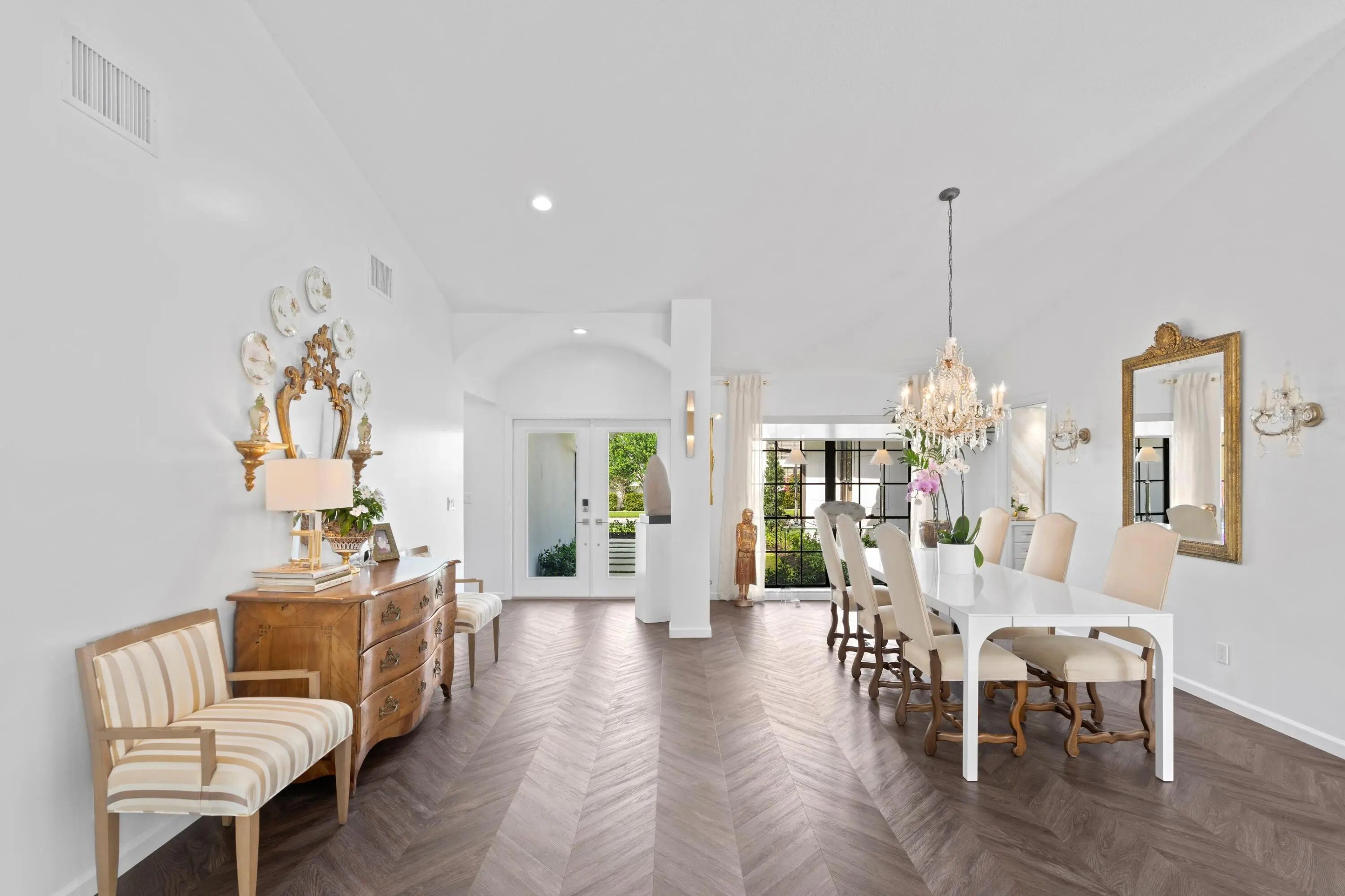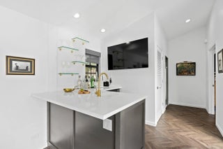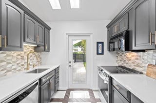 Beautifully updated direct lakefront home in Presidential Estates. A large one story contemporary home, with a large open floor plan. Chef's kitchen w/ gas cooktop., and large center island. 4 bedrooms, 3 baths, a mother-in-law guest suite, its own entrance, full bath, and 2nd kitchen that is great for catering, Luxury waterproof vinyl flooring throughout the home, vaulted ceilings in living areas, formal dining area, and office. The master suite has marble flooring, and tile, with soaking tub, and separate shower, and custom build in closets. All living areas look out to the water view, and expansive backyard, and pool deck. The kitchen opens to a marble paved patio for outdoor dining, and grilling. 2 car garage, many updated impact glass doors, and solid concrete block construction.