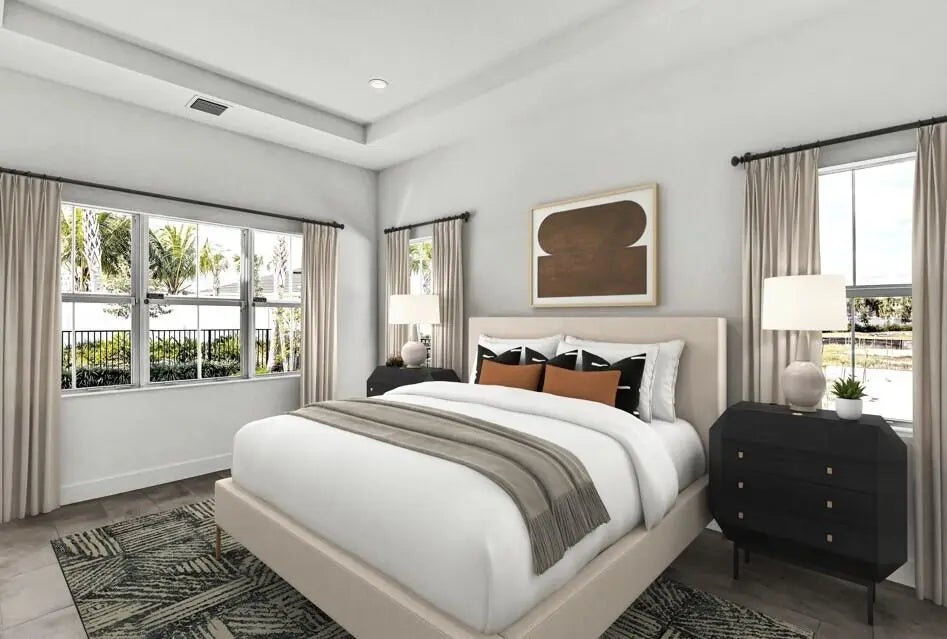 Welcome to your brand-new Maya floorplan in the gated, amenity-rich Regency at Avenir community of Palm Beach Gardens!This newly built single-story residence offers 3 bedrooms, 2.5 bathrooms, and approx. 2,372 sq ft of living space -- ideal for those seeking low-maintenance, single-level living with modern finishes.Step inside to an inviting foyer and open-concept living area with tile flooring throughout and abundant natural light. The home features a spacious kitchen with built-in gas range and oven, ample cabinetry, a pantry, and a seamless kitchen-dining-to-great room flow -- perfect for everyday living or entertaining. The primary suite offers generous proportions and comfort, complemented by two additional bedrooms and a convenient half-bath for guests. Outside, enjoy the Flo
