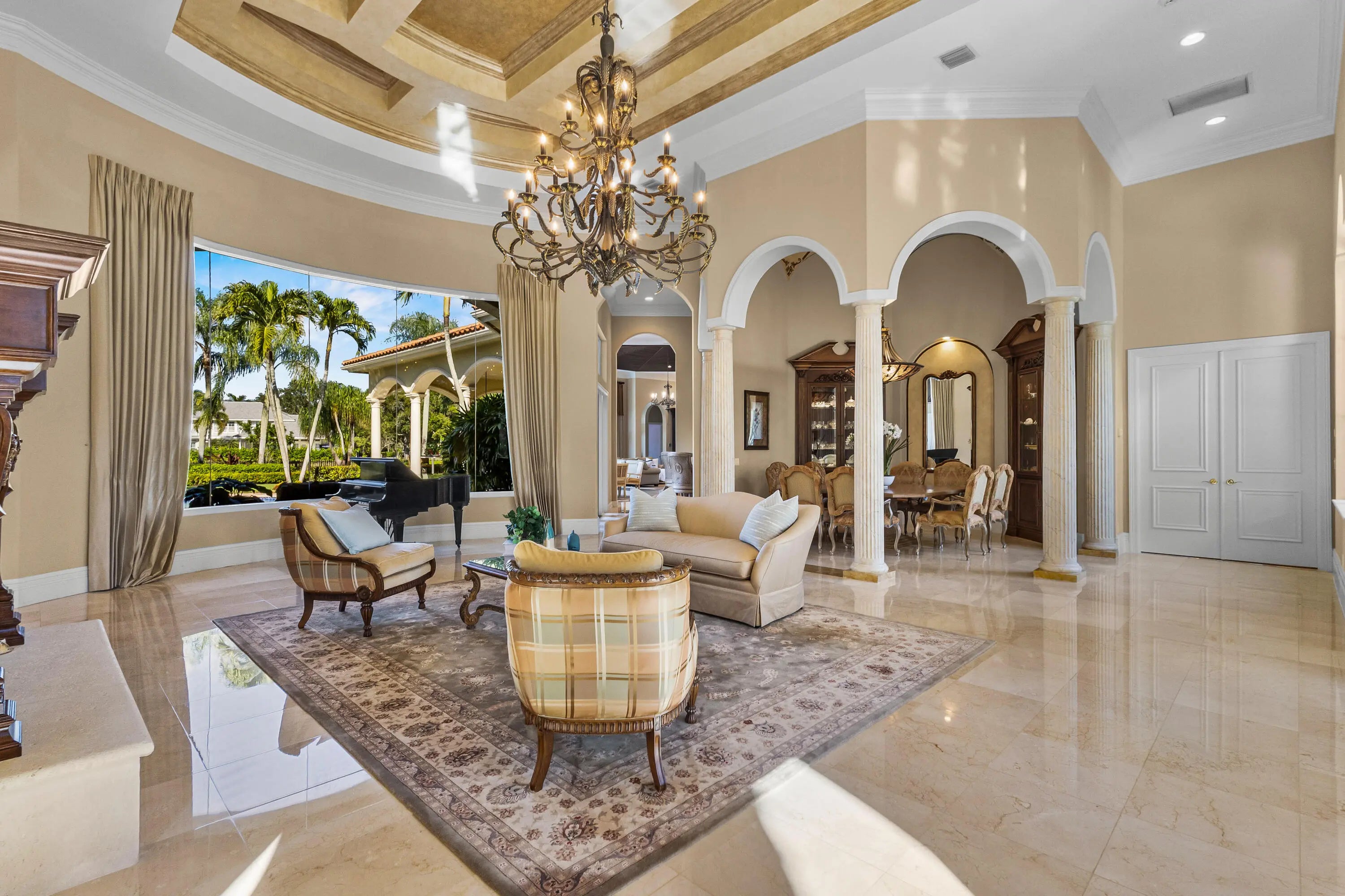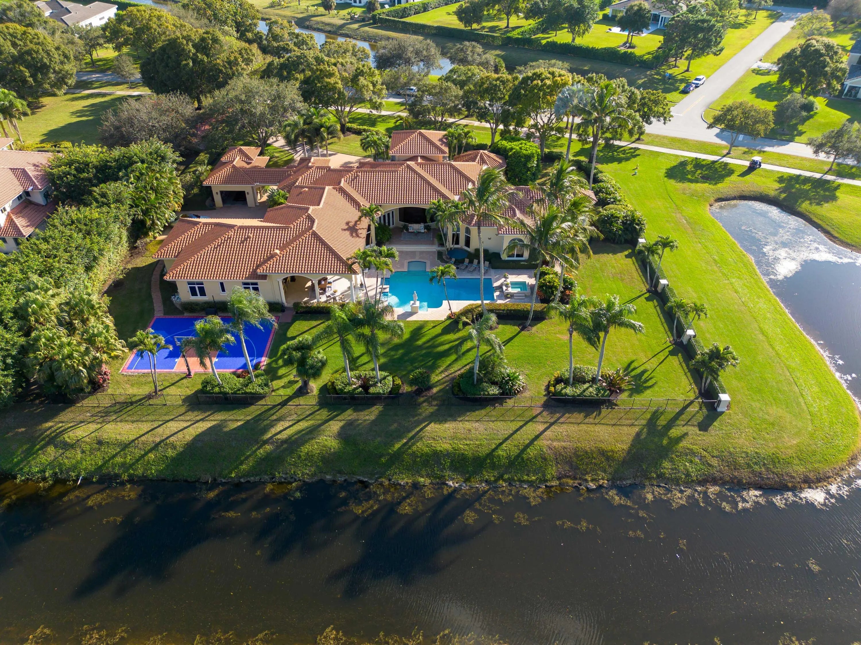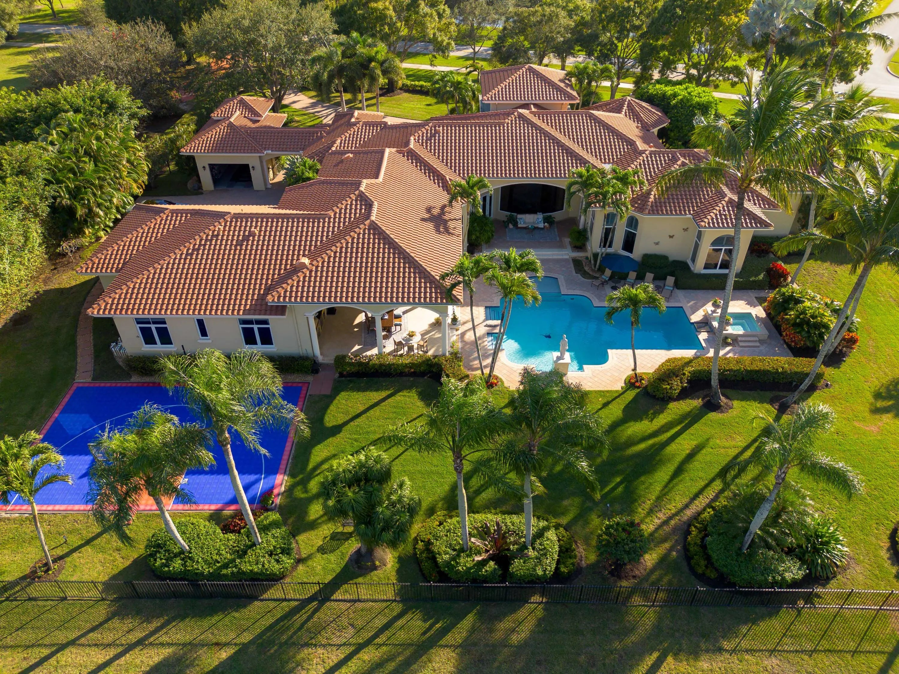 Welcome to a Mediterranean-inspired masterpiece in the prestigious gated community of Steeplechase Estates. Set on a private and beautifully landscaped 1.25-acre lot, this one-story estate offers 6 bedrooms, 5.1 bathrooms, and 6,780 sq ft of custom-crafted elegance and a 2024 roof. The 3-car garage features a 6,500-lb lift, providing true 4-car capability. Outdoors, enjoy lush landscape lighting, a resort-style freshly resurfaced pool, expansive entertaining areas, fenced grounds, and your own sports court. Every detail--from the refined finishes to the thoughtful upgrades--has been carefully curated. A rare opportunity to own a private luxury retreat in Steeplechase. Come experience it today.