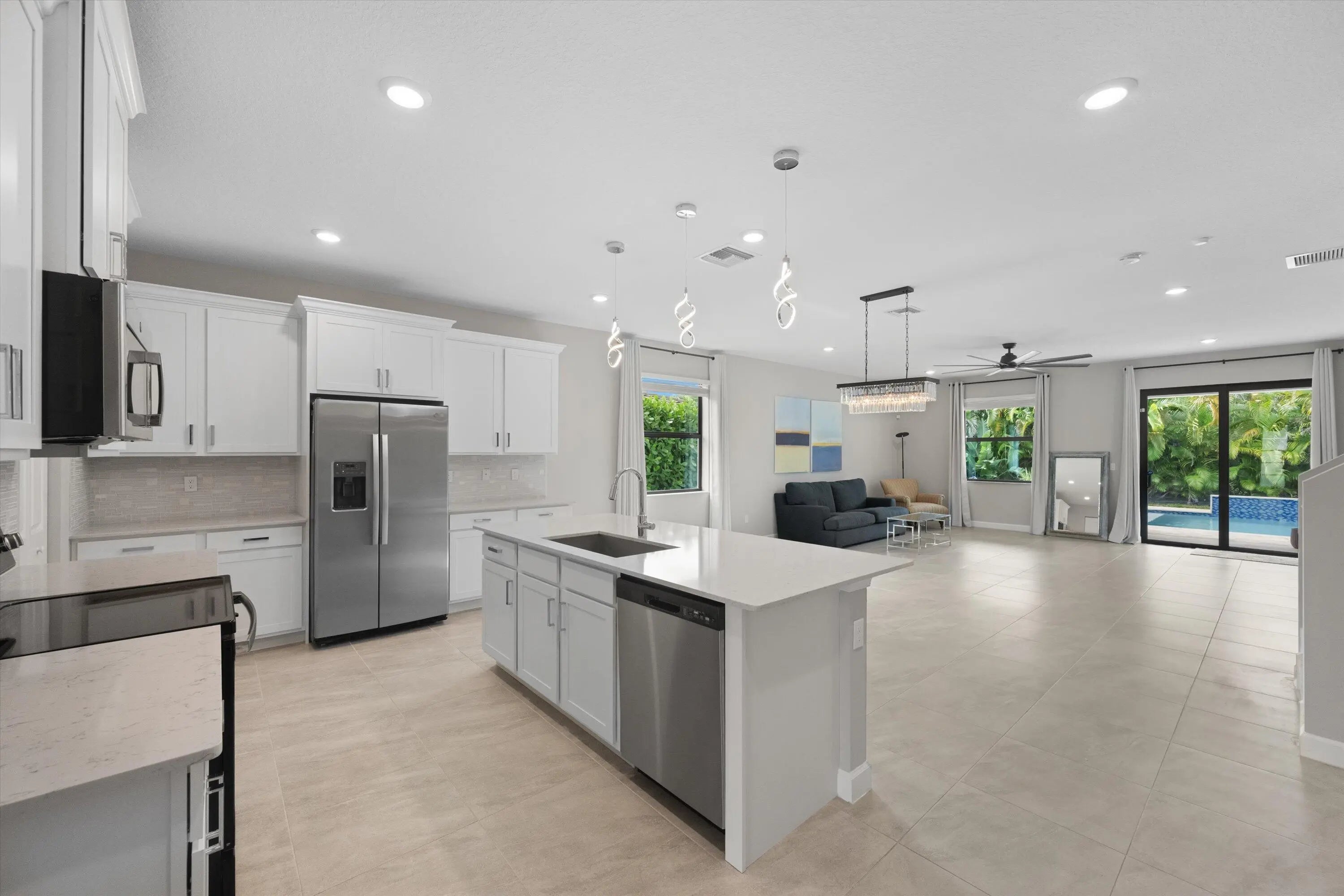 Stunning 5-Bedroom Home with Loft, Den & New Pool - Built in 2022 | 3,185 Sq Ft Under AirThis beautifully maintained 5-bedroom home with a loft, den, and newly installed pool offers 3,185 sq ft of living space under air and an exceptional layout. Built in 2022 and owned by only one owner, the property lives like brand-new construction and includes impact windows and a new roof.The primary bedroom is conveniently located on the main level and features generous closet space and a well-appointed en-suite bath with a separate shower. The state-of-the-art kitchen includes GE appliances, white cabinetry, quartz countertops, and an oversized walk-in pantry. A bright den/office and a laundry room with new front-load washer and dryer are also located on the first floor, along additional