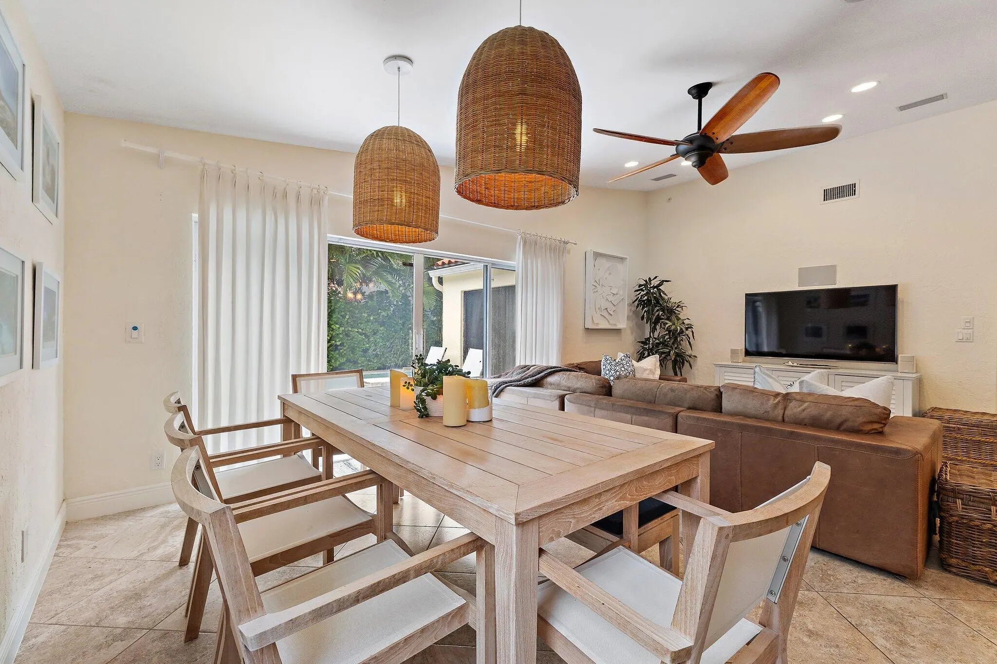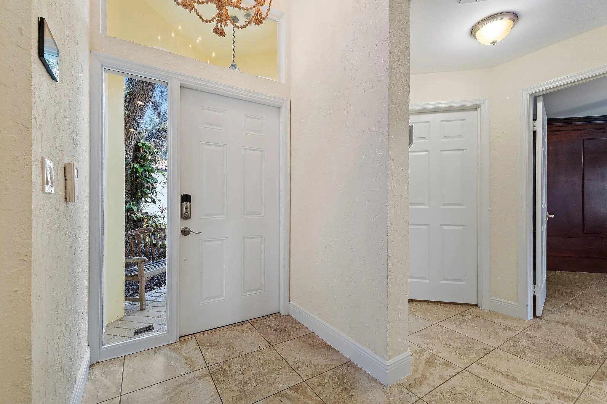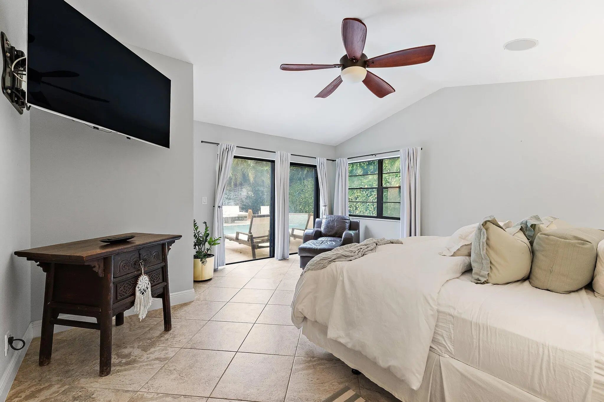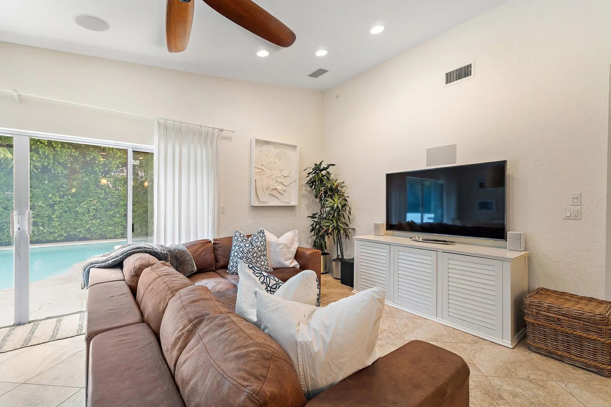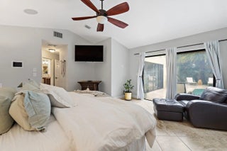 Set behind the manned gates of Crystal Pointe, this single-level CBS pool home sits on one of the community's largest lots, driveways, and yards, giving you privacy and parking rarely found in a zero-lot neighborhood. Inside, vaulted ceilings and a spacious great room flow into an open kitchen with soft-close cabinetry, granite counters, an induction cooktop, and an oversized sink. The spa-inspired primary suite features marble finishes, quartz counters, a steam-ready shower with rain head, air-jet tub, and Toto toilet.Recent upgrades include a 2015 Trane A/C, smart-home features (Ceiling speakers, Crestron controls, lighting and bath timers), seamless gutters (2024), new irrigation and landscaping (2022), and a new electrical panel plus refrigerator (2025)