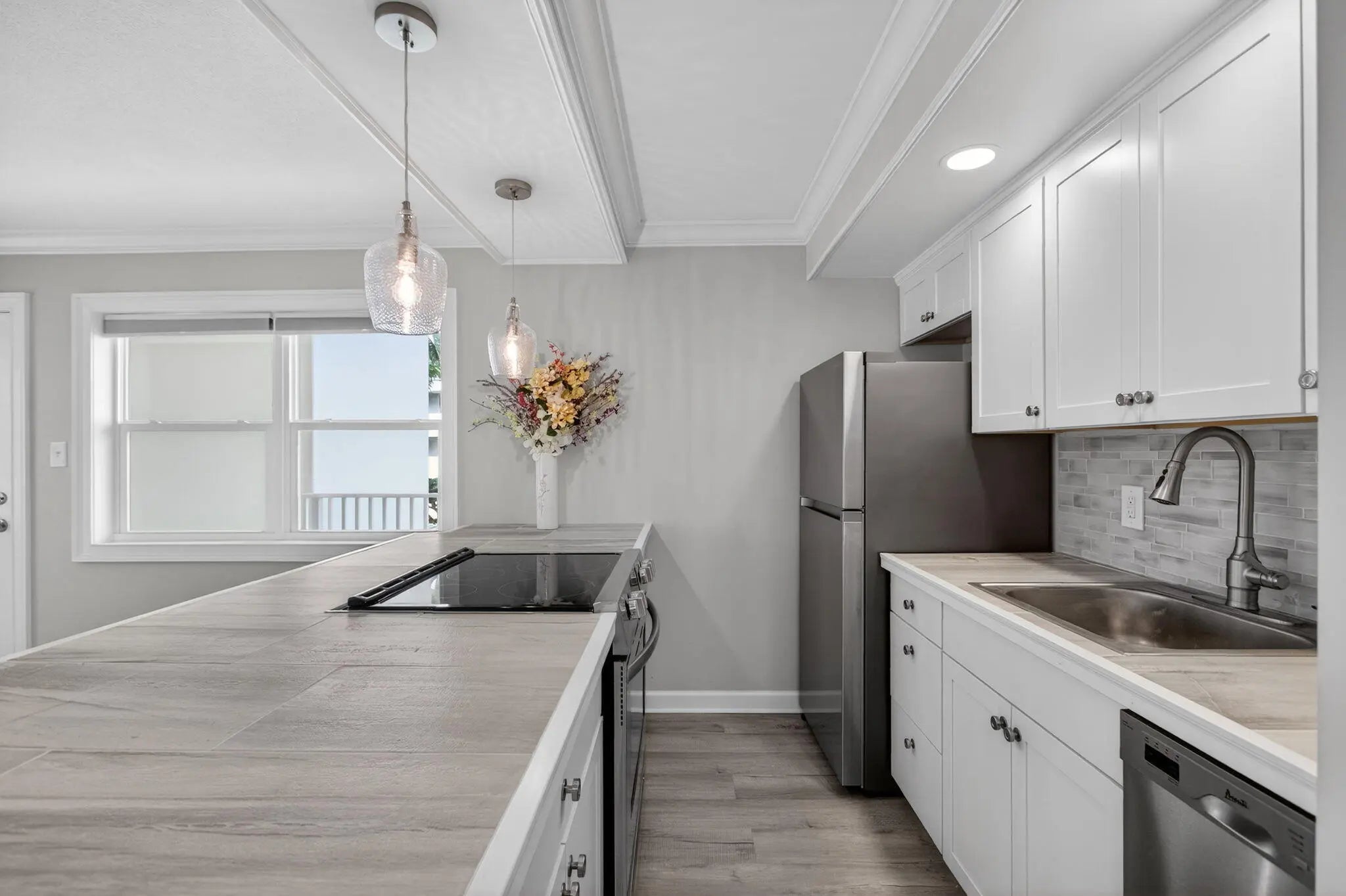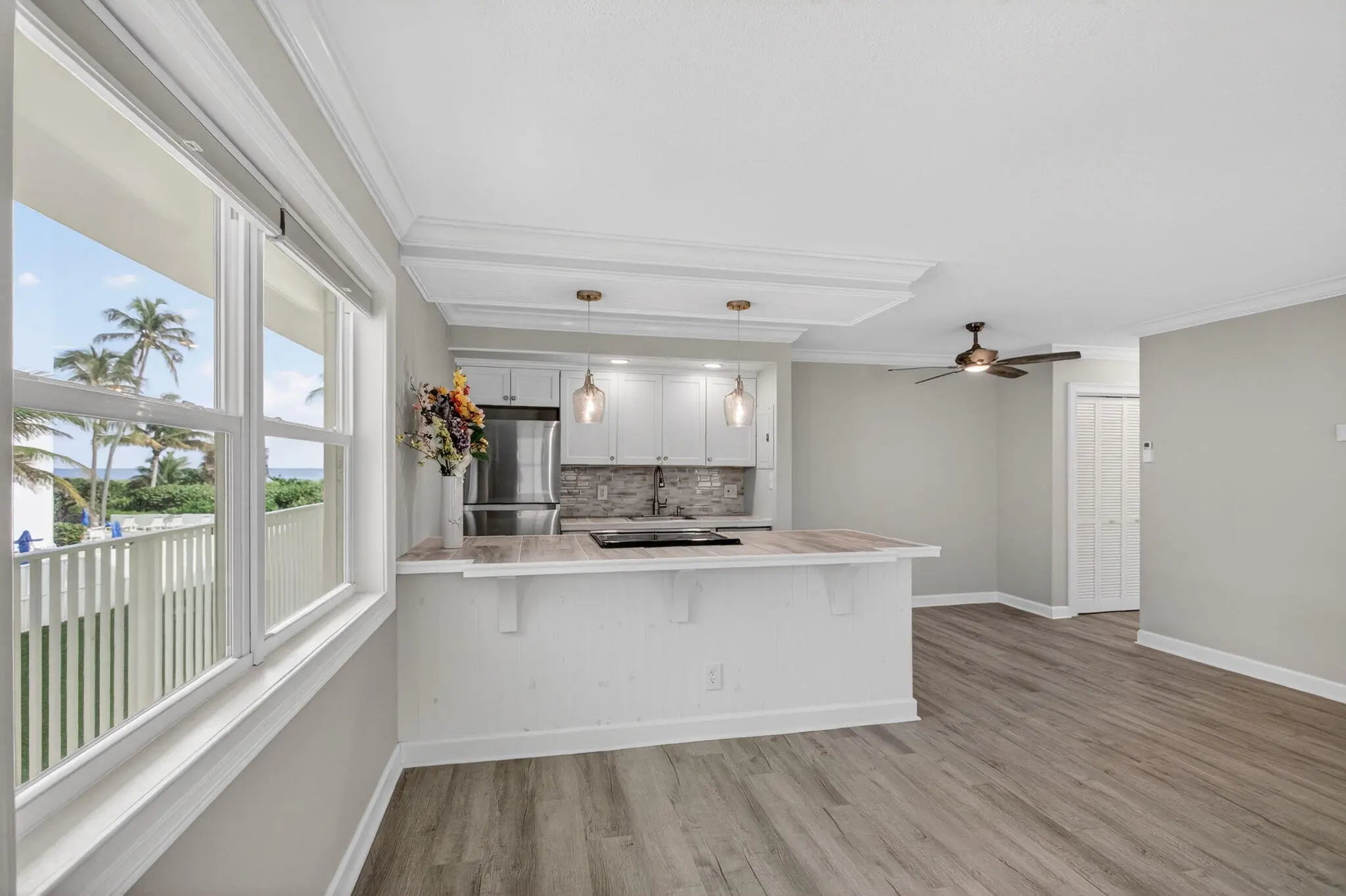 ✨ Singer Island - Renovated 1BR Oasis with Patio & Garden Views ✨Recently renovated from top to bottom, this beautifully updated 1BR/1BA residence offers tranquil landscaped views from a spacious screened-in patio--perfect for morning coffee or relaxing evenings. The home features all-new impact windows and sliders, an open-concept kitchen with custom cabinetry and upgraded appliances, newer A/C and water heater, wide-plank flooring, and designer tilework throughout. The bathroom has been tastefully updated with Moen fixtures and modern lighting. Washer/dryer hookup in place for your convenience.Enjoy a heated community pool, 1 assigned parking space (#54), and ample guest parking. Ideally located--walk or bike to local restaurants, shops, and island activities.