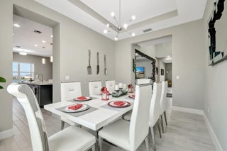 Single-story Contemporary Florida home with a transitional interior, set on one of the most desirable lakefront lots in The Orchards at Westlake! This Sandhill model offers approximately 100 feet of water frontage, a private heated pool, fully fenced backyard, and an oversized side yard! The open floor plan features porcelain tile flooring, a large kitchen island with pool and lake views, breakfast nook, and a formal dining room! Gas service supplies the kitchen range and water heater. The three-car garage includes a finished epoxy floor, with an indoor laundry room nearby. Three well-proportioned bedrooms + Den include a primary suite with lake views. A rare combination of lot size, water frontage, and functional single-story living!Set on a standout lakefront homesite in The Orchards, this Sandhill model delivers the kind of lot, layout, and outdoor living that rarely align in one package. With approximately 100 feet of lake frontage, a private pool, a fully fenced backyard, and an oversized side yard, you get space to actually livehost, unwind, let pets run, and enjoy wide-open water views that make everyday feel like a getaway. From the moment you arrive, the 3-car garage and crisp curb presence set the tone. Inside you find a bright, open interior finished with porcelain tile flooring and an easy, functional flow that works for both daily life and entertaining. The heart of the home is the kitchenanchored by a large center island and positioned to capture pool + lake views from the kitchen and breakfast nook. Whether you're making coffee in the morning or serving guests at night, the view is part of the experience! The home features a gas water heater and gas range, providing efficient performance and reliable everyday use. The floor plan offers flexibility and separation with a formal dining room for holidays and dinner parties, plus open living spaces that connect seamlessly to the outdoor area. The backyard is the showpiece: a heated pool with an extended deck designed for lounging, grilling, and sunset evenings by the waterwithout giving up privacy thanks to the fencing and the generous lot dimensions! Practical upgrades are here too, including a finished epoxy garage floor that looks sharp and stands up to real use. The indoor laundry room is thoughtfully placed near the garageexactly where you want it for backpacks, groceries, and day-to-day convenience. The bedroom layout features three generously sized bedrooms + a Den, highlighted by a primary suite that feels like a retreatcomplete with lake views to start and end your day on a calmer note. If you want a Westlake home that truly stands apart for lot size, lake frontage, pool lifestyle, and a clean, upgraded interior, this is the one to see in person!