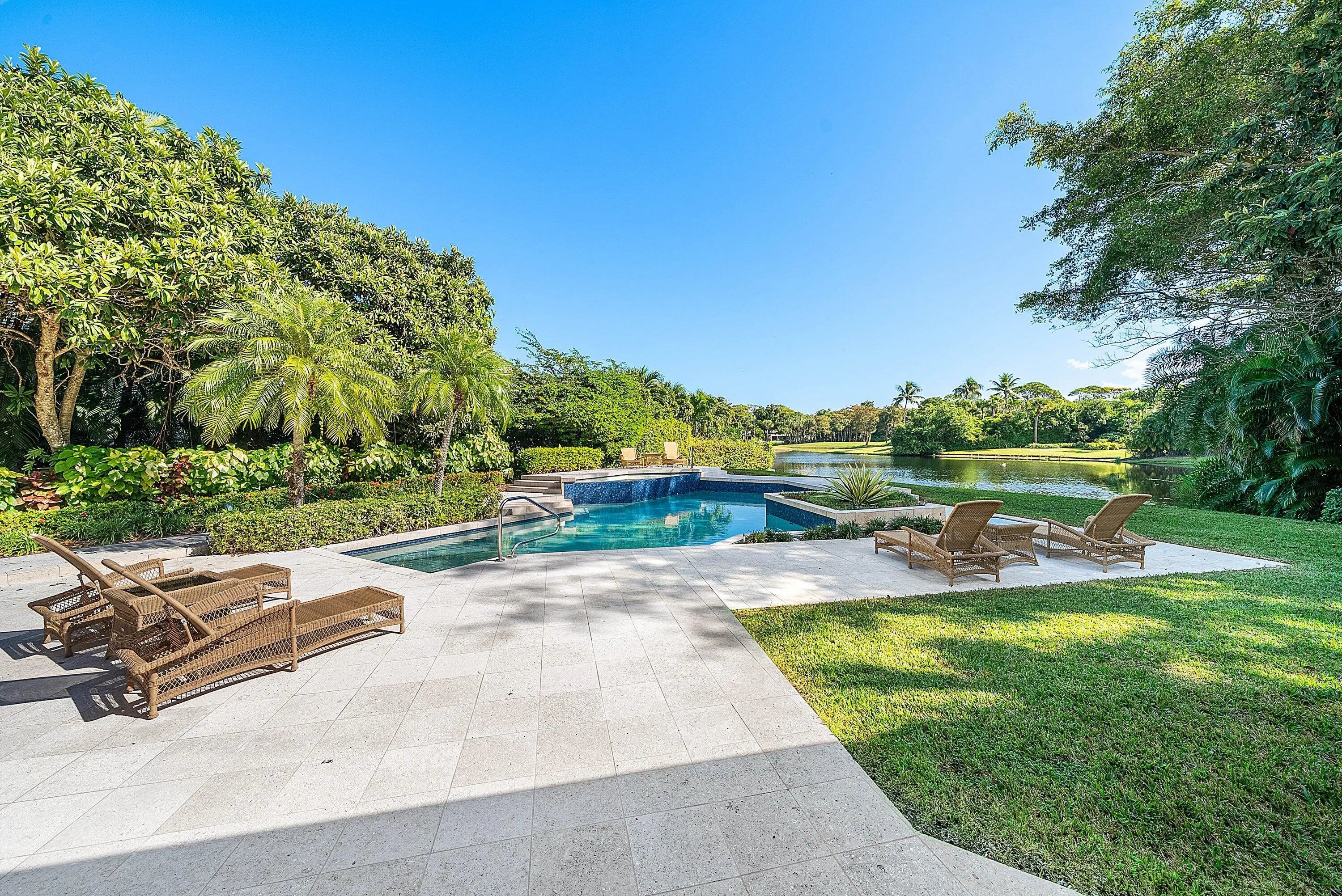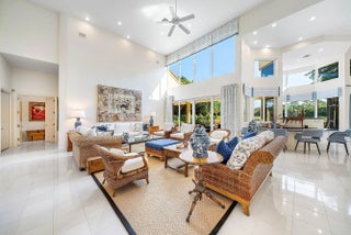 Exquisite single-story residence in the prestigious community of Frenchman's Creek offering 3 bedrooms plus an office, 5.5 bathroom and over 4200 sf of living space. Set on half an acre of private land, this home enjoys sweeping lake views that serve as a serene backdrop from nearly every room.Be impressed by the thoughtful, open concept floor plan, each space is designed to maximize the breathtaking vistas. A wall of expansive windows along the rear reveals natural light and creates an airy ambiance, ideal for everyday living and effortless entertaining.The spacious primary suite features two custom walk-in closets and dual primary bathrooms. Embrace Florida's Indoor/outdoor lifestyle as you step through as you step through a full wall of sliders onto the large covered patio and