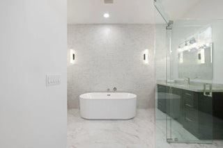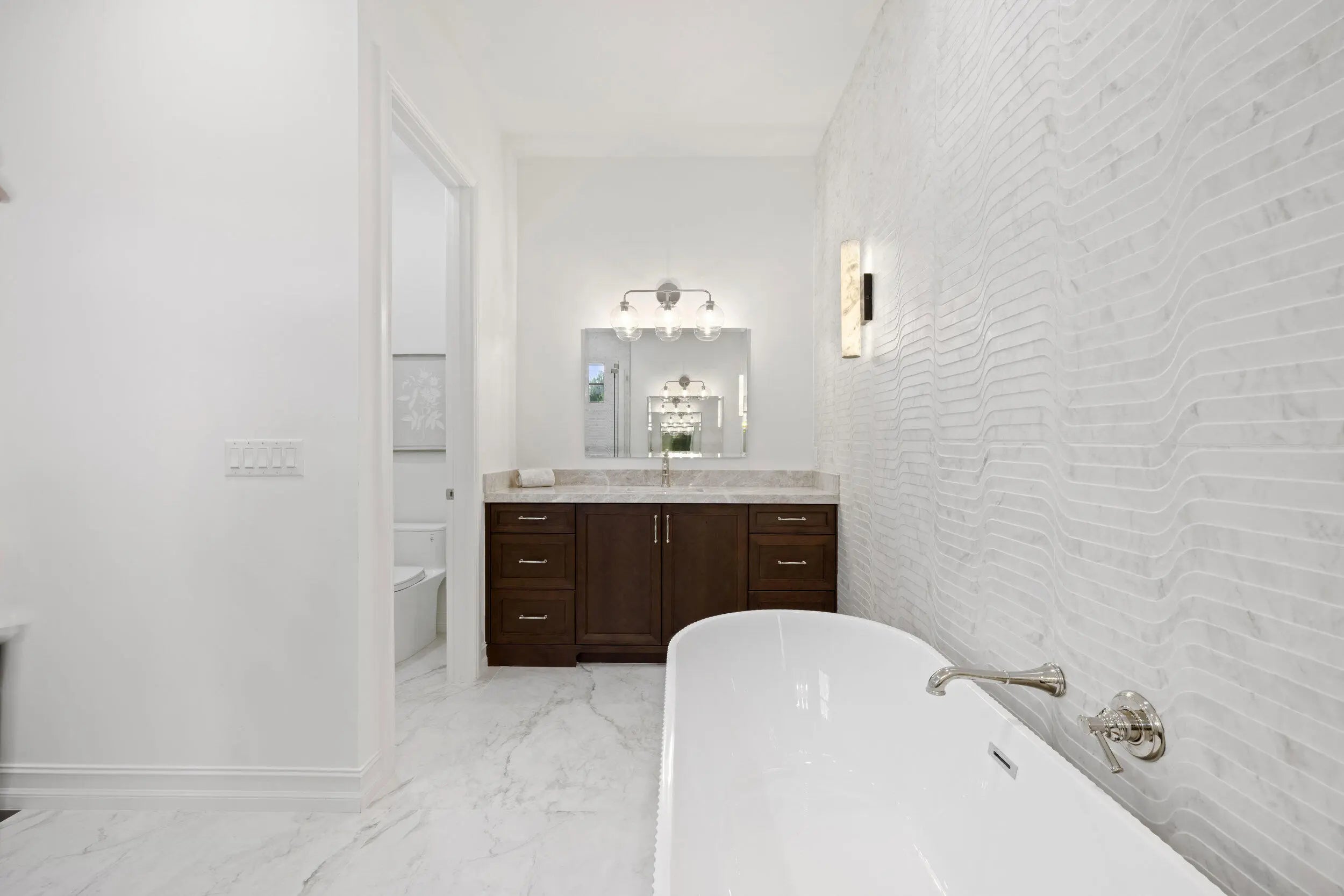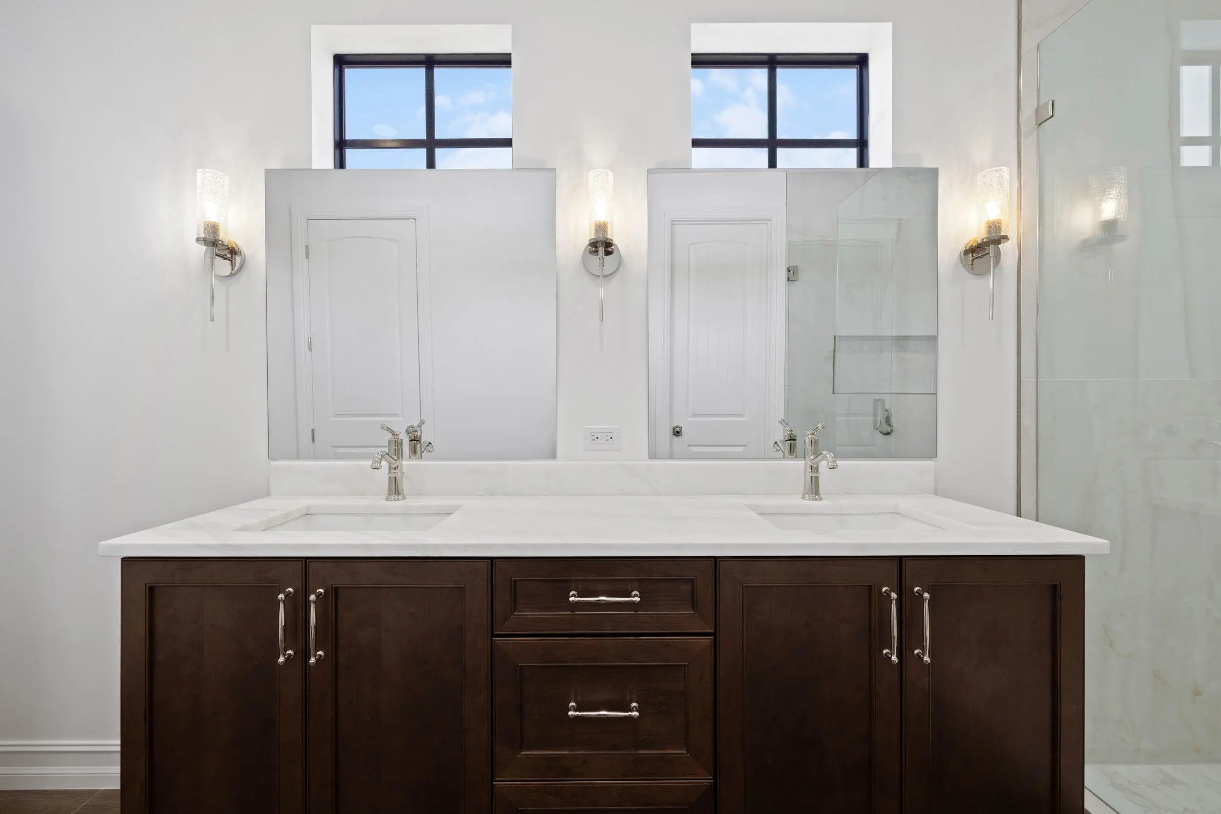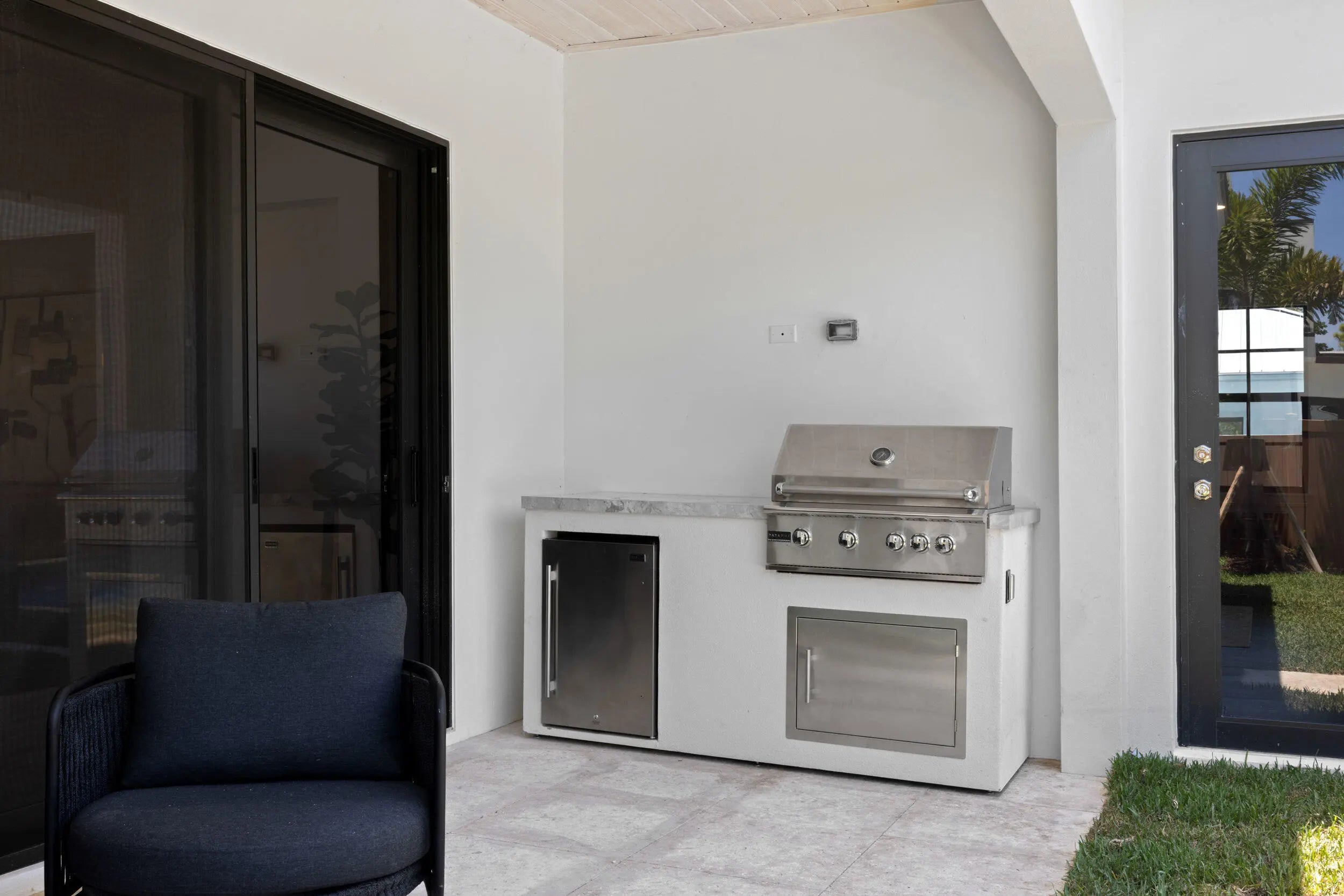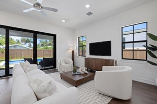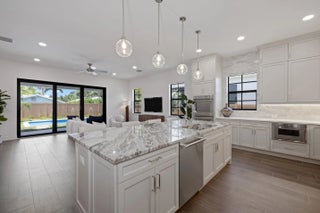 Welcome to 309 Cascade Lane the only brand-new construction home in all of Palm Beach Shores. This stunning Spanish Colonial-style residence is truly one of a kind, offering a luxurious blend of elegance and comfort. Situated on a prime lot, the home features a governor's driveway and a spacious two-car garage with durable epoxy floors--complete with a brand-new 6-seater golf cart to enjoy the golf-cart-friendly community of Singer Island.As you step through the grand double doors, you're welcomed by rich, dark wood-look porcelain tile flooring that flows seamlessly throughout the home. The open-concept layout connects the living, dining, and kitchen spaces, creating a warm and inviting environment perfect for entertaining or relaxing.